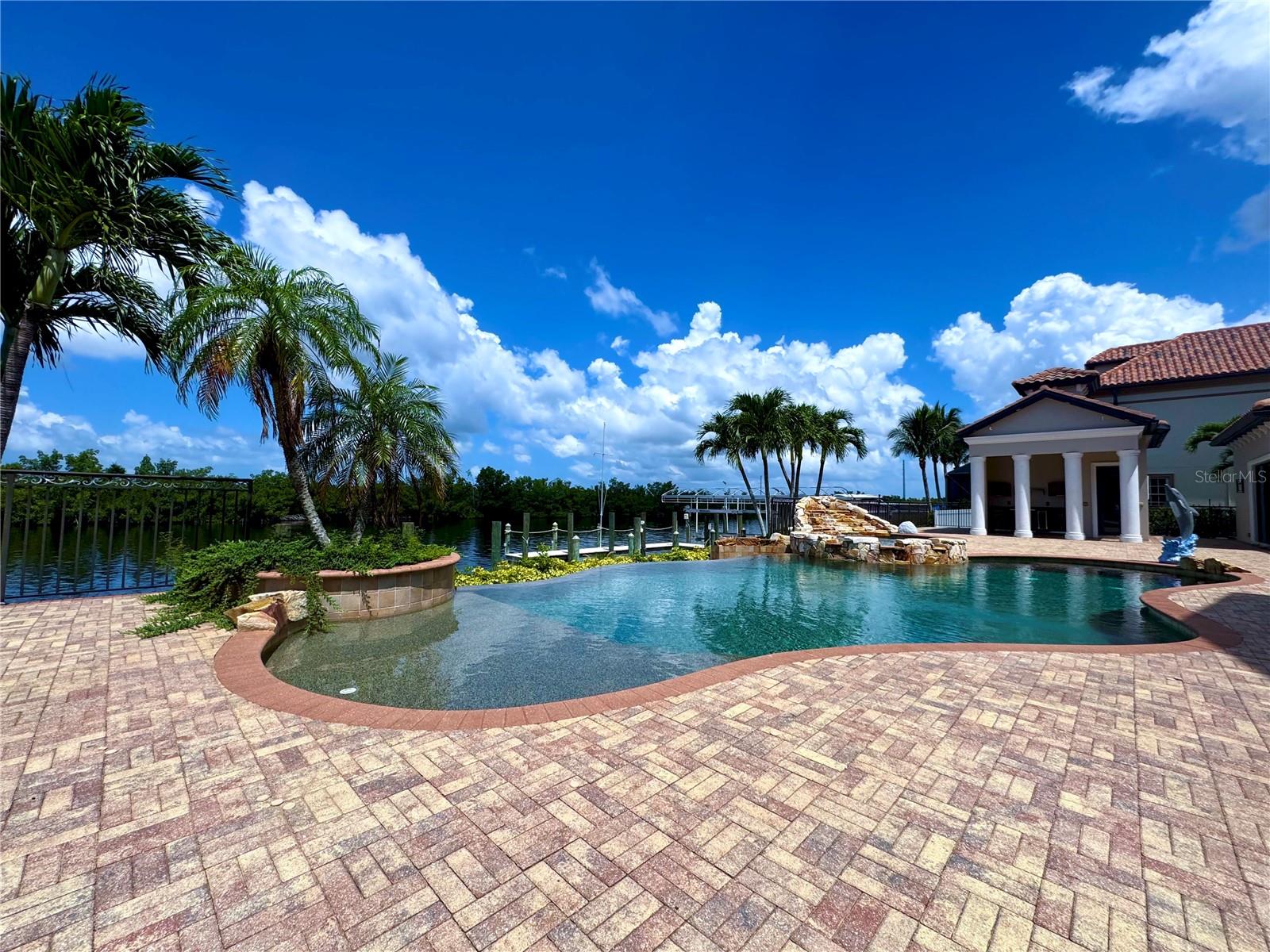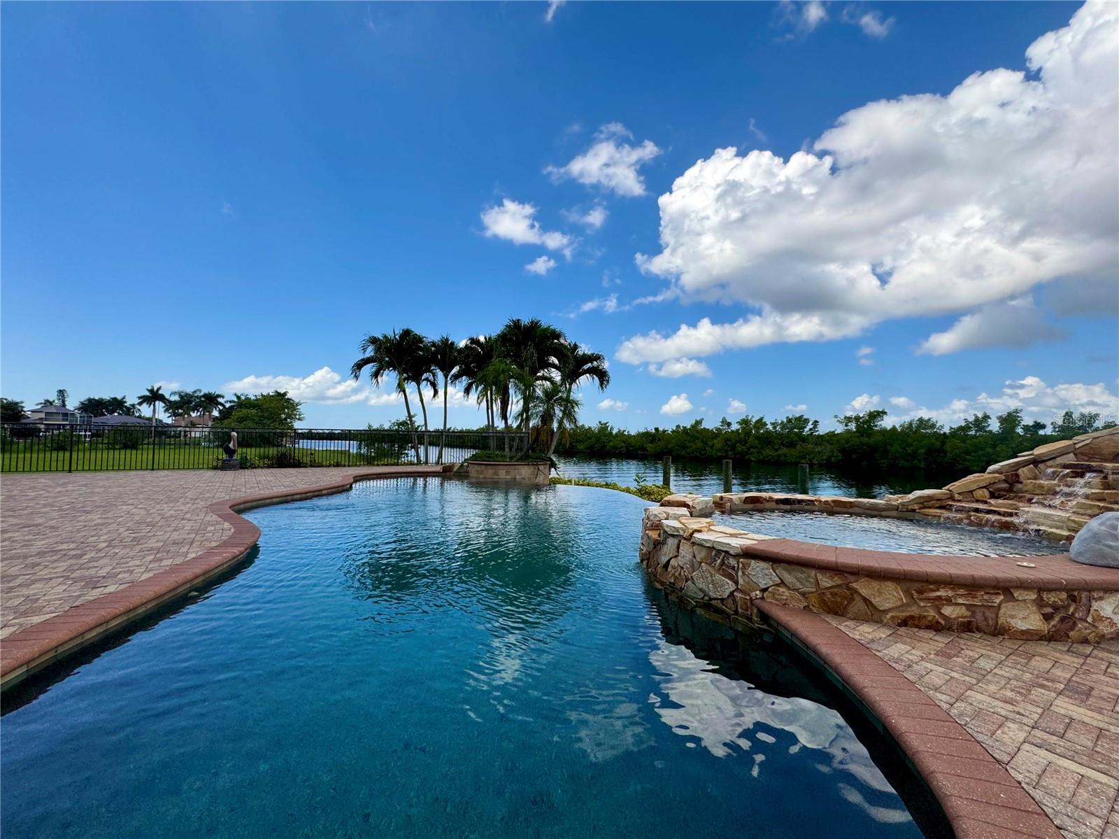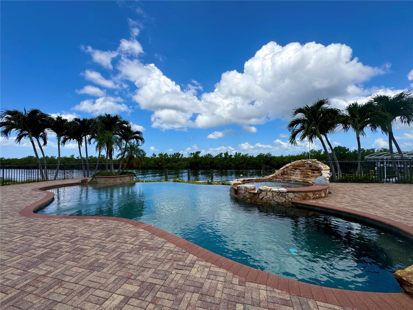 Unobstructed Tropical Views: This Sprawling Resort-Style Gulf Access Estate overlooking the direct Gulf Access South Spreader Canal. (No Flood Water Intrusion from any Hurricanes, Existing Transferable Flood Policy is approximately $1,400.00 per year). This Elegant Hurricane Proven Fortress is designed to withstand the most enduring tropical elements of Southwest Florida. A breathtaking 6,308 sq ft masterpiece that's located on a rare triple lot (.41 acres) with direct bridgeless Gulf access, offering unobstructed boating to open waters and commanding panoramic Western and Southwestern exposure sunsets that must be seen to be believed. As you arrive, you’re greeted by tropical palms, pristine landscaping, and a grand paver driveway, setting the tone for the luxury within. Step through oversized double doors into a soaring two-story grand foyer, where 20+ foot ceilings and architectural finesse welcome you home. The expansive family room features cathedral ceilings and walls of glass, framing stunning waterfront views and drawing natural light into every corner. Designed for both function and elegance, the chef’s kitchen is a showpiece — outfitted with premium appliances, a spacious center island, walk-in pantry, and abundant custom cabinetry. It's the heart of the home, ideal for everyday living and culinary entertaining alike. The primary suite is a private retreat, offering serene canal views, a luxurious spa-like ensuite bath, and a boutique-style custom walk-in closets with generous storage and display. Each of the four bedrooms and 4.5 baths is thoughtfully designed to provide privacy and comfort for both family and guests, each bedroom is set up as it's own suite, each having it's own private balcony overlooking the Spreader canal while taking in the fabulous unobstructed sunset views and mangrove landscapes. Step outside and indulge in resort-style living. The highlight of the home is a vanishing edge infinity pool that blends seamlessly into the waterfront beyond, creating a serene oasis perfect for sunset swims or relaxing under the stars. The oversized spa, soothing waterfall complete the outdoor experience. Whether hosting vibrant gatherings or enjoying a quiet glass of wine, this outdoor space is designed to impress. Additional luxuries include: Private home theater for the ultimate cinematic escape, Dedicated game room for lively entertainment, Elegant formal and casual dining areas, Smart home features and prewired surround sound, Oversized 3-car garage and ample storage throughout, Located just minutes from Cape Harbour and Tarpon Point, you’ll enjoy quick access to upscale waterfront dining, boutique shopping, and lively entertainment — all from the comfort of your own private paradise. The now lockless and bridgeless canal provides unobstructed boating access to the river and The Gulf. The Boat docks are designed to accommodate large Yachts and a boat lift for smaller craft. Don't miss this very well priced exquisite Estate Home.