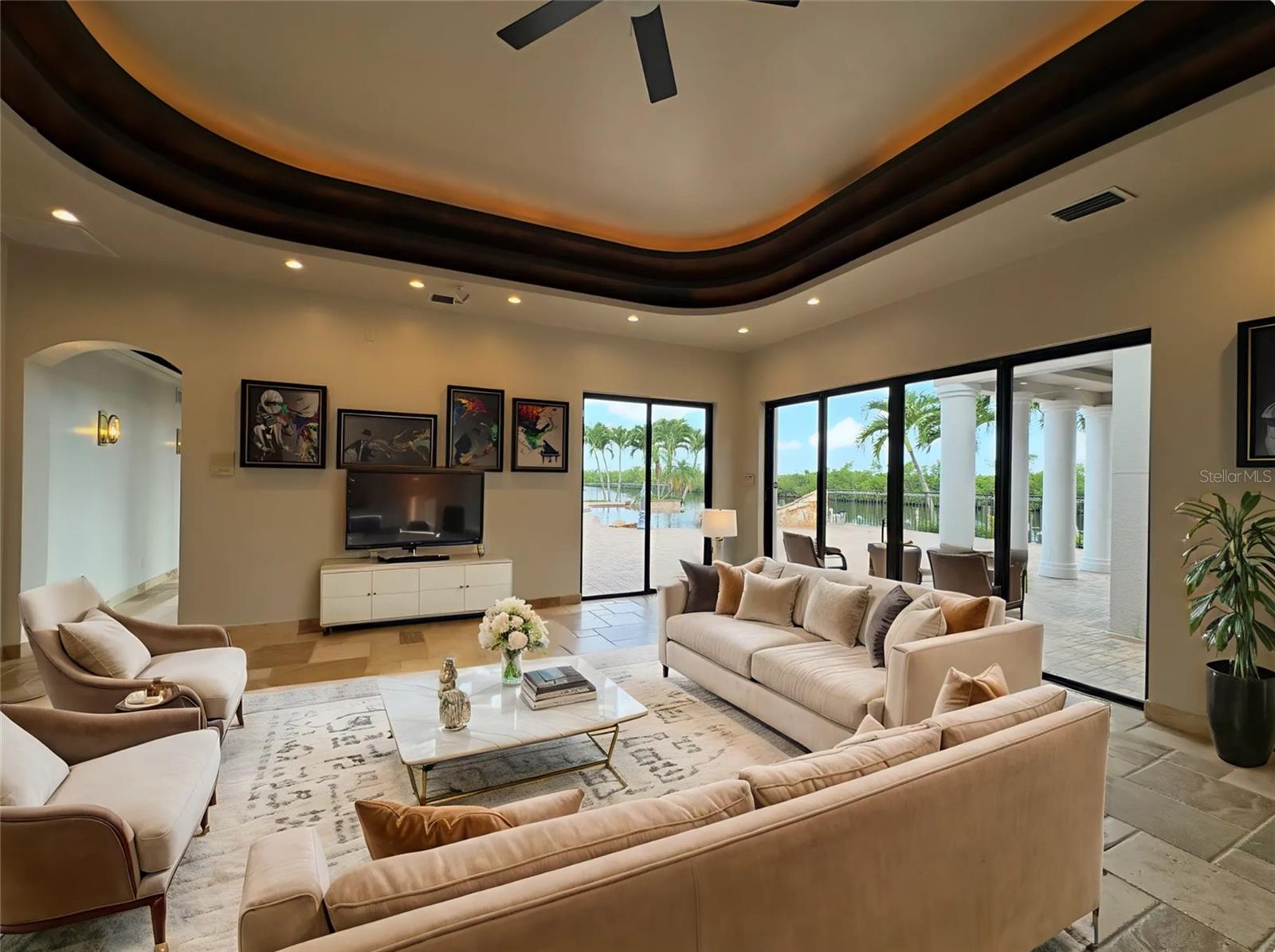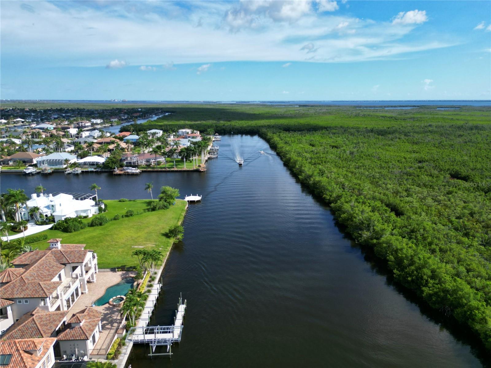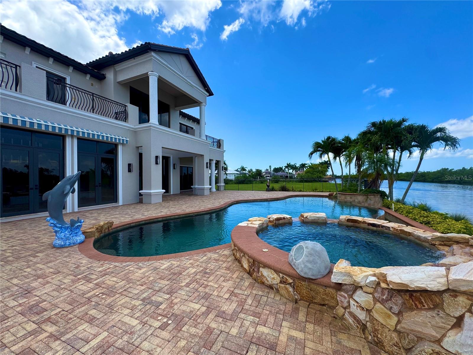 Unobstructed Tropical Views: This Sprawling Resort-Style Gulf Access Estate overlooking the direct Gulf Access South Spreader Canal. (No Flood Water Intrusion from any Hurricanes, Existing Transferable Flood Policy is approximately $1,400.00 per year). This Elegant Hurricane Proven Fortress is designed to withstand the most enduring tropical elements of Southwest Florida. A breathtaking 6,308 sq ft masterpiece that's located on a rare triple lot (.41 acres) with direct bridgeless Gulf access, offering unobstructed boating to open waters and commanding panoramic Western and Southwestern exposure sunsets that must be seen to be believed. As you arrive, you’re greeted by tropical palms, pristine landscaping, and a grand paver driveway, setting the tone for the luxury within. Step through oversized double doors into a soaring two-story grand foyer, where 20+ foot ceilings and architectural finesse welcome you home. The expansive family room features cathedral ceilings and walls of glass, framing stunning waterfront views and drawing natural light into every corner. Designed for both function and elegance, the chef’s kitchen is a showpiece — outfitted with premium appliances, a spacious center island, walk-in pantry, and abundant custom cabinetry. It's the heart of the home, ideal for everyday living and culinary entertaining alike. The primary suite is a private retreat, offering serene canal views, a luxurious spa-like ensuite bath, and a boutique-style custom walk-in closets with generous storage and display. Each of the four bedrooms and 4.5 baths is thoughtfully designed to provide privacy and comfort for both family and guests, each bedroom is set up as it's own suite, each having it's own private balcony overlooking the Spreader canal while taking in the fabulous unobstructed sunset views and mangrove landscapes. Step outside and indulge in resort-style living. The highlight of the home is a vanishing edge infinity pool that blends seamlessly into the waterfront beyond, creating a serene oasis perfect for sunset swims or relaxing under the stars. The oversized spa, soothing waterfall complete the outdoor experience. Whether hosting vibrant gatherings or enjoying a quiet glass of wine, this outdoor space is designed to impress. Additional luxuries include: Private home theater for the ultimate cinematic escape, Dedicated game room for lively entertainment, Elegant formal and casual dining areas, Smart home features and prewired surround sound, Oversized 3-car garage and ample storage throughout, Located just minutes from Cape Harbour and Tarpon Point, you’ll enjoy quick access to upscale waterfront dining, boutique shopping, and lively entertainment — all from the comfort of your own private paradise. The now lockless and bridgeless canal provides unobstructed boating access to the river and The Gulf. The Boat docks are designed to accommodate large Yachts and a boat lift for smaller craft. Don't miss this very well priced exquisite Estate Home.