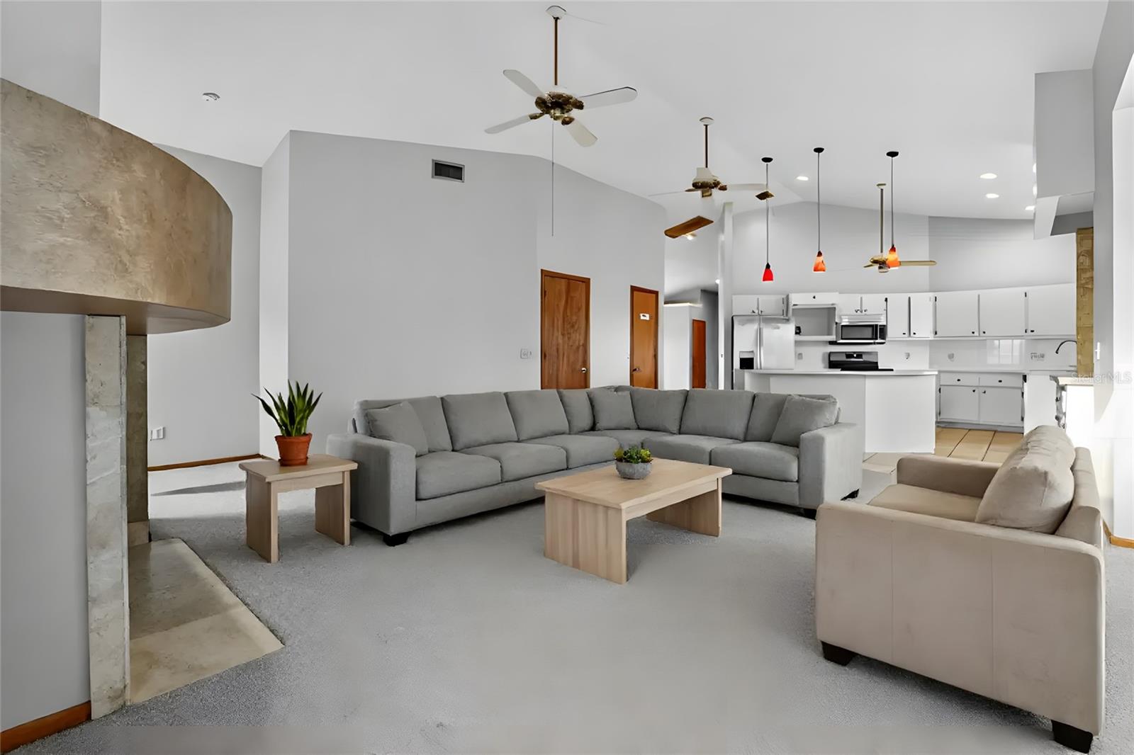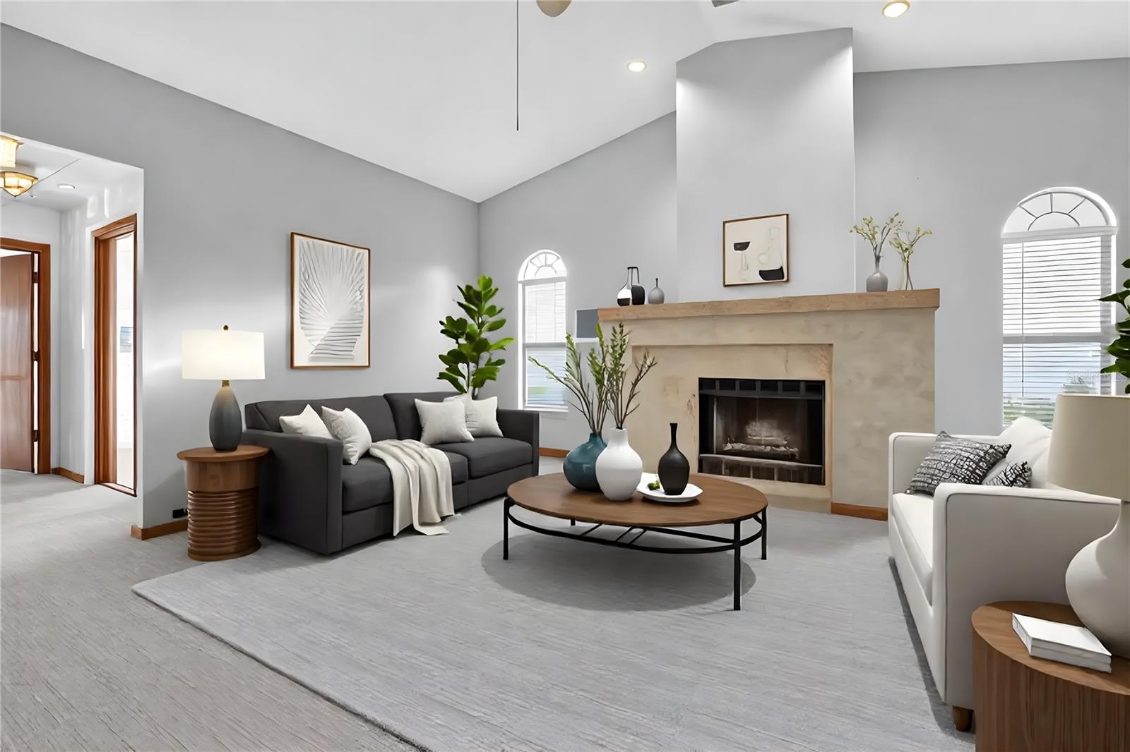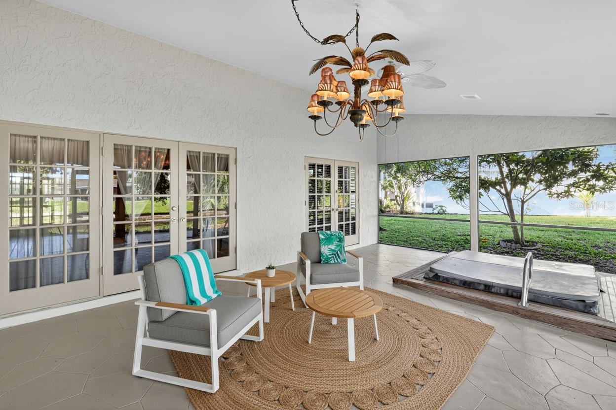 One or more photo(s) has been virtually staged. In the heart of Cape Coral you will find this stand out home located on a quiet canal. This freshwater canal has a concrete dock, and the perfect spot to tie up your kayaks. Patio furniture will fit perfectly on the dock or maybe a fish cleaning area will be a better fit for you. From the water, take a walk through the backyard to the concrete patio, and a screened lanai with an exceptional entertaining area including a hot tub overlooking the canal. This piece of paradise is so lovely, you may even forget to head inside to see the home. Featuring 2 Owners suites with spacious bedrooms, roomy closets and outstanding ensuite baths, you will feel pampered every morning while you get ready for your day. You'll find plush carpet and crisp tile throughout the home, a perfect balance between cozy and cooling. Cuddle up in front of the fireplace with a blanket and a good book or head to the sunroom for a little sunshine on your face. It's the perfect place to put your green thumb to good use. Plants are the perfect addition. The kitchen is ready to make your life easier with a layout perfect for the budding chef in the family. Enjoy a great flow with stainless appliances, tile backsplash, amazing prep areas, including a fabulous center island, and a pantry to hold all your small appliances. This home is an exceptional blend of interior and exterior living space leaving you happy to be home no matter what the weather. This 3 bedroom, 2 bath home has 2 stall garage ready to hold your tools, sports equipment and vehicles. Welcome Home!