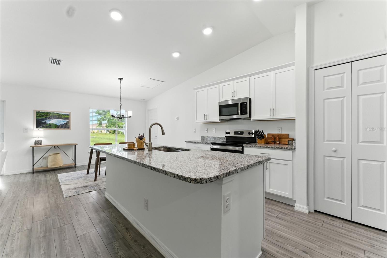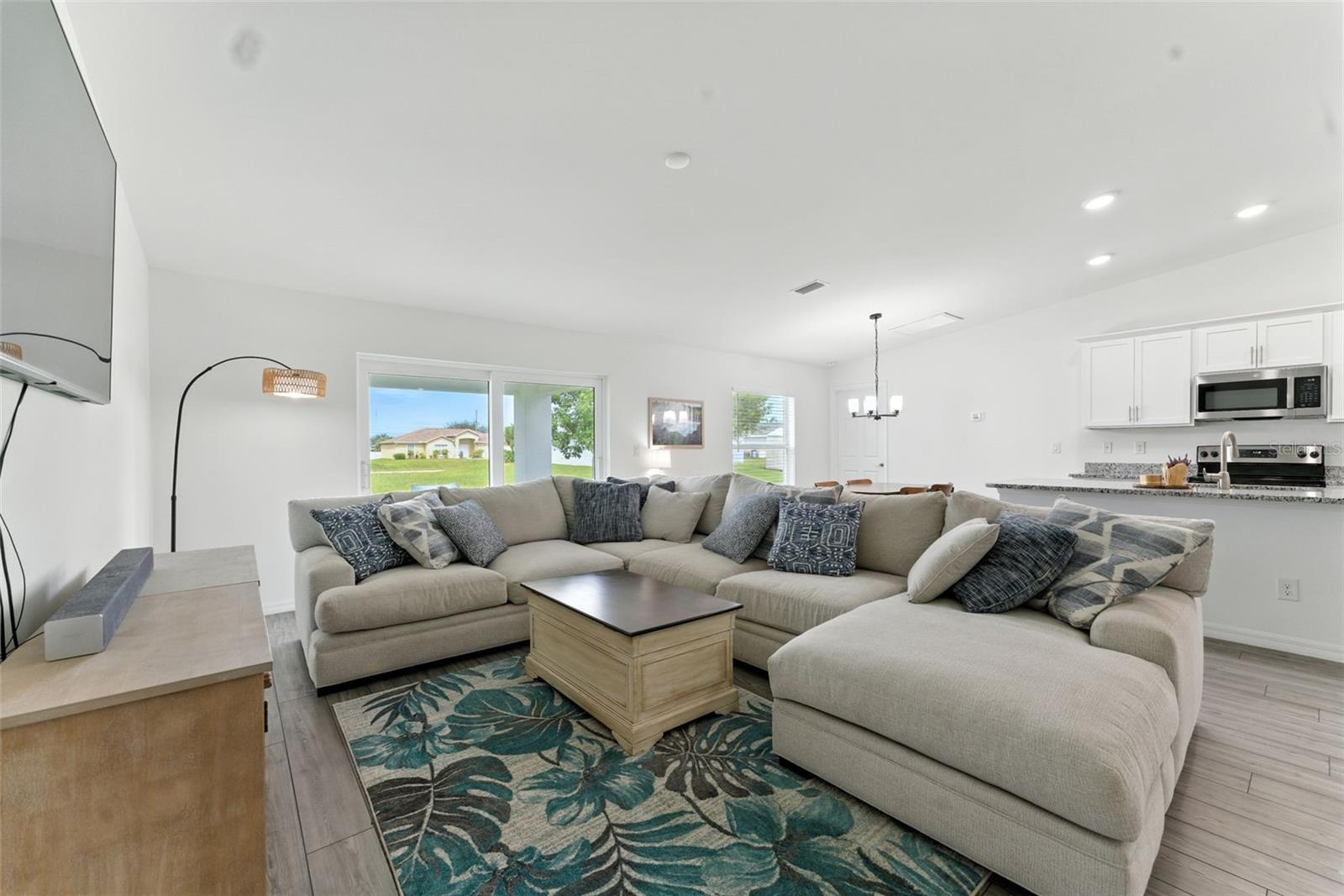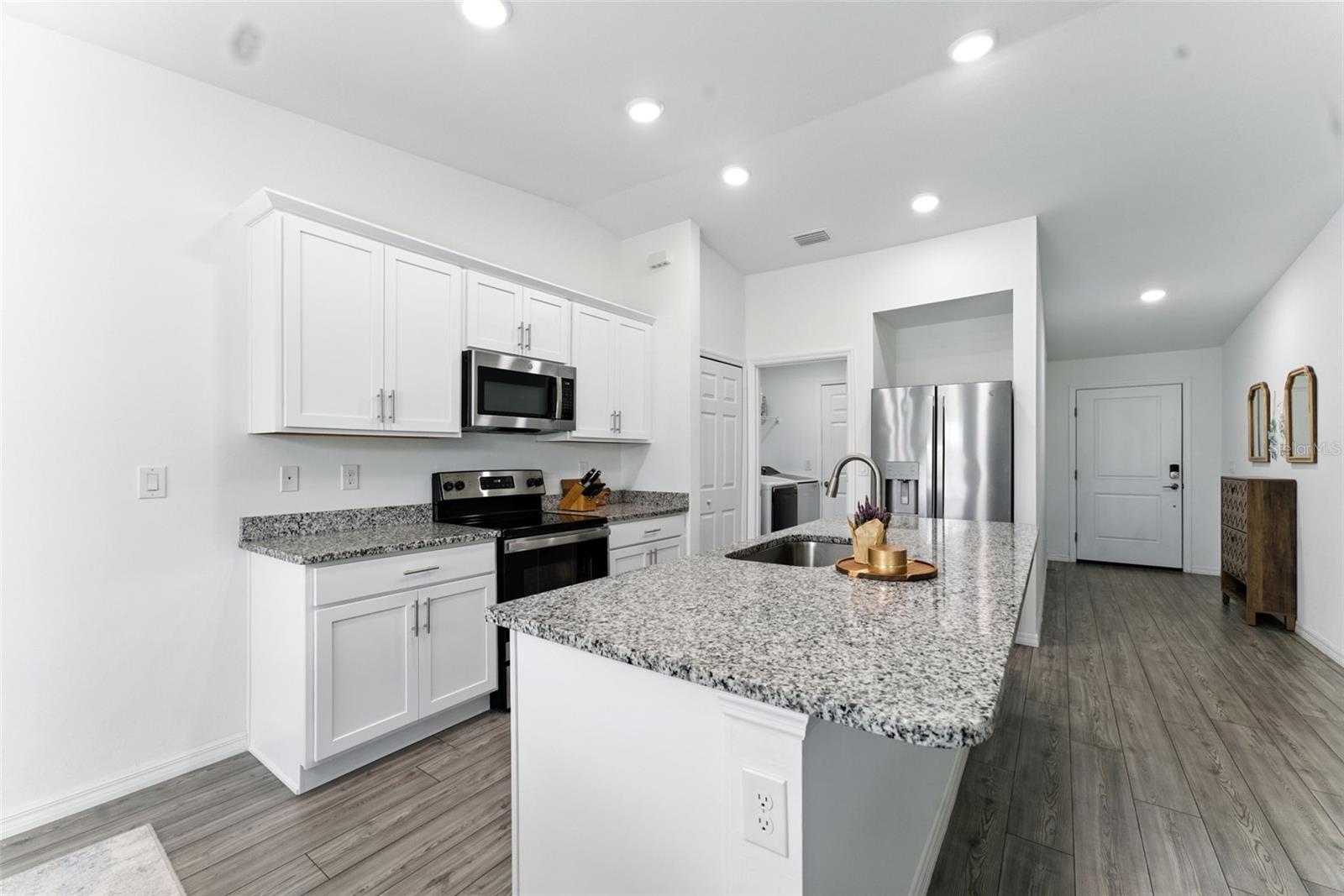 Why wait for new construction when this 2022-built 4-bedroom, 2-bath home is ready for you now? *NOT IN A FLOOD ZONE*! Featuring an open-concept floor plan with luxury vinyl plank flooring, quartz countertops, and abundant natural light throughout. The kitchen offers stainless steel appliances, a large island, and plenty of cabinet space. Enjoy move-in-ready convenience with included refrigerator, washer, dryer, and custom window treatments—items most new homes don’t include! The spacious primary suite features a walk-in closet and private bath with dual sinks and glass shower. Additional highlights include a paver driveway, automatic sprinkler system, and a large backyard perfect for a future pool or outdoor entertaining. Centrally located near schools, shopping, and dining.