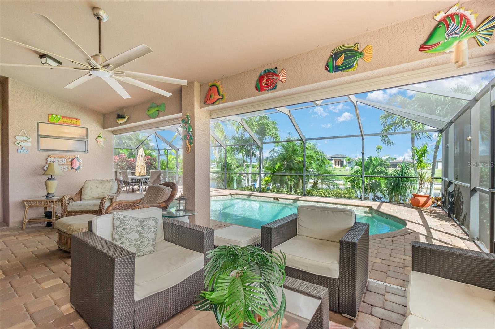 Welcome to your dream Gulf access pool home, where leisure meets luxury! This stunning move-in ready residence features three spacious bedrooms and two immaculate bathrooms, all designed for comfort and style. Step inside to discover 18" porcelain tile flooring that flows seamlessly throughout the open floor plan, creating an inviting atmosphere perfect for entertaining. The heart of the home boasts a modern eat in kitchen adorned with elegant granite countertops and a convenient breakfast bar, all while offering a picturesque view of the great room. Imagine unwinding in the beautiful master bathroom, complete with a relaxing jacuzzi tub and an exquisite walk-thru shower featuring dual sinks for added convenience. The master bedroom also includes sliders that lead directly to your private lanai and sparkling heated pool, perfect for those sunny Florida days. Outside, the large paved pool deck is an oasis for relaxation, surrounded by lush tropical landscaping. Enjoy your evenings on the covered patio or take advantage of the stunning views of the Gulf access canal. Your safety and comfort are assured with features like electric roll-down and accordion shutters, while the auto sprinkler system keeps your garden vibrant year-round. For boating enthusiasts, this property is equipped with a 7,000 lb boat lift and durable wood and concrete docks, making it easy to explore the scenic waterways. Don’t miss this opportunity—experience the ultimate waterfront lifestyle today!