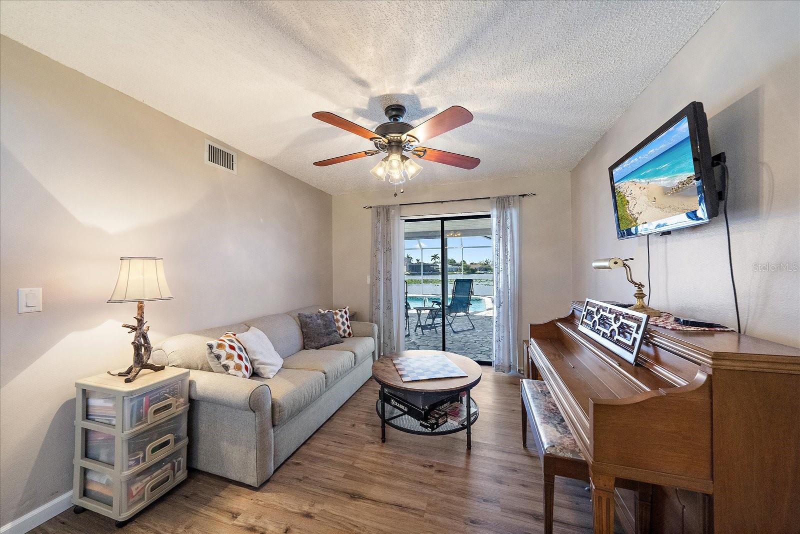 Wonderful SFR Lakefront Living on Lake Alhambra – Western Exposure Pool Home! Enjoy stunning sunset views every evening from a to be built replacement (no)dock or lanai covered pool, this beautifully updated 4-bedroom, 2.5-bath Cape Coral home overlooking the wide waters of Lake Alhambra is the one! With nearly 2,500 square feet of living space, this spacious residence combines comfort, style, and the best of Florida’s waterfront lifestyle. Inside is an open and inviting floor plan highlighted by a newly remodeled kitchen featuring granite countertops, a flat-top range with stainless steel hood, recessed lighting, and elegant details. The kitchen’s pass-through window and two pocketing sliders create a seamless connection to the solar-heated pool, screened lanai, and private wooden dock — all with over 180 deg of lakefront view! Downstairs also includes a formal dining area, a bonus flex room perfect for a home office or game room, and a convenient half bath. Upstairs, hard wood flooringthe spacious primary suite offers dual sinks and an impressive walk-in shower with dual shower heads, while the three additonal bedrooms all enjoy water views, . Outside, you’ll appreciate the western exposure, ideal for sunset watching, and your direct access to Cape Coral’s most unique freshwater system — perfect for boating, kayaking, and exploring six connecting lakes. Located near shopping, dining, and quick access to major highways, this home perfectly balances relaxation and convenience. 4 Bedrooms, 2.5 Baths, 2,471 Sq Ft Solar-Heated Pool with Screened Lanai 83 Ft Lakefront 180 deg View, Roof (2014), some kevlar window covers. Updated Kitchen with Granite & Stainless Spacious Primary Suite with Dual Shower Heads Western Exposure for Gorgeous Sunsets Connected to system of Lakes via Freshwater Canal System, rare Lake Alhambra gem a sunset-view waterfront home in one of Cape Coral’s most scenic neighborhoods. some names around this home. Lake Alhambra, Mariner High School, Tarpon Point Marina Rotary Park Environmental Center, Sunsplash Family Waterpark, Cayo Costa State Park, Midpoint Memorial Bridge Sellling unfurnished and furnishing seperate if interested