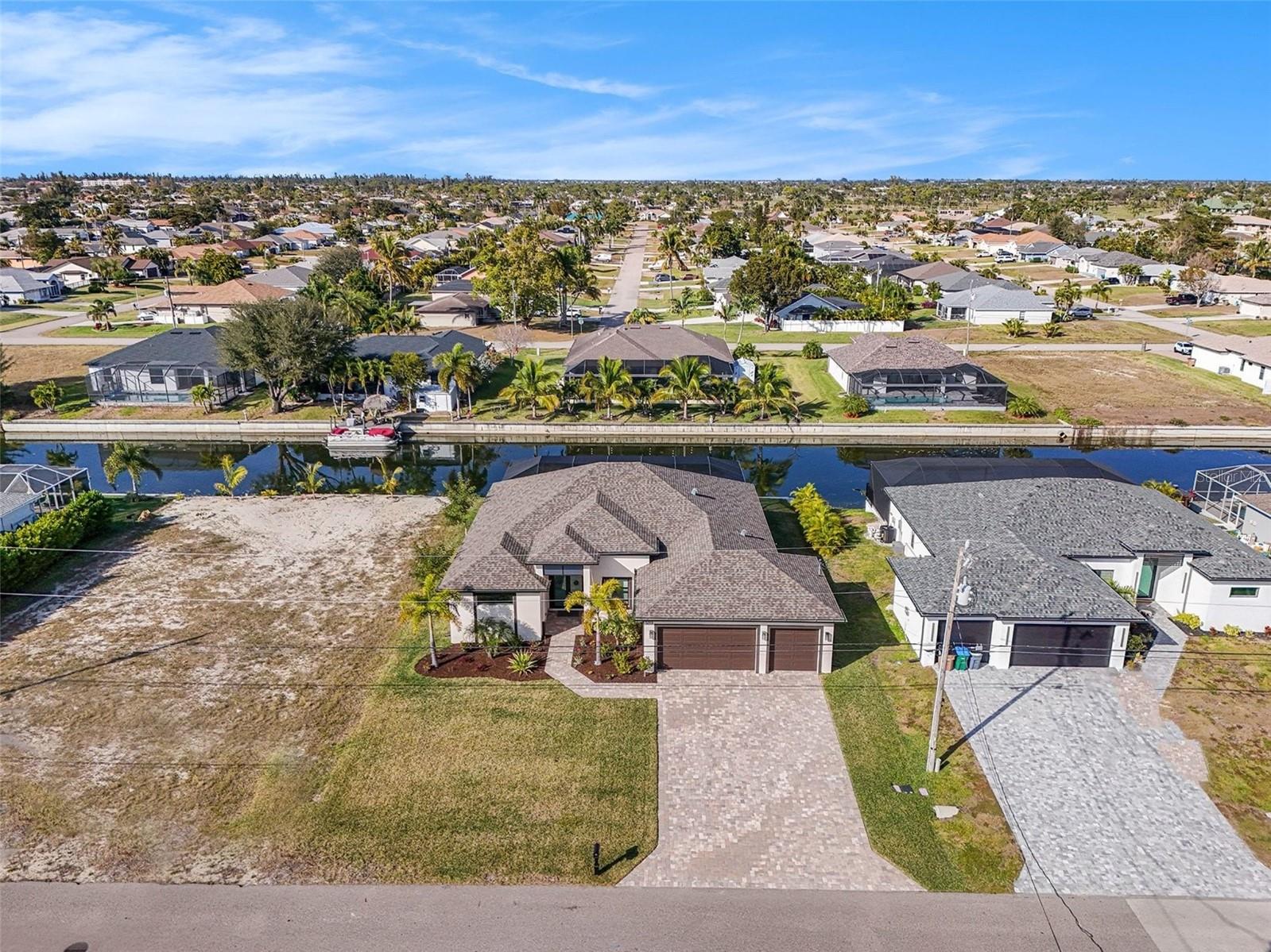 Welcome to your dream oasis! This stunning 3-bedroom, plus den, 3-bathroom furnished home boasts a spacious layout, complete with a large 3-car attached garage and a breathtaking view of the freshwater canal. Enjoy the peace of mind that comes with a brand-new seawall and take advantage of the extensive navigable canal system that is perfect for fishing and boating adventures—all just 2 miles away from the prestigious Palmetto-Pine Country Club golf course. Step inside to discover elegant tile plank flooring throughout, high ceilings, and impressive trey ceilings that enhance the open floor plan. The great room features an 8 ft pocketing sliding door that seamlessly blends indoor comfort with the lush outdoor surroundings. The kitchen is outfitted with quartz counters, stainless steel appliances, and real wood cabinets, making it a perfect gathering space. Relax in the expansive covered lanai, equipped with an outdoor kitchen and surrounded by brick paver decking, ideal for entertaining or unwinding by the sparkling pool, which comes with a screened enclosure. The master bedroom is a place for relaxing and includes sliding doors that go out to the covered lanai and pool area. The master bathroom has dual vanities, and a custom shower with multiple shower heads, offering both luxury and practicality. Additional highlights include a complete Smart Home, the front door, fans and appliances, lights, are all controlled by phone, a plug in set up for an electric car, expoxy floors in garage, impact-resistant windows for peace of mind, and the assurance that this home is located in a non mandatory flood zone. This exceptional property is not just a house; it’s a lifestyle waiting for you. Don’t miss out on this incredible opportunity—your perfect home awaits!