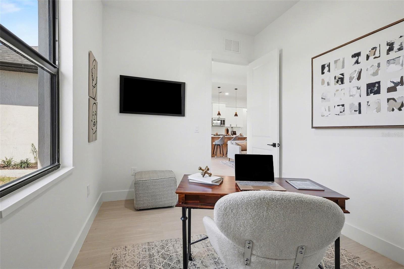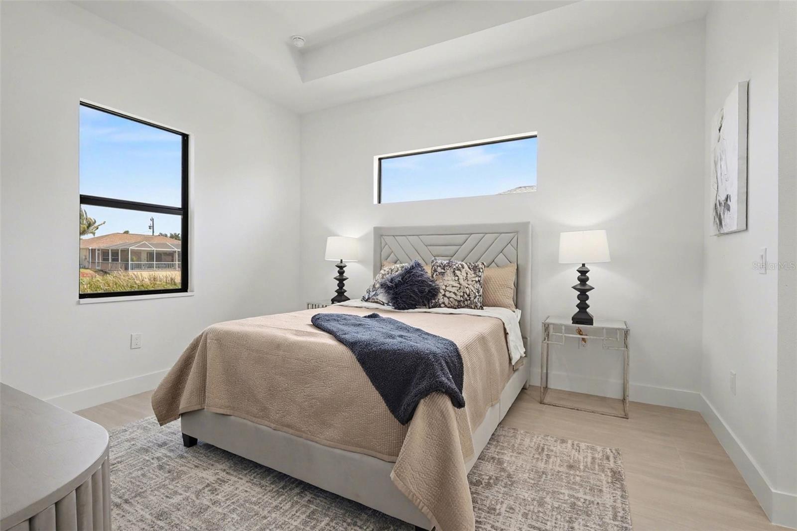 Check out this brand new construction, move-in ready gem! This beautifully designed 3-bedroom plus den, 2-bath home sits right on a freshwater canal, offering peaceful water views from the screened-in lanai. The sleek modern kitchen is a standout feature, complete with a stunning quartz waterfall island and stainless steel appliances. The open floor plan flows seamlessly, showcasing tile flooring throughout and tray ceilings in both the living area and master bedroom that add a touch of elegance. Safety and peace of mind come standard with impact-resistant doors and windows. Plus, you’ll love the convenient location close to schools, restaurants, and shopping centers. It’s everything you want in a home, all wrapped up in one stylish package!