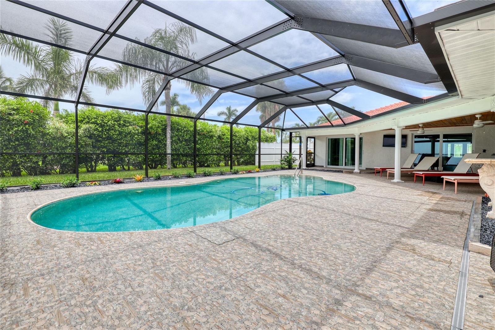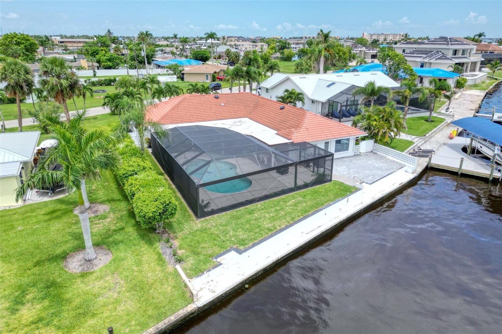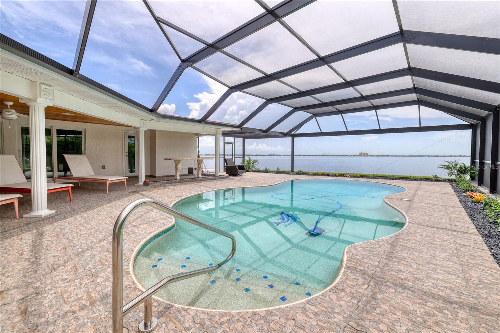 Welcome to your dream riverfront oasis in beautiful Cape Coral, FL. This stunning property offers the perfect blend of tranquility, luxury and breathtaking views. This 3 bedroom, 3 bathroom pool home is sitting on the banks of the Caloosahatchee River, a true waterfront gem. As you step inside, you'll be greeted by an abundance of natural light and riverfront views. The kitchen is a chefs delight featuring a Wolf five burner gas cooktop, top of the line appliances and sleek countertops! Enjoy prepping meals with the ability to relish the stunning river backdrop just beyond your window. The home is equip with a whole home generator with an underground 500 gallon propane tank. New Ameristar by Trace A/C system installed Sept 2023, newly installed landscape lighting installed August 2023. This property is located close to a myriad of amenities, including both casual and fine dining restaurants, shopping and entertainment options. Don't miss the opportunity to call this magnificent riverfront property your home.