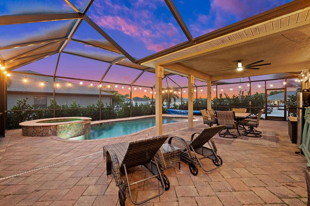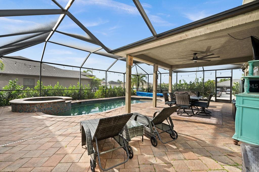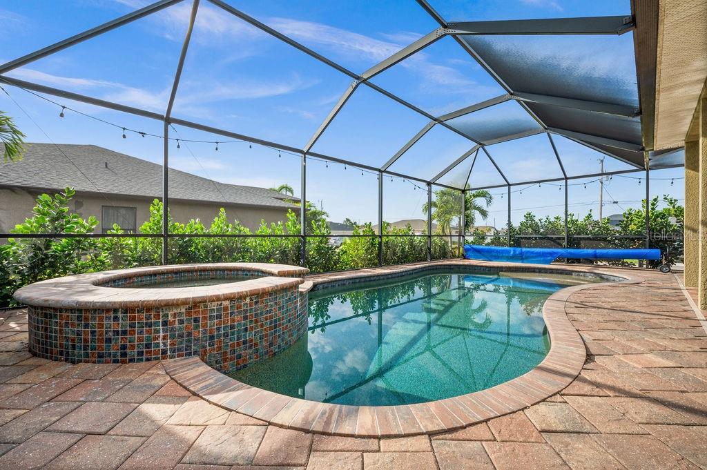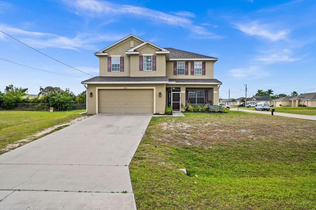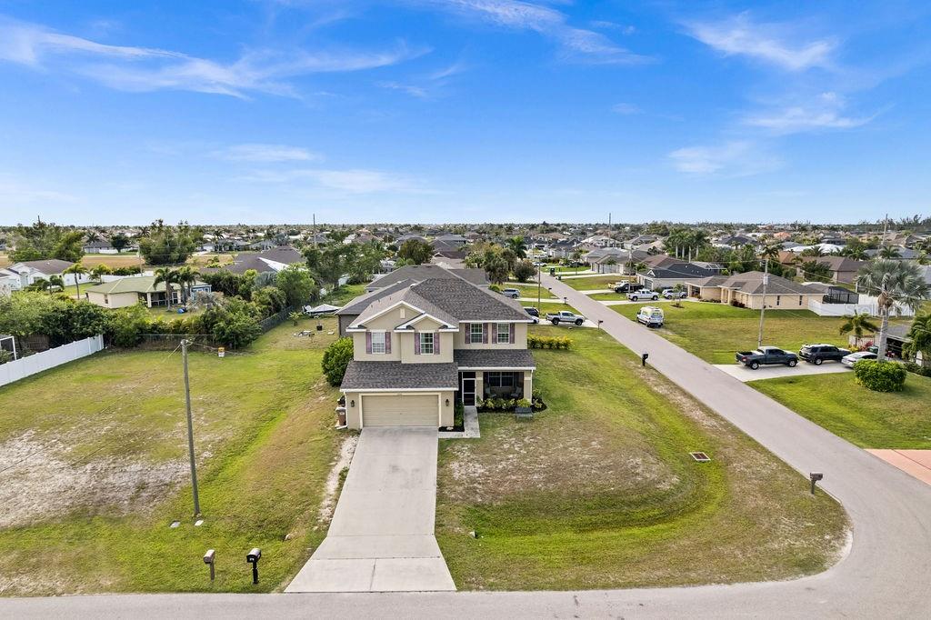 SPACIOUS TWO-STORY 5 Bedroom, 3.5 Bathroom, 2 Car Garage, Pool home with a Family room, located on a CORNER lot in Cape Coral. CLICK ON VIRTUAL TOUR LINK 1 FOR THE VIDEO AND VIRTUAL LINK 2 FOR THE 3D TOUR. This beautiful move-in ready home features a bright and airy floor plan, tile and luxury vinyl flooring throughout, recessed lighting and SO MUCH MORE! Spend quality time with friends and family on the first floor in the open living and dining room. An eat-in kitchen offers ALL Stainless-steel appliances, granite countertops, tiled backsplash, closet pantry, and breakfast bar. The spacious master bedroom is on the main floor with a walk-in closet and a private bathroom with a dual sink vanity, a soaking tub, and an all-tile walk-in shower. Make your way upstairs, where you will find a family room and additional bedrooms. The family room is the perfect spot for game and movie nights. Two of the guest bedrooms have built-in closets with a shared jack-and-jill bathroom. The additional two are a fantastic size with built-in closets and a shared guest bathroom nearby. Expand your living and entertaining space on the screened-in lanai where you can sip your morning coffee or unwind with your favorite evening beverage. Dive into the crystal waters of a heated saltwater pool and spa or soak up the sun from the pool deck. 2023 ROOF - 2023 GUTTERS - 2023 FURNACE/AC UNITS - 2023 POOL PUMP - 2023 RESCREENED LANAI & NEW SCREEN DOORS - 2023 DISPOSAL - SCREENED IN FRONT PATIO - 2023 CLUSIA BUSHES AROUND LANAI - 2024 FRESH MULCH. Conveniently located close to local shopping & boutiques, fine & casual dining, LIVE entertainment, and just a short car ride to local beaches. Schedule your showing TODAY!!