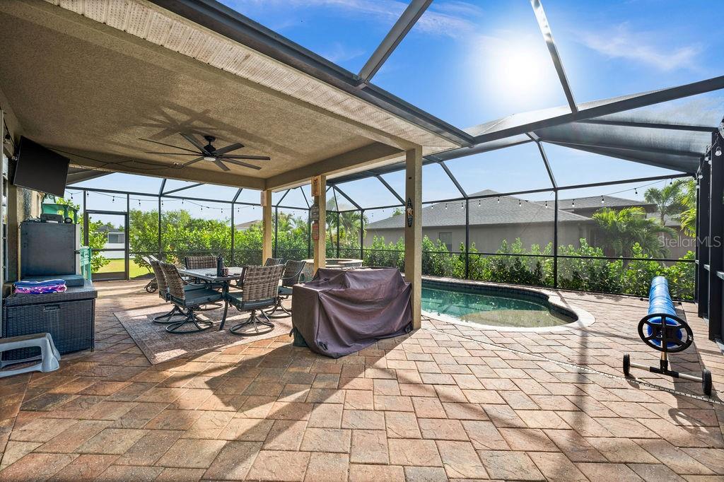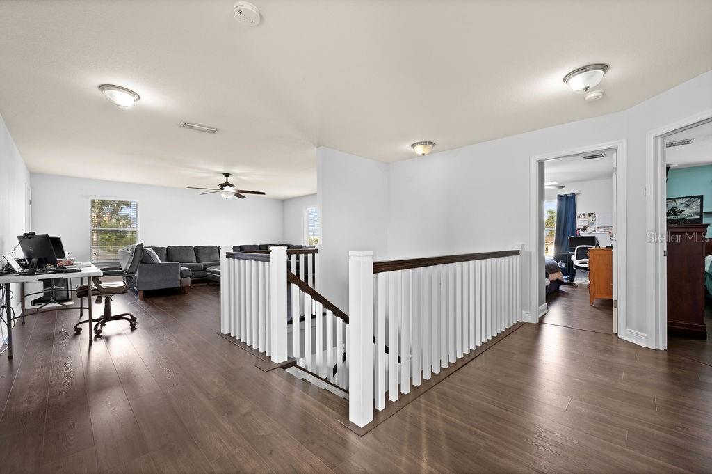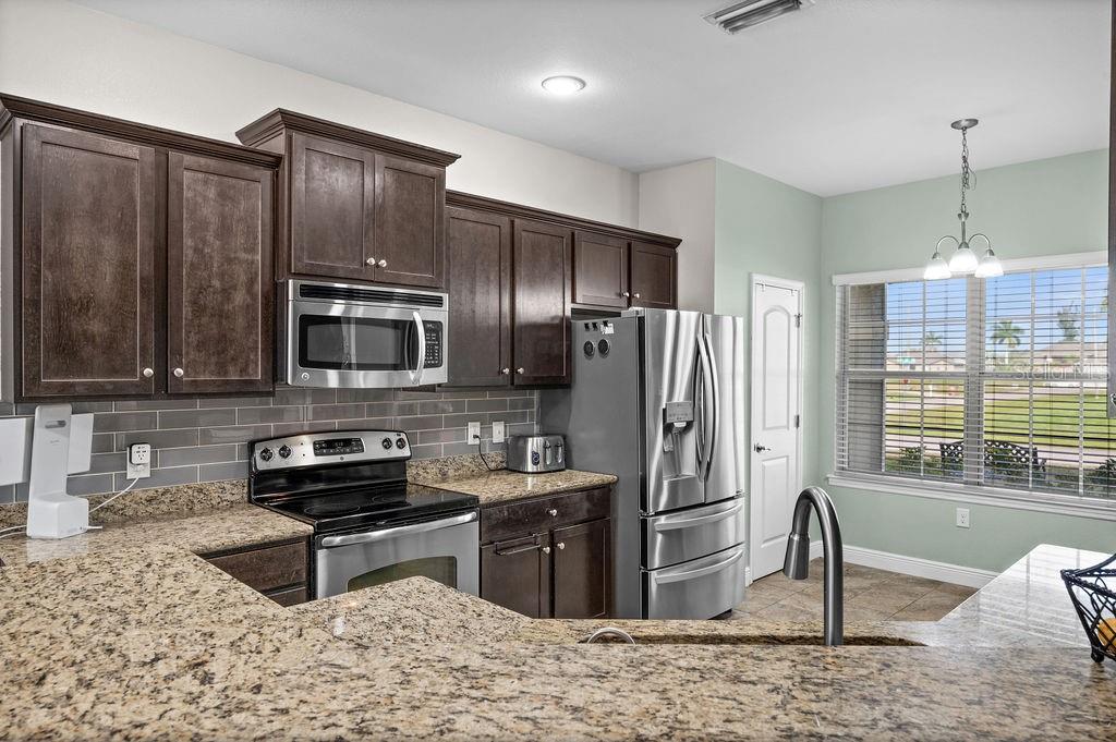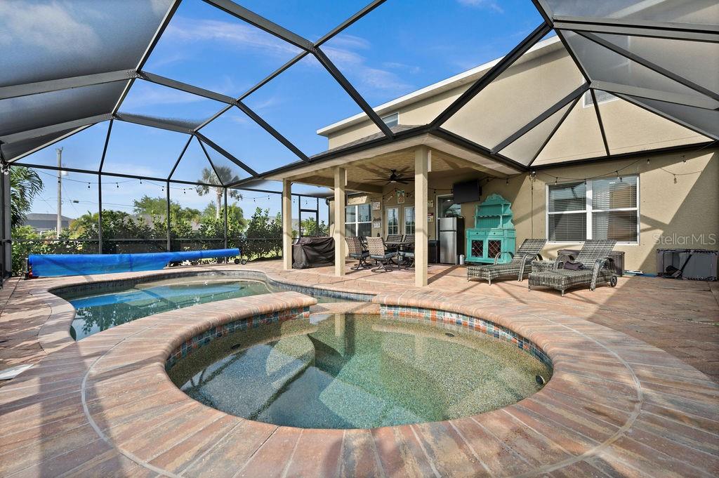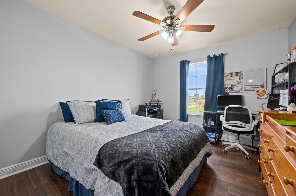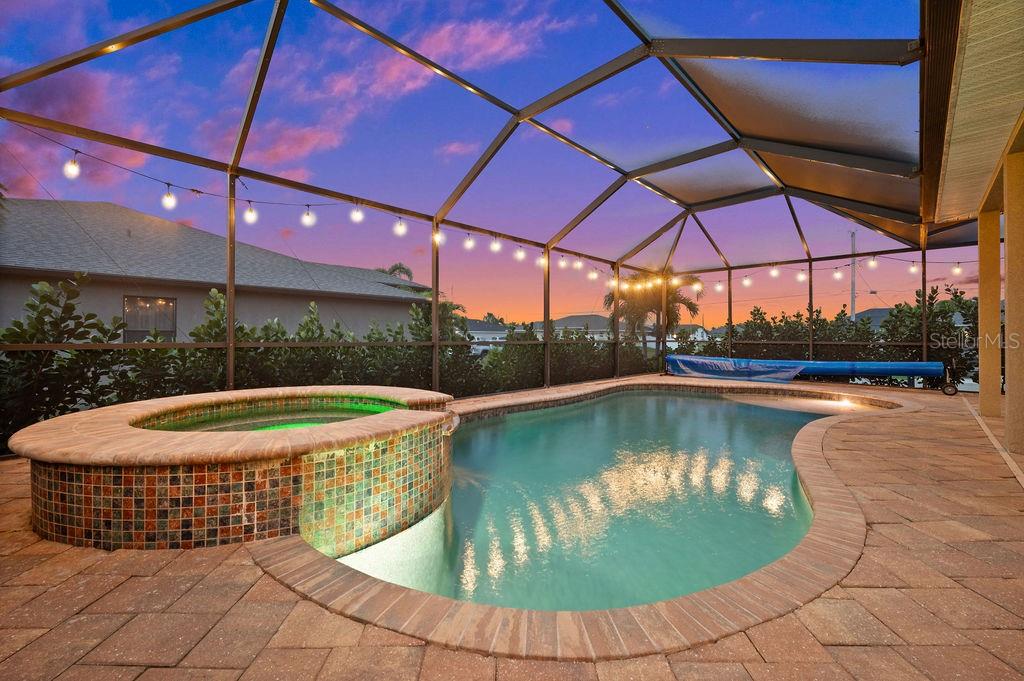 SPACIOUS TWO-STORY 5 Bedroom, 3.5 Bathroom, 2 Car Garage, Pool home with a Family room, located on a CORNER lot in Cape Coral. CLICK ON VIRTUAL TOUR LINK 1 FOR THE VIDEO AND VIRTUAL LINK 2 FOR THE 3D TOUR. This beautiful move-in ready home features a bright and airy floor plan, tile and luxury vinyl flooring throughout, recessed lighting and SO MUCH MORE! Spend quality time with friends and family on the first floor in the open living and dining room. An eat-in kitchen offers ALL Stainless-steel appliances, granite countertops, tiled backsplash, closet pantry, and breakfast bar. The spacious master bedroom is on the main floor with a walk-in closet and a private bathroom with a dual sink vanity, a soaking tub, and an all-tile walk-in shower. Make your way upstairs, where you will find a family room and additional bedrooms. The family room is the perfect spot for game and movie nights. Two of the guest bedrooms have built-in closets with a shared jack-and-jill bathroom. The additional two are a fantastic size with built-in closets and a shared guest bathroom nearby. Expand your living and entertaining space on the screened-in lanai where you can sip your morning coffee or unwind with your favorite evening beverage. Dive into the crystal waters of a heated saltwater pool and spa or soak up the sun from the pool deck. 2023 ROOF - 2023 GUTTERS - 2023 FURNACE/AC UNITS - 2023 POOL PUMP - 2023 RESCREENED LANAI & NEW SCREEN DOORS - 2023 DISPOSAL - SCREENED IN FRONT PATIO - 2023 CLUSIA BUSHES AROUND LANAI - 2024 FRESH MULCH. Conveniently located close to local shopping & boutiques, fine & casual dining, LIVE entertainment, and just a short car ride to local beaches. Schedule your showing TODAY!!