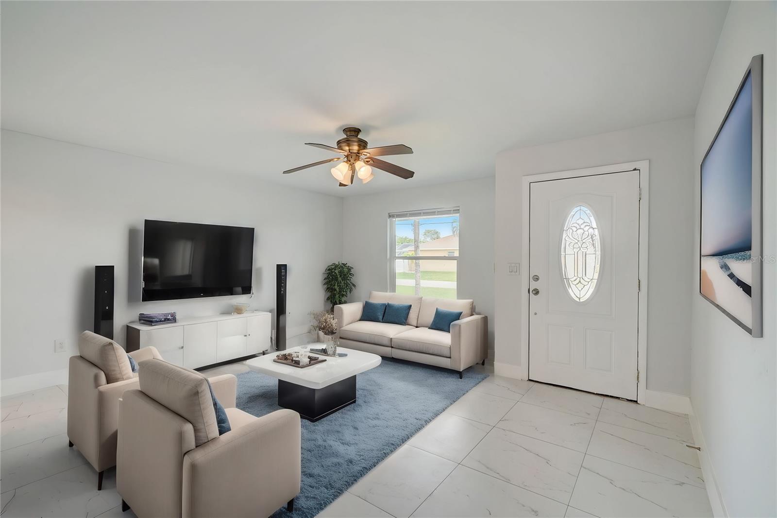 This home offers a 2023 roof, a 2019 AC, a 2024 pool pump, and all city water and sewer assessments are paid. Fully renovated, 3 bedrooms, 2 bath pool home in the heart of Cape Coral! Every part of the home was touched during this renovation. The kitchen is equipped with new stainless-steel appliances, quartz countertop and wood shaker cabinets. Floors were all updated to a modern ceramic tile and both bathrooms were fully upgraded! Centrally located within a short driving distance to downtown Fort Myers and just a 5-minute drive to Rosen Park and Boat Ramp. Call today for a private tour!