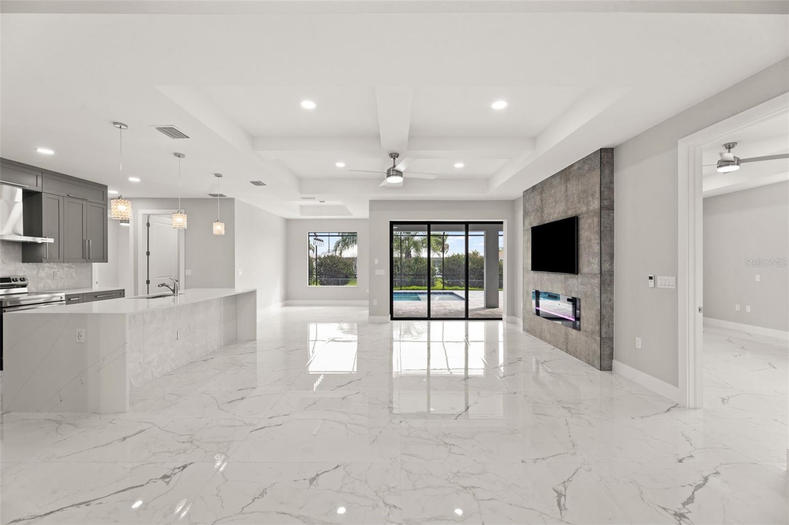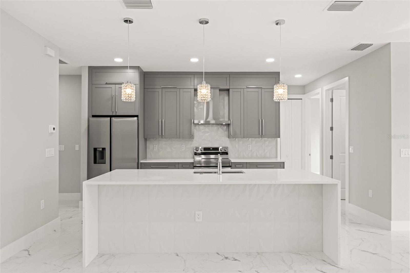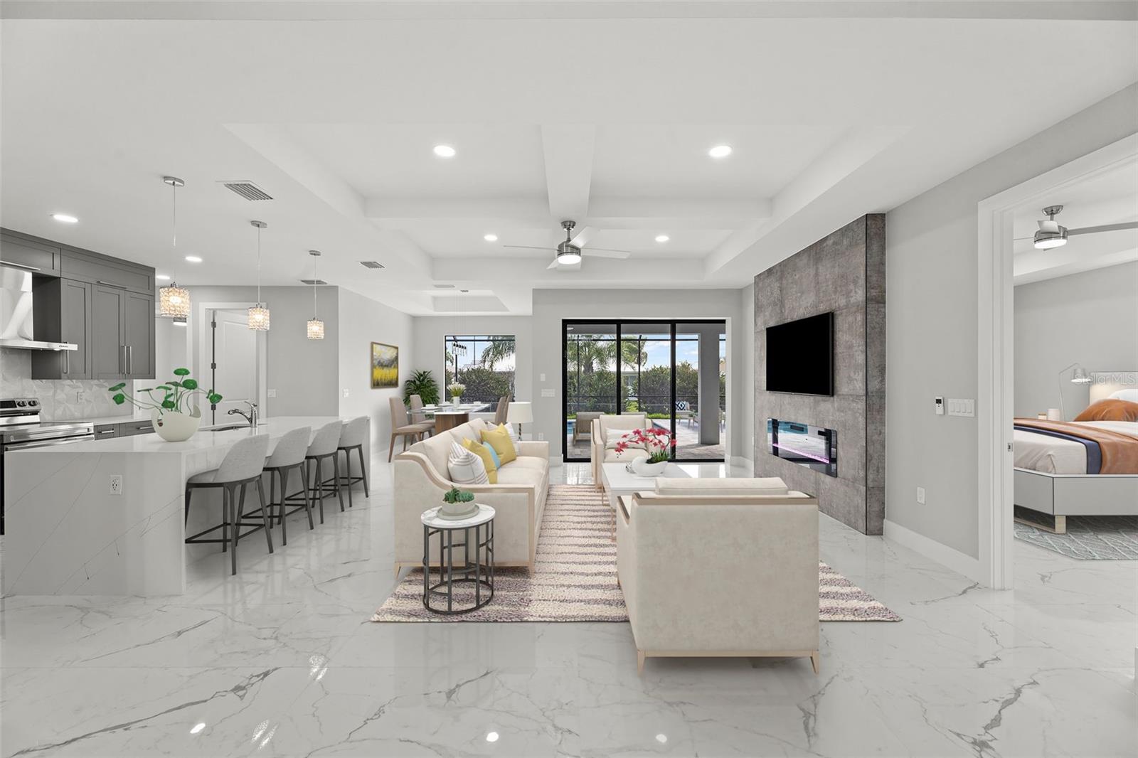 One or more photo(s) has been virtually staged. Beautiful and modern NEW CONSTRUCTION home featuring 3 Bedrooms, 2 Full Bathrooms, a 2 Car-Garage, the living area is 2000 sq. ft. Cool off on the large enclosed lanai with a large pool with a splash section, a large lounge area to soak in that Florida sunshine and an outdoor grill station and seating area. Lots of natural light shines through the dual glass sliders that lead into the living area, with natural light beaming off the beautiful porcelain tile flooring spread across all rooms throughout the home. The kitchen features quartz countertops, stainless steel appliances, and elegant kitchen cabinets with plenty of storage space. A large waterfall island with extra seating overlooking the dining and living area. The master bedroom has a separate sliding door leading to the pool, two walk-in closets, double sinks, along with a spacious shower and tub with a great design. Hurricane impact windows and doors! All Assessments are Paid. Many other perks throughout the home. Conveniently located...a short drive, paddle or walk to The Shops at Surfside. Home Warranty! Schedule a tour today, this home is 100% Completed!