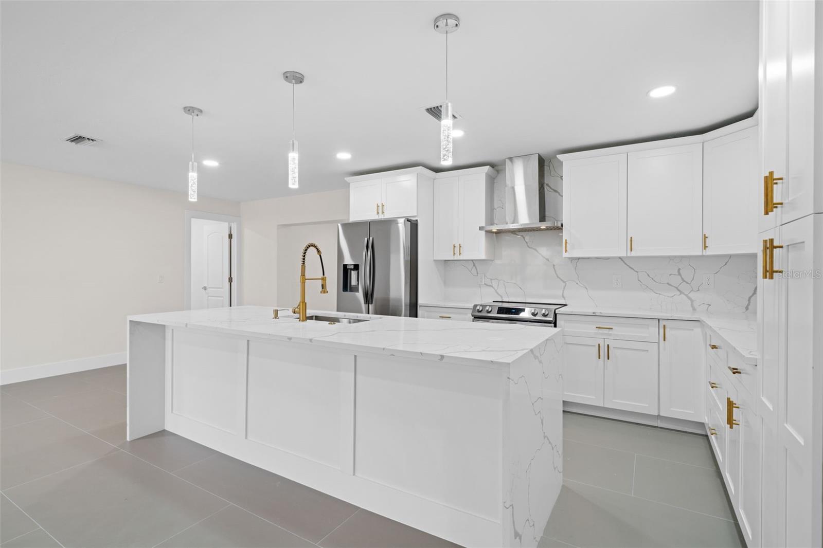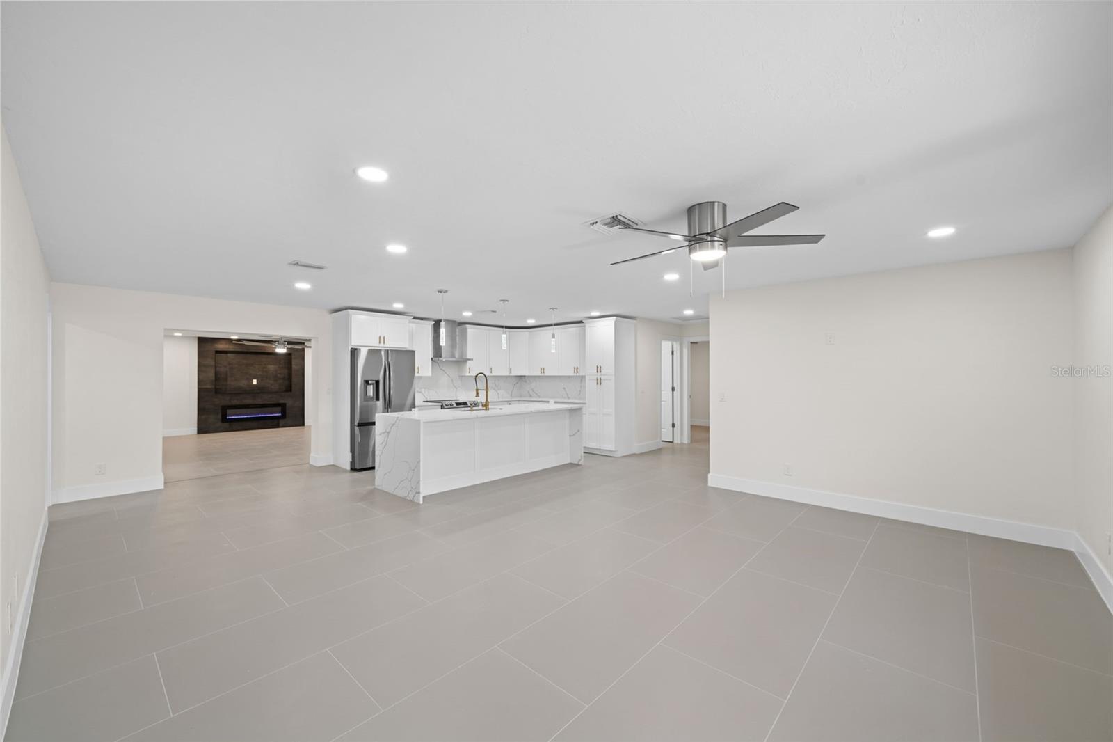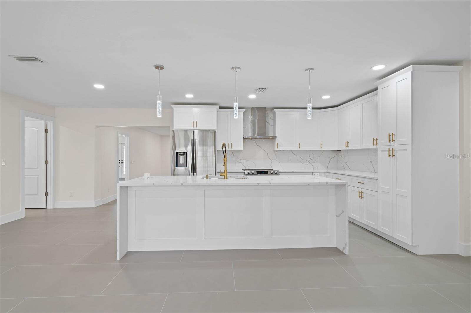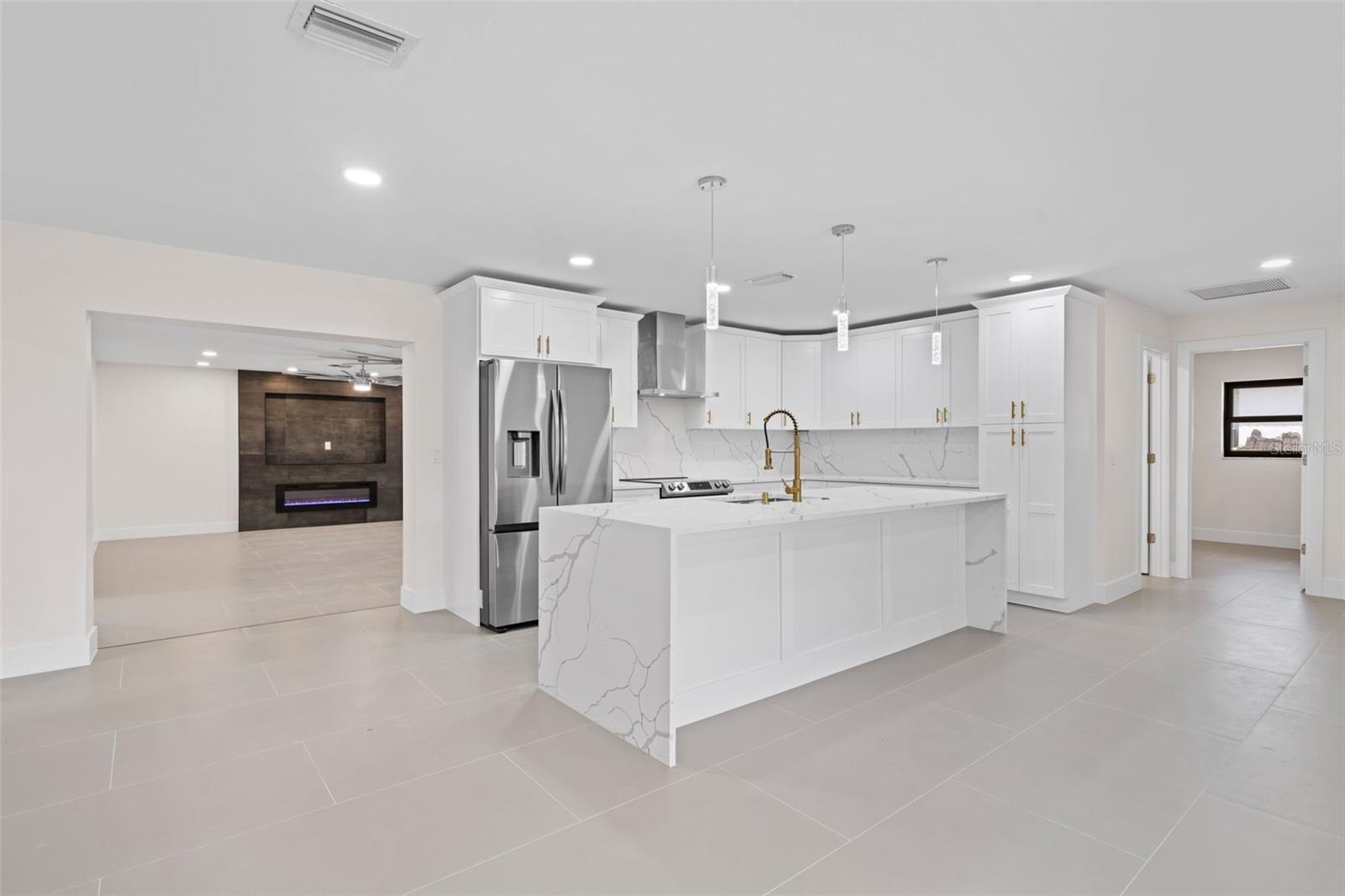 Welcome to this fully renovated home, nestled on a sought-after corner lot less than half a mile away from Cape Harbour. Undergone a stunning renovation, every inch of this residence has been carefully designed to radiate sophistication. The heart of the home, the kitchen, boasts a striking waterfall quartz island and high-quality finishes, setting the stage for culinary excellence. Beyond the kitchen, the South Facing Pool offers a serene escape and a quiet place to unwind. Inside, the thoughtful renovation continues with four bedrooms and three bathrooms, each impeccably updated to reflect modern luxury. Relax under the gentle breeze of oversized ceiling fans or cozy up by the fireplace on cooler evenings. Outside, the attention to detail is evident in the meticulously redone driveway and beautifully manicured landscaping, and creating a serene oasis enhanced by the presence of graceful palm trees. This home offers an unparalleled blend of comfort and elegance, inviting you to experience true tranquility.
