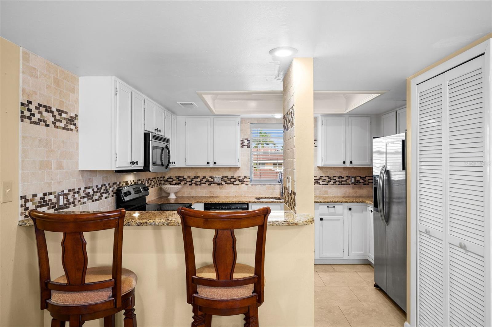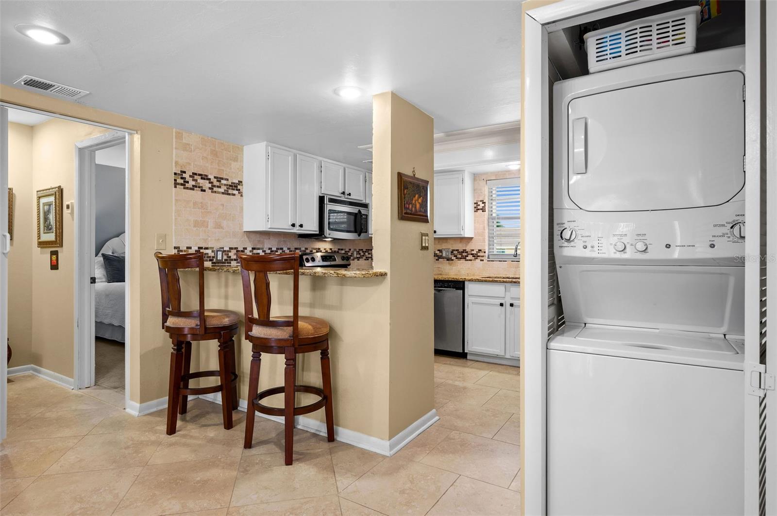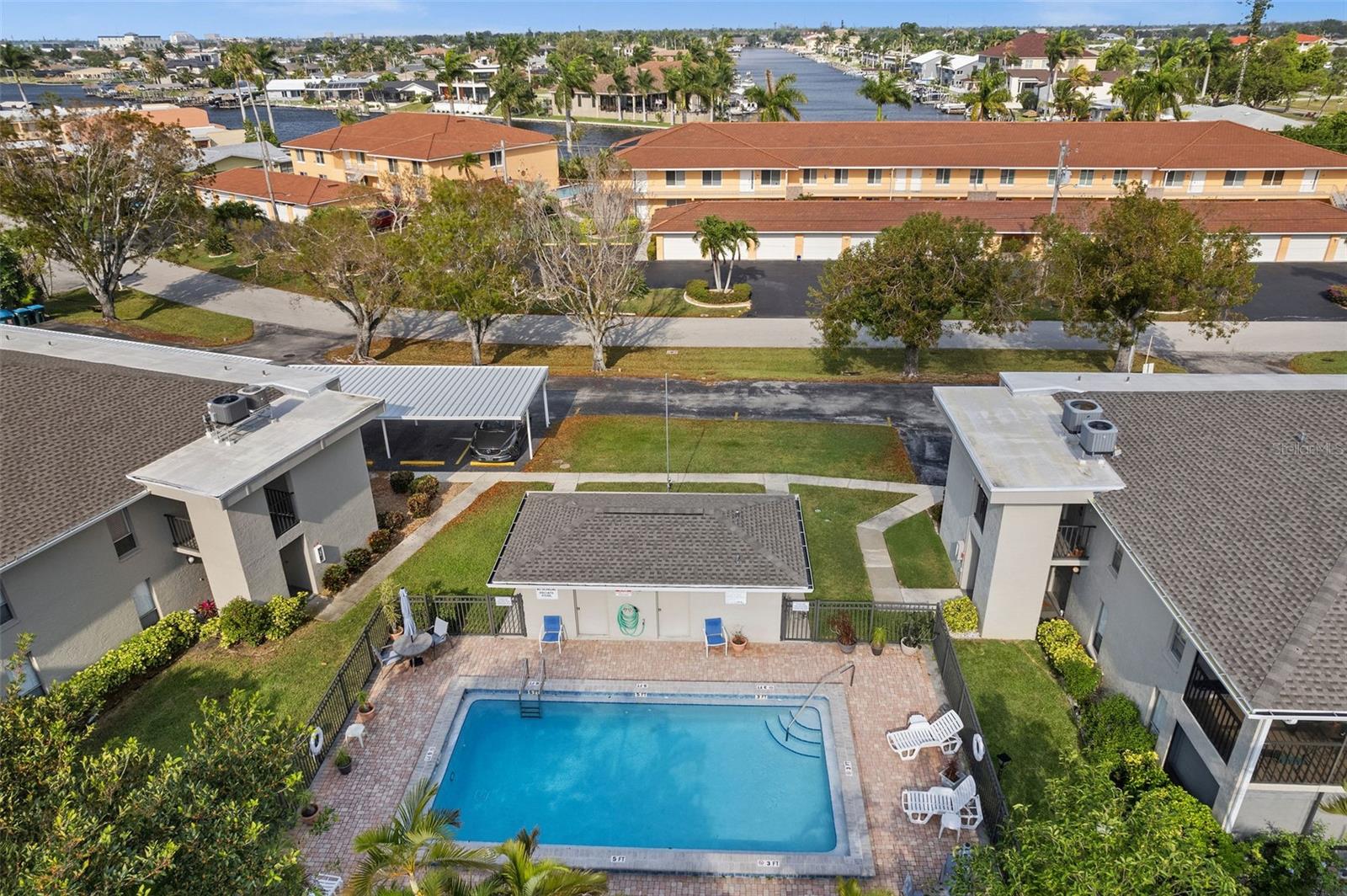 Welcome to your new home in Cape Coral, Florida! This second-floor 2 bedroom, 2 bath condominium is cozy yet spacious. The kitchen is a chef's delight, featuring stainless steel appliances including a refrigerator, oven, dishwasher, and microwave, all complemented by granite countertops, including a convenient breakfast bar for casual dining. No need to worry about laundry – a washer and dryer are conveniently located right in the unit for added convenience. The master bedroom offers a serene retreat, complete with access to the lanai/balcony, where you can start your day with a cup of coffee or unwind in the evening while overlooking lush tropical vegetation. The lanai is covered and equipped with sliding doors, allowing for seamless indoor-outdoor living. This turnkey property comes fully furnished, so you can move in and start enjoying the Florida lifestyle right away. In addition to the private retreat of your own unit, the community offers amenities such as a refreshing pool where you can relax and soak up the sun. Plus, you'll have the added convenience of a designated carport for parking. This condo in walking distance to Jaycee Park, and near restaurants, shops, and downtown. Experience the best of Cape Coral living in this meticulously maintained condominium – schedule your viewing today and make it yours before it's gone!