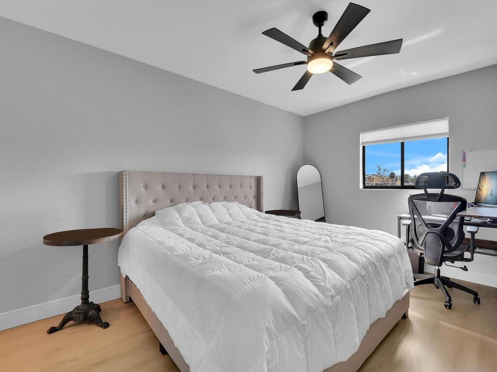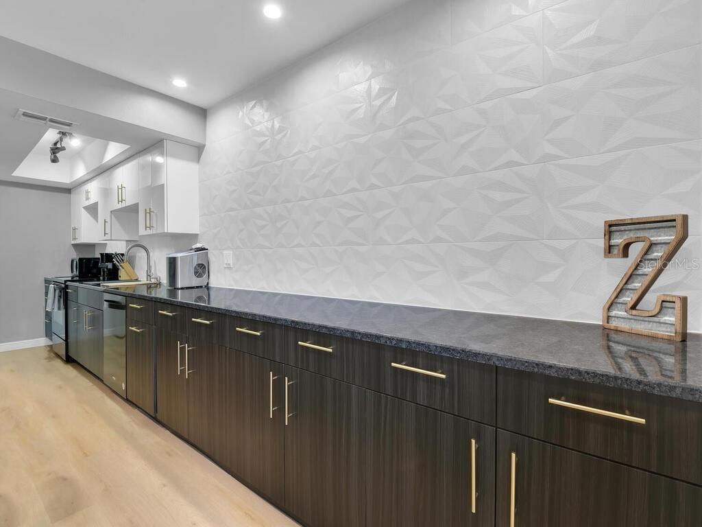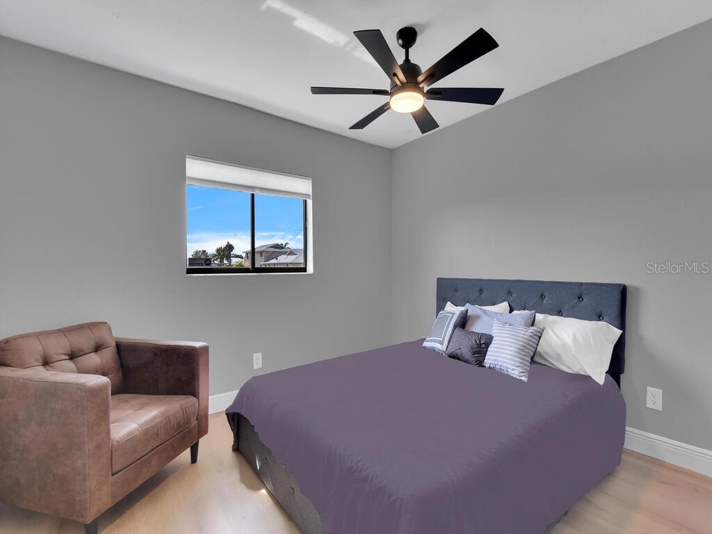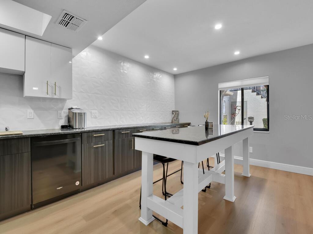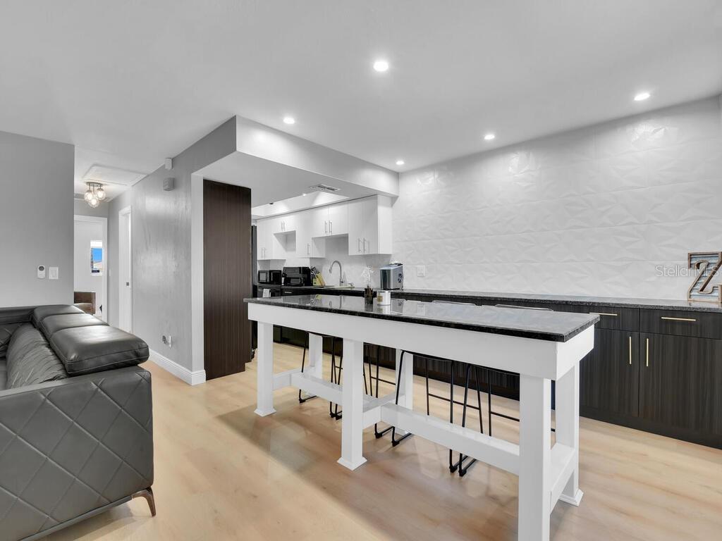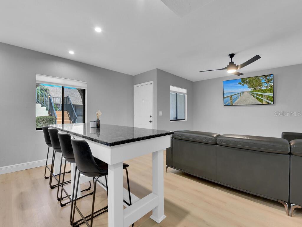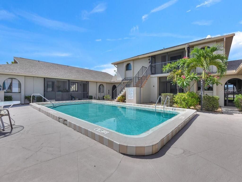 Welcome to your oasis in Southwest Cape Coral. Nestled in the intimate Coral Court II complex, this beautifully renovated ground-floor condo offers the perfect blend of tranquility and convenience. Located in the vibrant heart of Southwest Cape Coral, this 2-bedroom, 2-bathroom residence is your gateway to the area's finest shopping, dining, and entertainment. Step through the private screened entrance into a thoughtfully designed open floor plan. The seamlessly integrated living, dining, and kitchen areas showcase brand new luxury vinyl plank flooring and baseboards, creating an elegant and easy-to-maintain space. Fresh paint, new doors, and contemporary lighting further enhance the modern aesthetic. The fully remodeled kitchen is a culinary enthusiast's dream, featuring an expansive 8-foot island, brand new cabinets with sleek black granite countertops, and state-of-the-art appliances. Both bedrooms offer comfort and versatility. The primary suite boasts an en-suite bathroom, while the second bedroom is ideal for guests or a home office. The tastefully designed bathrooms feature contemporary fixtures and finishes, completing the home's stylish appeal. Additional highlights include updated plumbing and electrical systems, a large swimming pool just steps from your door, and a charming courtyard setting fostering a sense of community. This gem in one of Cape Coral's most sought-after areas offers the perfect balance of privacy and community living. Experience the joy of Florida living at its finest – schedule your showing today and make this delightful condo your new home.
