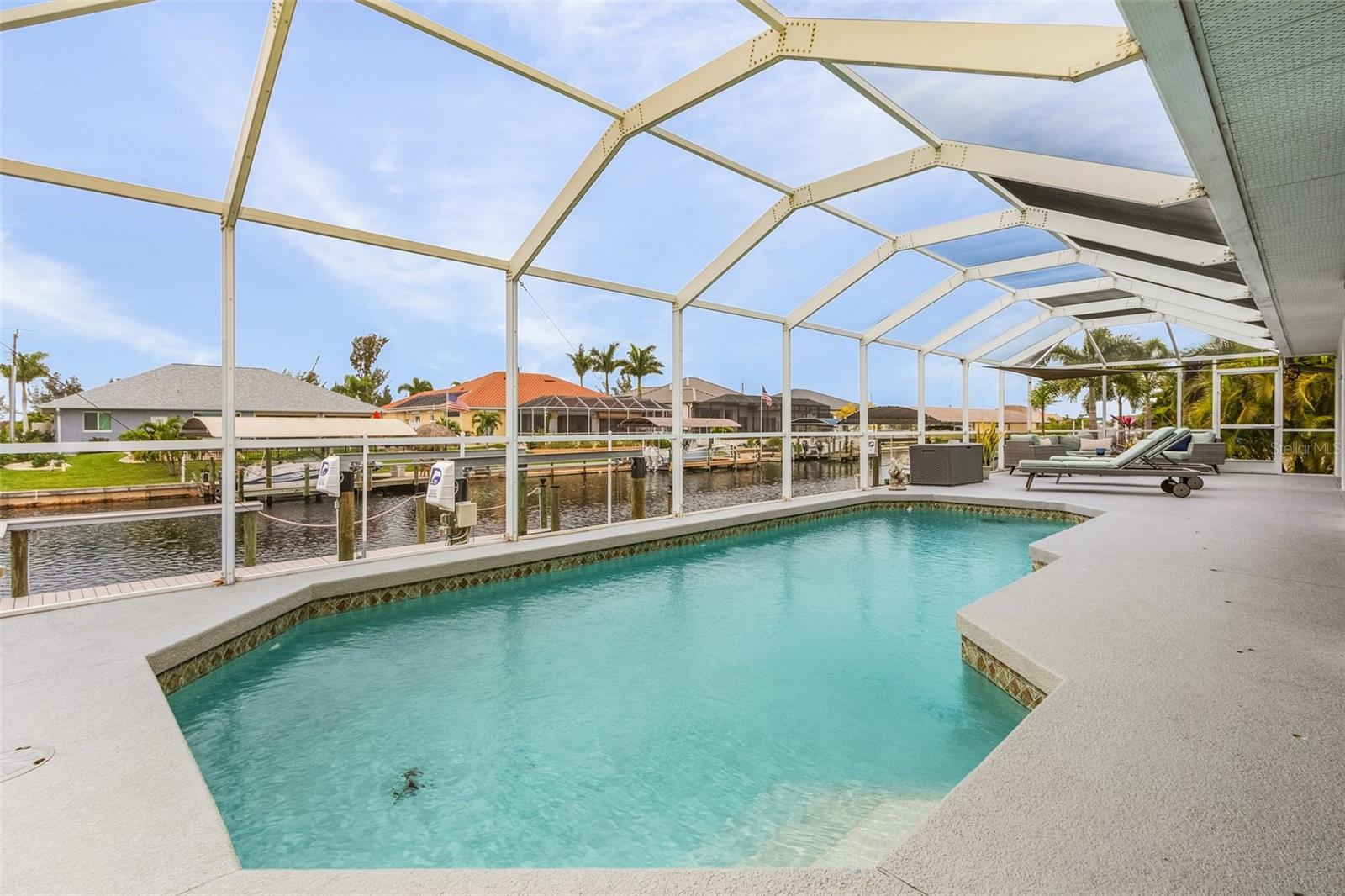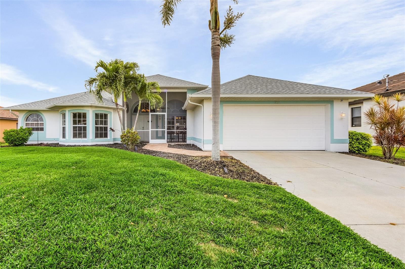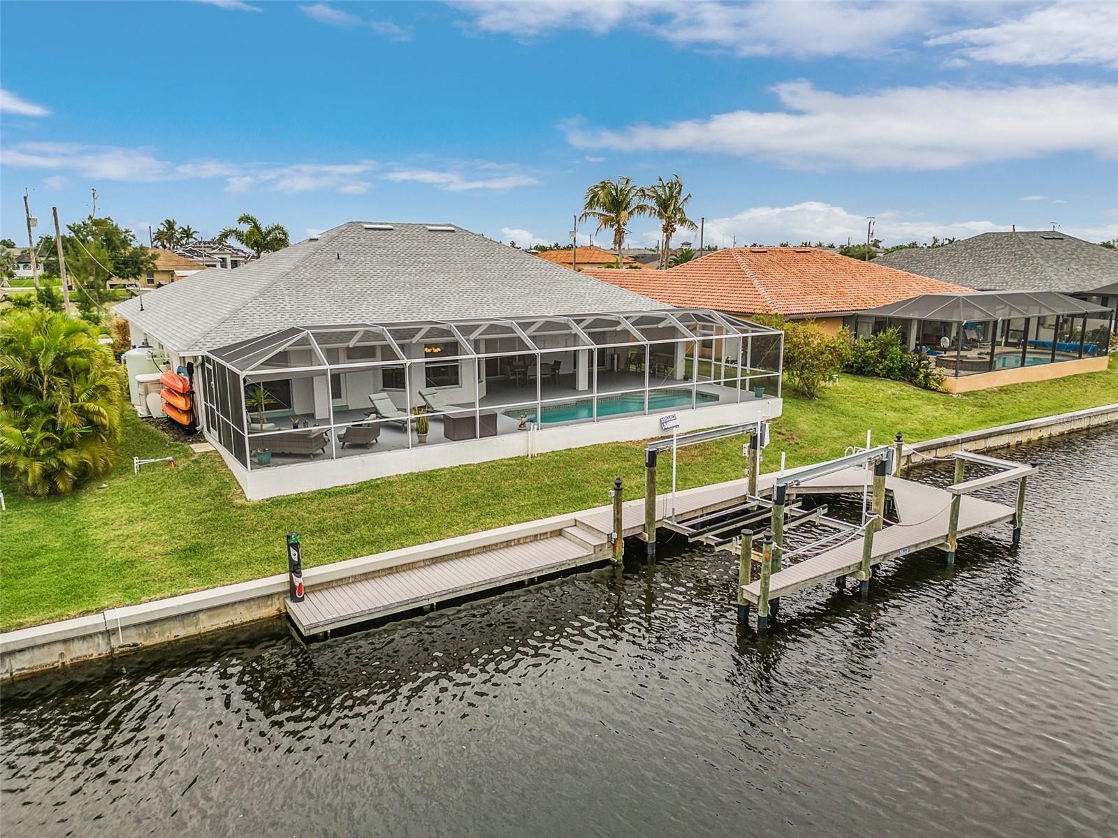 Welcome to your waterfront paradise! This beautifully appointed home offers a perfect blend of style, comfort, and functionality. Nestled on a Gulf access canal, this home features 3 bedrooms, 2 bathrooms, and an office/den, providing ample space for both relaxation and productivity. Step inside to discover the beauty of this home, where a 2017 upgraded gourmet kitchen awaits. Adorned with stunning granite countertops, solid backsplash, and 2021 stainless-steel appliances, it's a chef's dream come true. The eat-in kitchen boasts a convenient breakfast bar, perfect for casual meals, while the adjacent formal dining room sets the stage for memorable gatherings and dinner parties. The outdoor living is equally impressive, boasting an oversized lanai area and a heated pool along with a solar cover for year-round enjoyment. The dock area is made of composite dock with a 10k boat lift with water and electricity at the dock. There are three kayaks and a rack that are included for additional water adventures. Entertain with ease thanks to built-in Bluetooth speakers and MYQ home link app that controls the dock lights, pool lights, and house lights. Furniture and TVs convey with the property, making it move-in ready. Modern amenities abound, pre-wired for electric car charging, an irrigation system, and a 30-amp transfer switch for a generator ensuring convenience and comfort. You'll also enjoy the peace of mind that comes with a lifetime warranty on the roof, which transfers to the new owner. With a smart home setup, this property offers both style and functionality in one breathtaking package. Don't miss your chance to make this dream home yours! Ownership: Single Family Pets: No Approval Needed