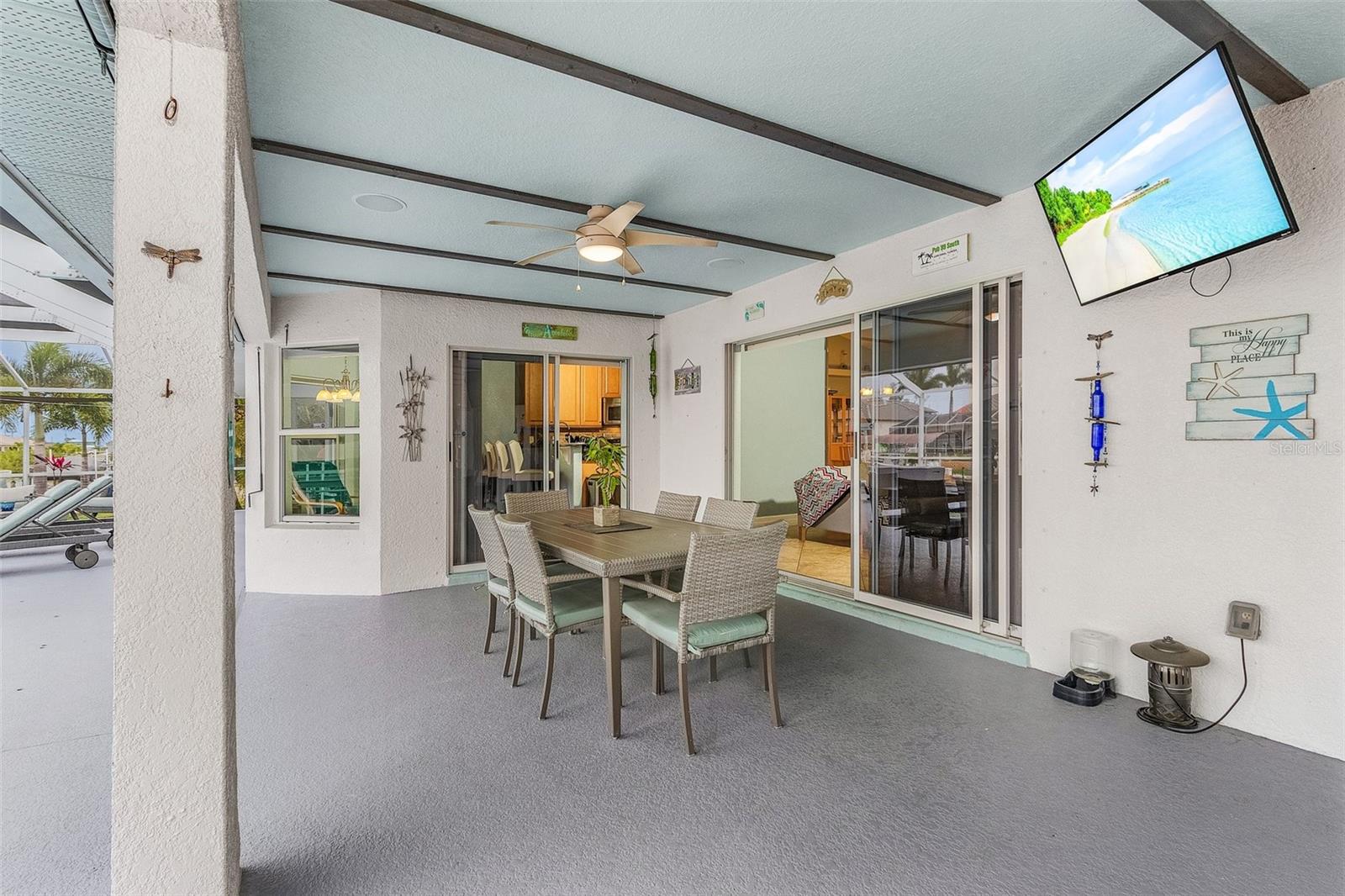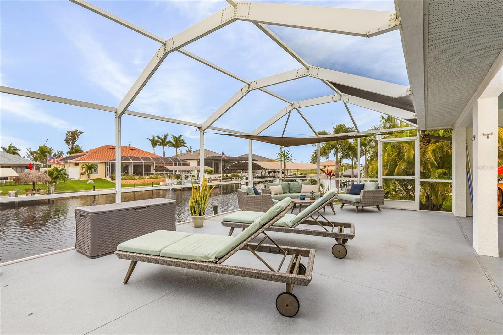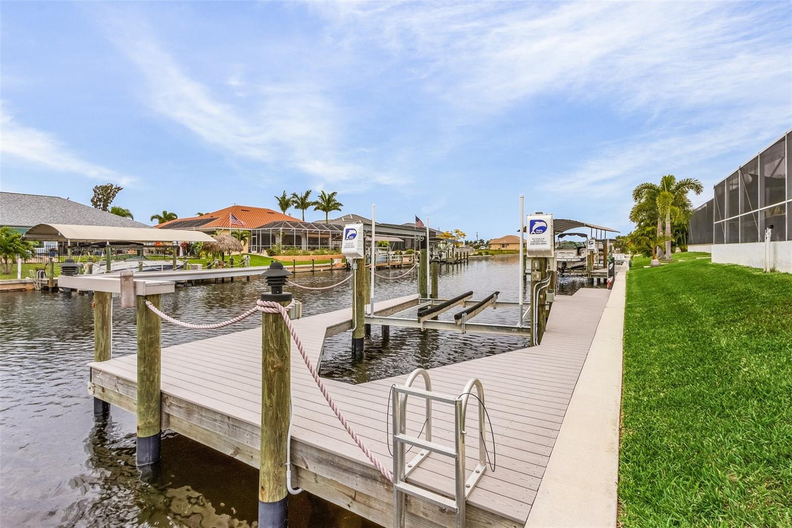 Welcome to your waterfront paradise! This beautifully appointed home offers a perfect blend of style, comfort, and functionality. Nestled on a Gulf access canal, this home features 3 bedrooms, 2 bathrooms, and an office/den, providing ample space for both relaxation and productivity. Step inside to discover the beauty of this home, where a 2017 upgraded gourmet kitchen awaits. Adorned with stunning granite countertops, solid backsplash, and 2021 stainless-steel appliances, it's a chef's dream come true. The eat-in kitchen boasts a convenient breakfast bar, perfect for casual meals, while the adjacent formal dining room sets the stage for memorable gatherings and dinner parties. The outdoor living is equally impressive, boasting an oversized lanai area and a heated pool along with a solar cover for year-round enjoyment. The dock area is made of composite dock with a 10k boat lift with water and electricity at the dock. There are three kayaks and a rack that are included for additional water adventures. Entertain with ease thanks to built-in Bluetooth speakers and MYQ home link app that controls the dock lights, pool lights, and house lights. Furniture and TVs convey with the property, making it move-in ready. Modern amenities abound, pre-wired for electric car charging, an irrigation system, and a 30-amp transfer switch for a generator ensuring convenience and comfort. You'll also enjoy the peace of mind that comes with a lifetime warranty on the roof, which transfers to the new owner. With a smart home setup, this property offers both style and functionality in one breathtaking package. Don't miss your chance to make this dream home yours! Ownership: Single Family Pets: No Approval Needed