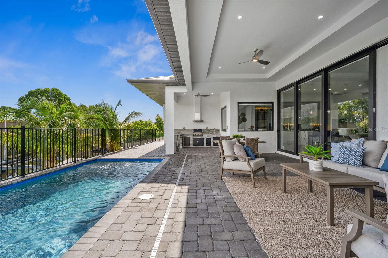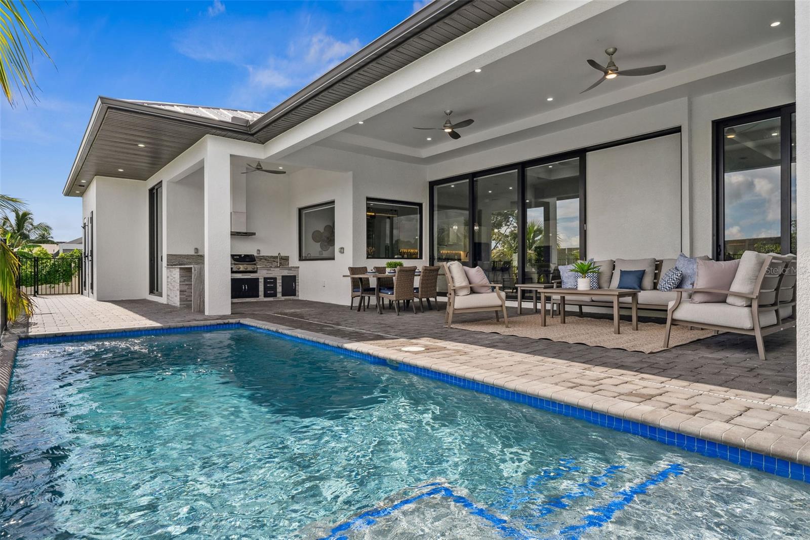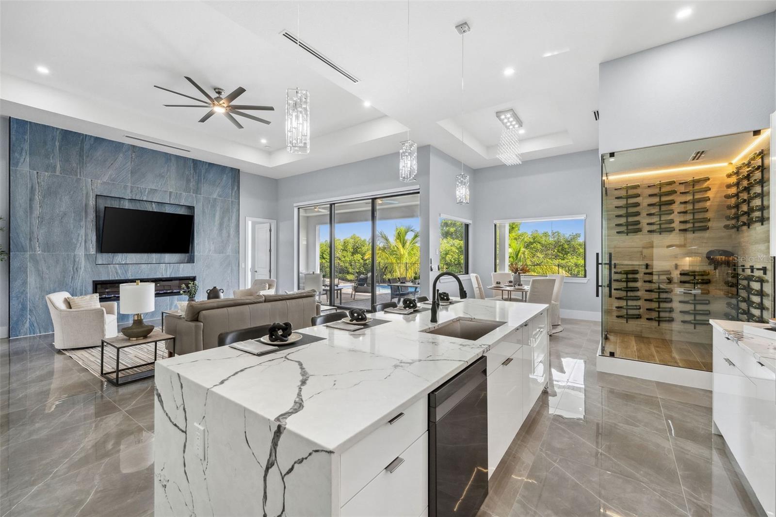 Welcome to your dream home at 1843 Everest Pkwy! This brand-new, direct Gulf Access luxury home offers 5 bedrooms, 6 bathrooms and 3,052 square feet of interior living space. The modern kitchen features quartz countertops, extensive custom cabinetry, a hidden pantry, and stainless high-end appliances. Four of the bedrooms feature ensuite bathrooms and walk-in closets, allowing convenience and privacy for you and your guests. The master bath has dual sinks and a glass wet room with a separate tub. The home also features a linear electric fireplace, shiny tile floors, high tray ceilings, and fine finishes throughout. This is an amazing indoor-outdoor entertaining house with a climate-controlled, glass-walled wine room and an oversized island. The border to the outside disappears through a wall of hurricane-impact pocket sliding doors. On the covered lanai, there is an outdoor kitchen equipped with a built-in grill, exhaust vent, sink, and bar, all overlooking the heated saltwater pool and direct Gulf access canal. The oversized 3-car garage has a 12-foot-high insulated garage door, perfect for storing all your toys. For boating enthusiasts, the property includes a 16,000 lb boat lift and a new composite dock. Just a short boat ride to restaurants, beaches, and the Gulf of Mexico. Don’t miss out on the chance to own this slice of paradise with direct Gulf access in a prime location!