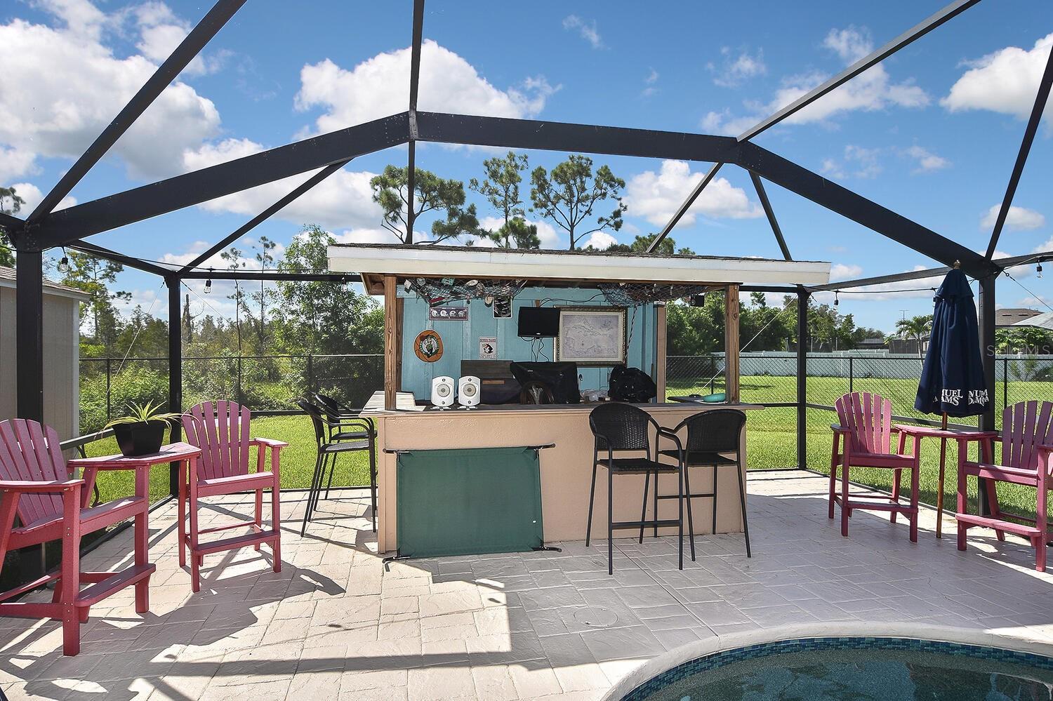 HUGE PRICE REDUCTION! Discover your dream home in Cape Coral! Nestled on a quiet cul-de-sac with only five houses, this gem offers privacy and tranquility. The oversized lot, over 1/3 acre, is fully fenced and backs up to a wooded city-owned property, providing a serene and private backyard view. The highlight of this property is the large heated saltwater pool, complete with a spacious pool deck perfect for lounging and entertaining. There's even a bar with electricity at one end of the screened enclosure, making it an ideal spot for gatherings. Families will appreciate the close proximity to schools and sidewalks, making safe walks and easy commutes a breeze. A new, large shed built to the latest building and hurricane codes offers ample storage. The house is equipped with electricity for a generator and a motor home, ensuring you're always prepared. Located in flood zone X500, this home also features new appliances installed in 2019, a large screened front porch perfect for socializing with neighbors, and a cozy built-in electric fireplace inside. An alcove with a built-in desk is ideal for homework, a home office, or hobbies. Don't miss out on this exceptional property that combines comfort, convenience, and a fantastic location. Make it yours today!