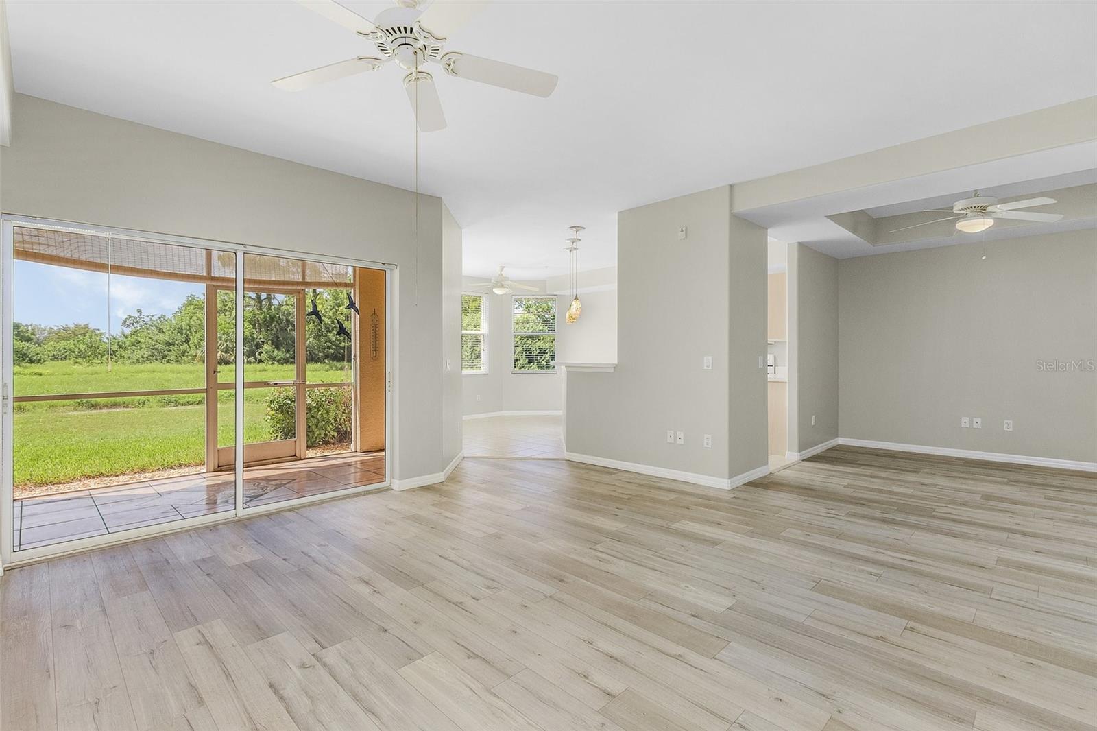 Seller to pay $4,000 towards Buyer's closing costs! Discover this stunning and highly sought-after 1st floor condo featuring 2 spacious bedrooms, 2 baths, and a versatile den/flex space. Conveniently situated just minutes from downtown Cape Coral and a short drive to Fort Myers Beach and Sanibel, this condo embodies the quintessential south Florida lifestyle. The condo is equipped with a BRAND NEW AC SYSTEM and all essential appliances for your ease and also boasts expansive windows, sliding doors, and a spacious screened-in lanai. The inviting dining area includes a bay-style window offering picturesque panoramic views of the meticulously maintained grounds. Additionally, there is an exterior 4x5 ft storage area just steps from the front door. You'll also have access to a designated, covered parking space along with extra parking options. Banyan Trace amenities include a heated community pool and hot tub, gazebo, bocce and tennis/pickleball courts, BBQ and picnic area, cabana, clubhouse, exercise room, and comprehensive internet access. Water, sewer, and building insurance are also covered. Enjoy a friendly community and the chance to relax while taking in the stunning Florida sunrises and sunsets!