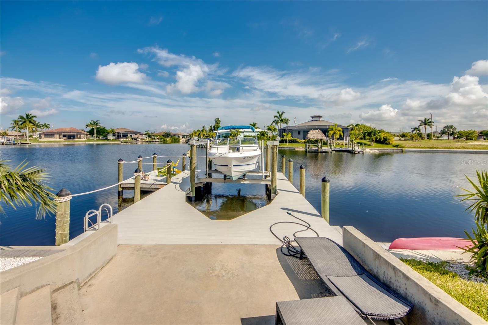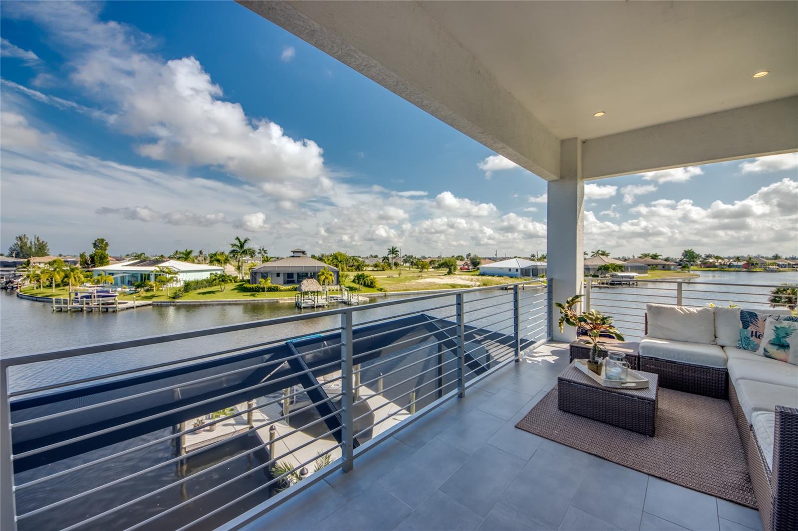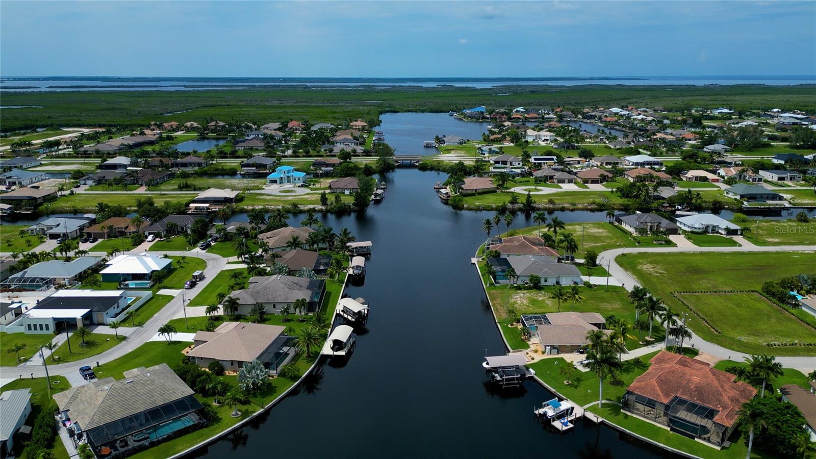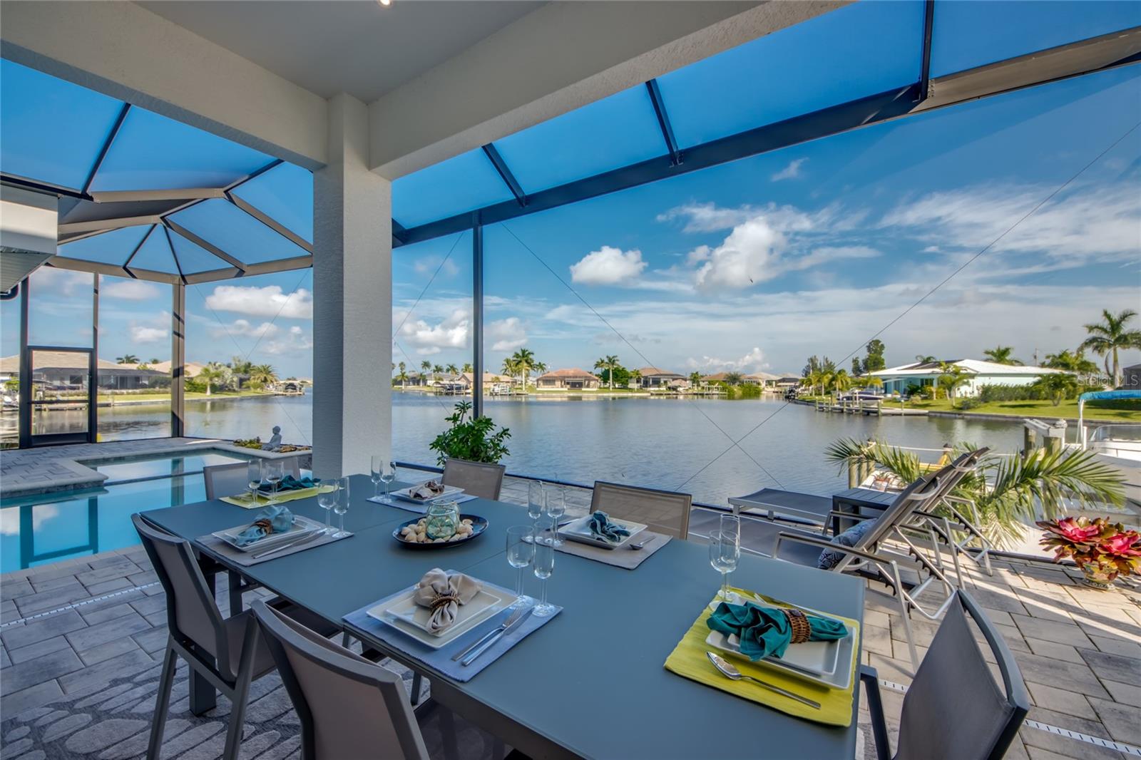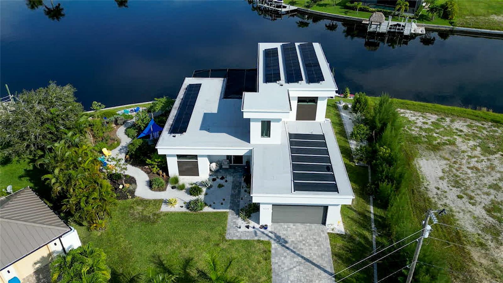 This dream home is on a breathtaking intersecting canal with the most amazing views and fantastic boat access! Every inch of the home has been thoughtfully planned out to enjoy your days and nights in paradise. Imagine hopping on your boat or kayak and passing dolphins and manatee and heading out to one of the local island restaurants on the warm Gulf waters! This Beautiful 2 story newer home on oversized private lot in desirable area of NW Cape Coral offers that and so much more. How does not having an electric bill sound? Home has paid for solar panels that cover those costs. This adds up to HUGE savings! Located in desirable NW Cape Coral with many exciting projects and growth planned the value in this area will continue to appreciate. The home itself boasts every upgrade you can imagine; from the chef's gourmet kitchen, large heated infinity style pool and spa, boat lift and dock, full outdoor kitchen, contemporary finishes and top level tile and finishes to the impact windows and doors. Step into your first floor master bedroom with office/den attached or expand this area for huge first floor bedroom suite with gorgeous views of the pool and water. The kitchen area with tons of causal island seating opens to the large living area, which of course also faces the water for the most breathtaking views. The Convenient half bath and spacious pantry land laundry room are located adjacent to the kitchen area. There are two large guest bedrooms -one with balcony- and a full guest bath upstairs. Your backyard has been thoughtfully laid out with many areas to relax and enjoy the breathtaking sunrise and sunset views from either sider of the home. Many native plants for a low maintenance yet impressive landscape complete the year round vacation vibe. This home will indeed make all your SWFL living dreams come true! Be sure to "tour" the home via the 3D tour as well!