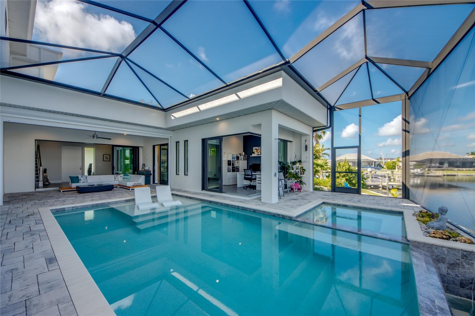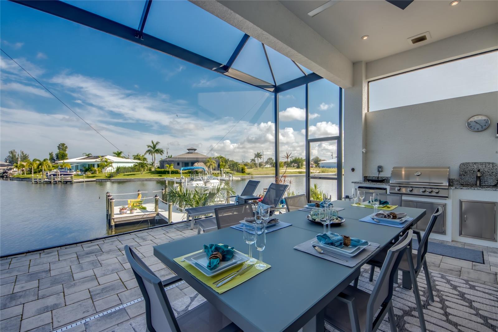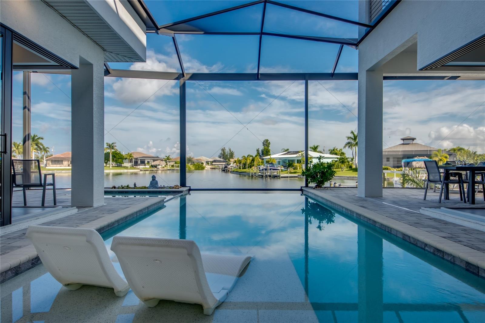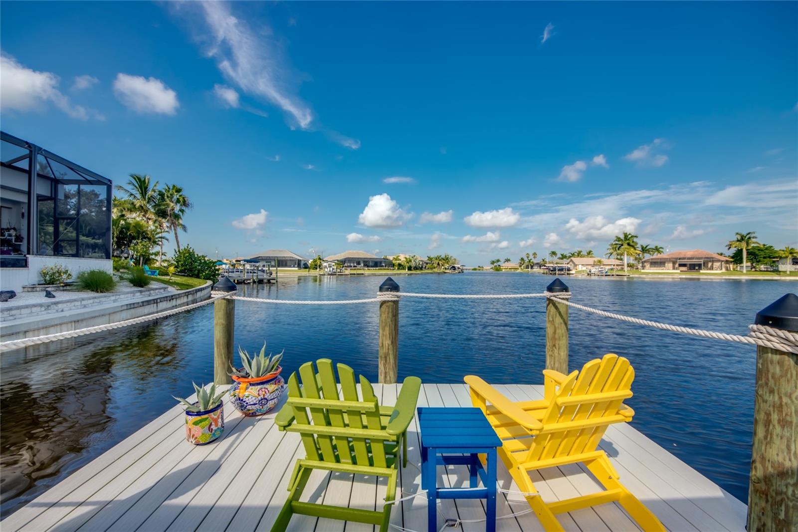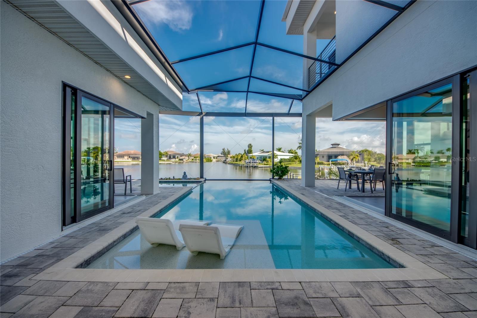 This dream home is on a breathtaking intersecting canal with the most amazing views and fantastic boat access! Every inch of the home has been thoughtfully planned out to enjoy your days and nights in paradise. Imagine hopping on your boat or kayak and passing dolphins and manatee and heading out to one of the local island restaurants on the warm Gulf waters! This Beautiful 2 story newer home on oversized private lot in desirable area of NW Cape Coral offers that and so much more. How does not having an electric bill sound? Home has paid for solar panels that cover those costs. This adds up to HUGE savings! Located in desirable NW Cape Coral with many exciting projects and growth planned the value in this area will continue to appreciate. The home itself boasts every upgrade you can imagine; from the chef's gourmet kitchen, large heated infinity style pool and spa, boat lift and dock, full outdoor kitchen, contemporary finishes and top level tile and finishes to the impact windows and doors. Step into your first floor master bedroom with office/den attached or expand this area for huge first floor bedroom suite with gorgeous views of the pool and water. The kitchen area with tons of causal island seating opens to the large living area, which of course also faces the water for the most breathtaking views. The Convenient half bath and spacious pantry land laundry room are located adjacent to the kitchen area. There are two large guest bedrooms -one with balcony- and a full guest bath upstairs. Your backyard has been thoughtfully laid out with many areas to relax and enjoy the breathtaking sunrise and sunset views from either sider of the home. Many native plants for a low maintenance yet impressive landscape complete the year round vacation vibe. This home will indeed make all your SWFL living dreams come true! Be sure to "tour" the home via the 3D tour as well!