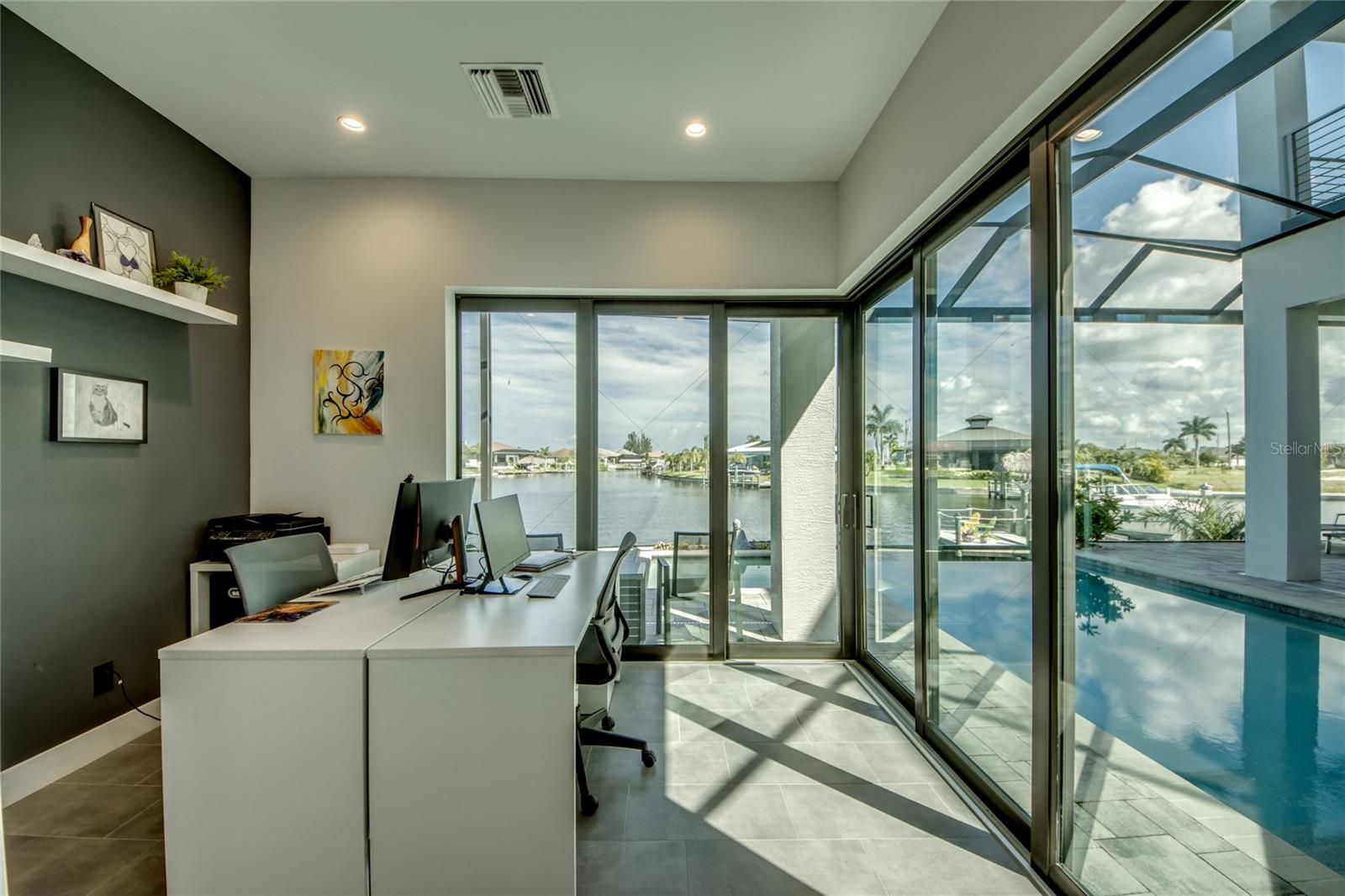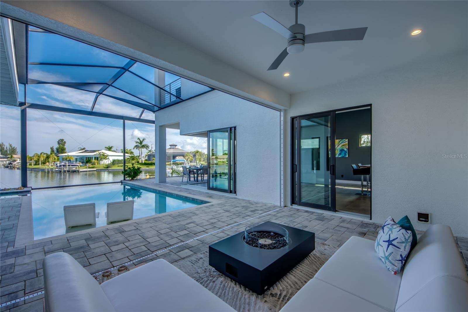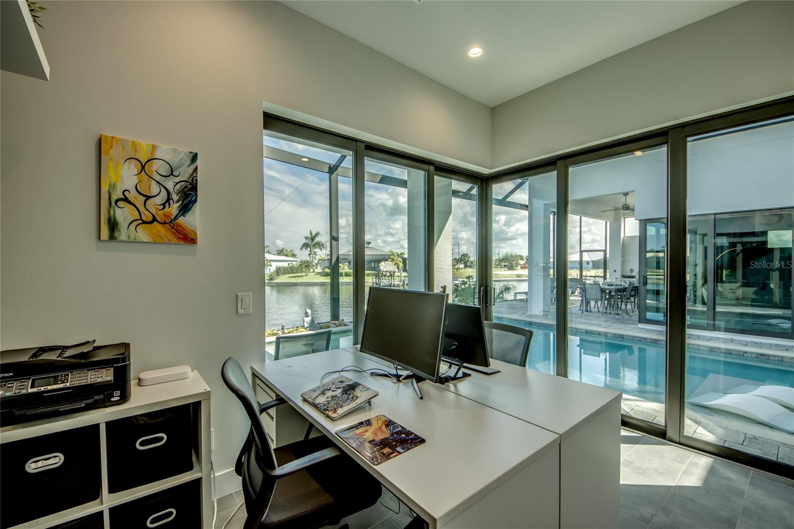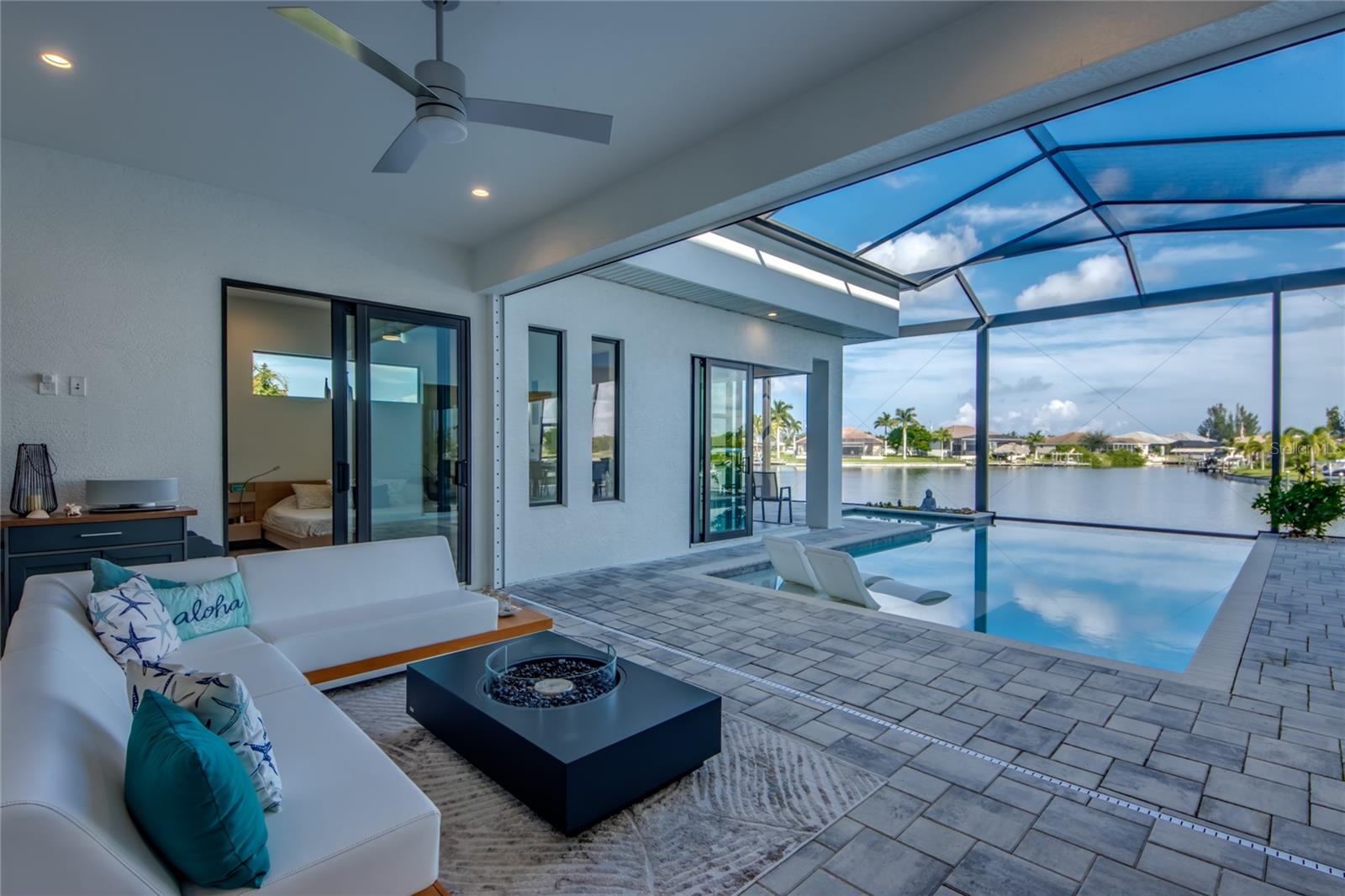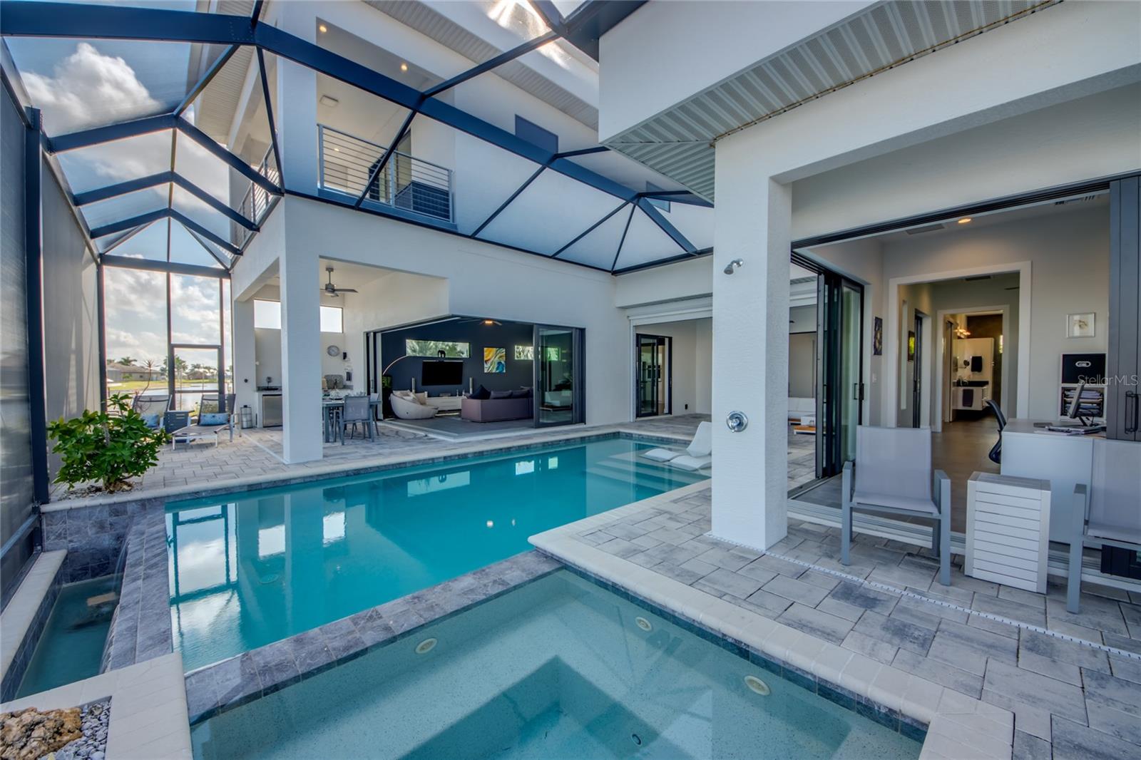 This dream home is on a breathtaking intersecting canal with the most amazing views and fantastic boat access! Every inch of the home has been thoughtfully planned out to enjoy your days and nights in paradise. Imagine hopping on your boat or kayak and passing dolphins and manatee and heading out to one of the local island restaurants on the warm Gulf waters! This Beautiful 2 story newer home on oversized private lot in desirable area of NW Cape Coral offers that and so much more. How does not having an electric bill sound? Home has paid for solar panels that cover those costs. This adds up to HUGE savings! Located in desirable NW Cape Coral with many exciting projects and growth planned the value in this area will continue to appreciate. The home itself boasts every upgrade you can imagine; from the chef's gourmet kitchen, large heated infinity style pool and spa, boat lift and dock, full outdoor kitchen, contemporary finishes and top level tile and finishes to the impact windows and doors. Step into your first floor master bedroom with office/den attached or expand this area for huge first floor bedroom suite with gorgeous views of the pool and water. The kitchen area with tons of causal island seating opens to the large living area, which of course also faces the water for the most breathtaking views. The Convenient half bath and spacious pantry land laundry room are located adjacent to the kitchen area. There are two large guest bedrooms -one with balcony- and a full guest bath upstairs. Your backyard has been thoughtfully laid out with many areas to relax and enjoy the breathtaking sunrise and sunset views from either sider of the home. Many native plants for a low maintenance yet impressive landscape complete the year round vacation vibe. This home will indeed make all your SWFL living dreams come true! Be sure to "tour" the home via the 3D tour as well!