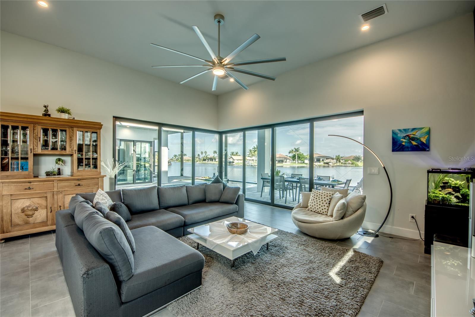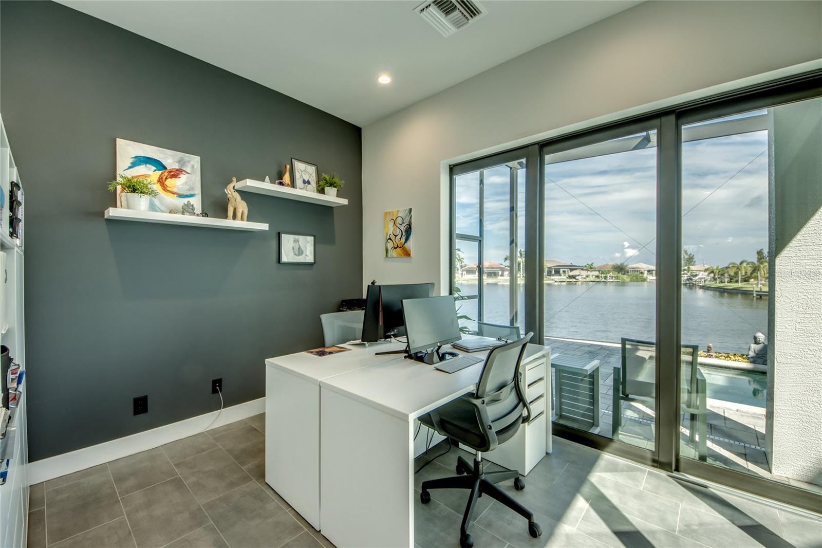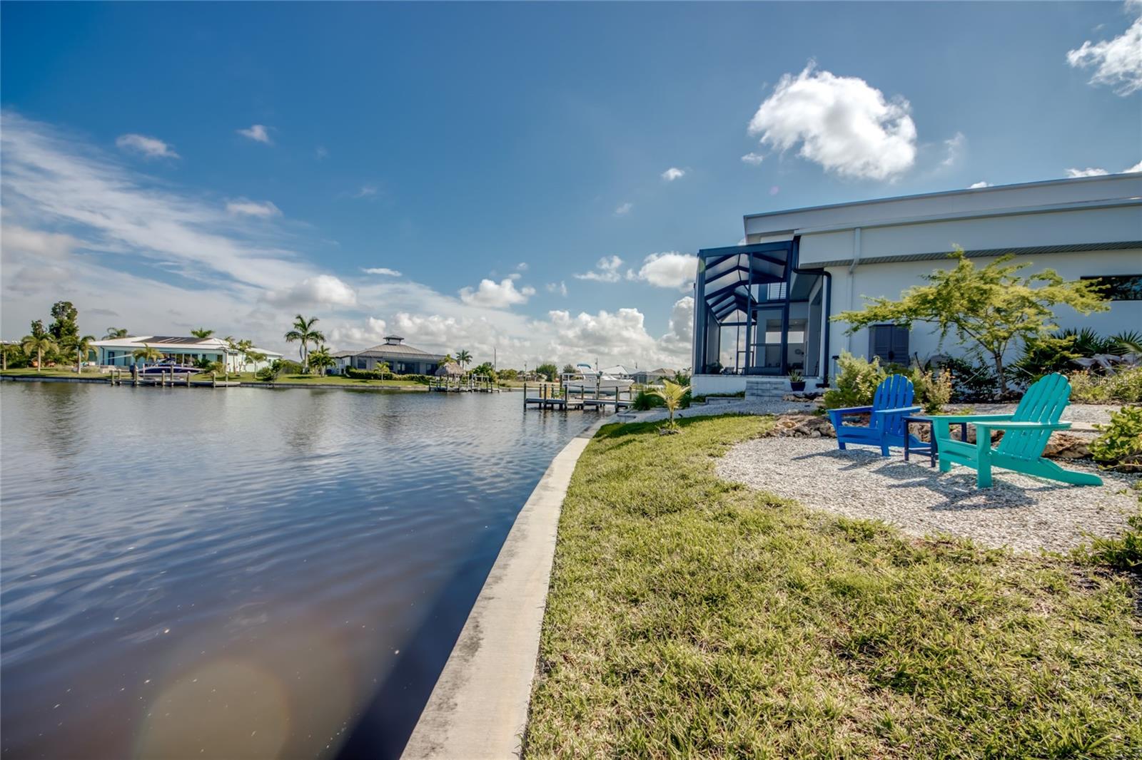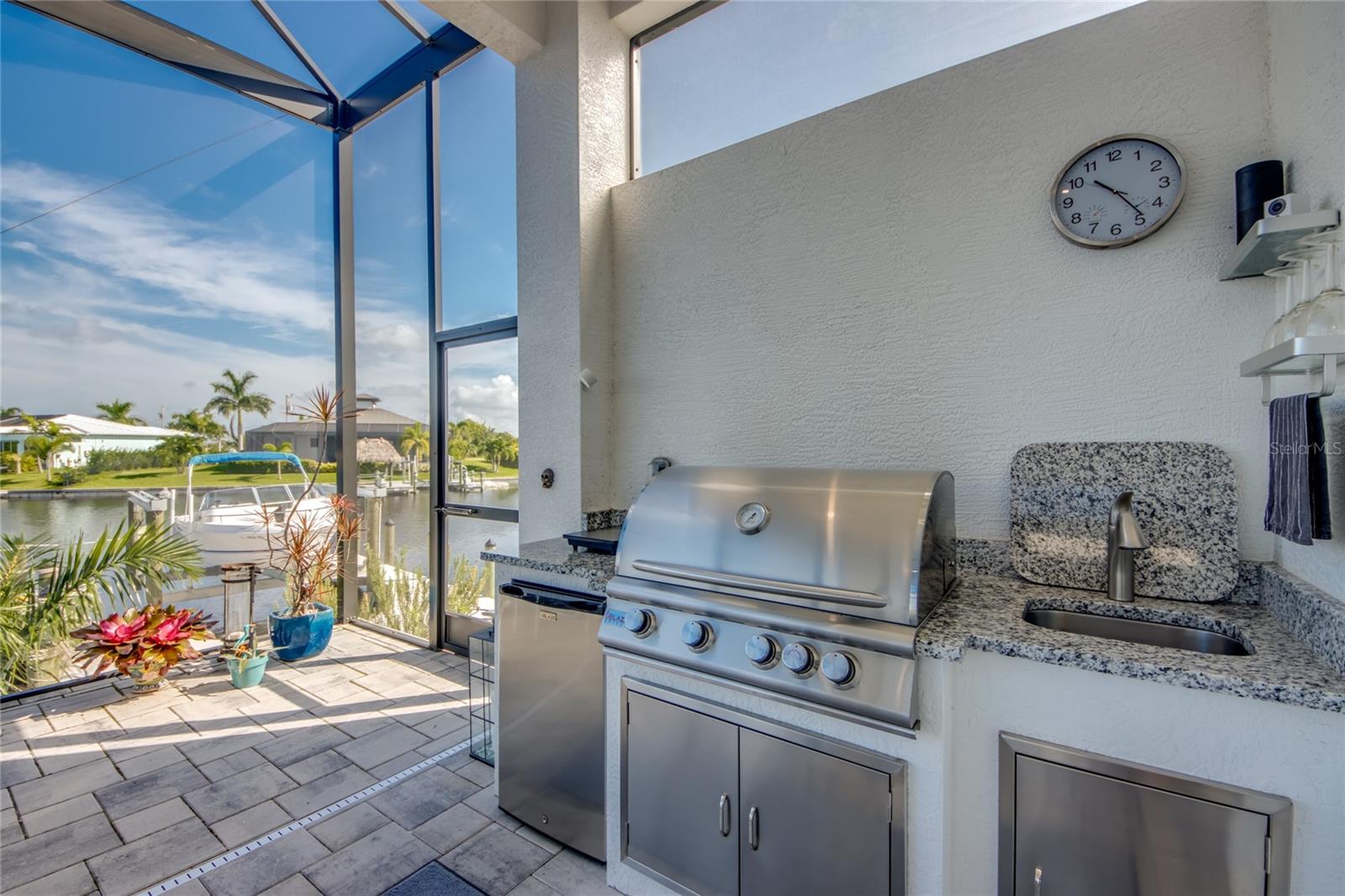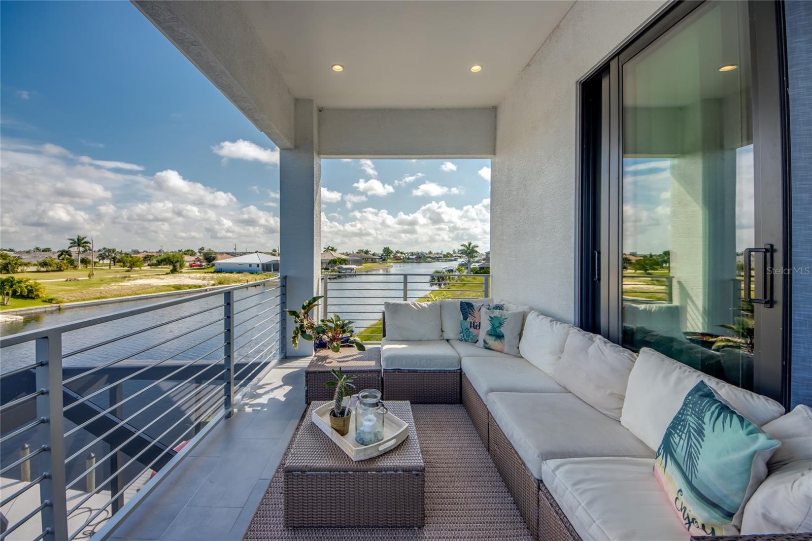 This dream home is on a breathtaking intersecting canal with the most amazing views and fantastic boat access! Every inch of the home has been thoughtfully planned out to enjoy your days and nights in paradise. Imagine hopping on your boat or kayak and passing dolphins and manatee and heading out to one of the local island restaurants on the warm Gulf waters! This Beautiful 2 story newer home on oversized private lot in desirable area of NW Cape Coral offers that and so much more. How does not having an electric bill sound? Home has paid for solar panels that cover those costs. This adds up to HUGE savings! Located in desirable NW Cape Coral with many exciting projects and growth planned the value in this area will continue to appreciate. The home itself boasts every upgrade you can imagine; from the chef's gourmet kitchen, large heated infinity style pool and spa, boat lift and dock, full outdoor kitchen, contemporary finishes and top level tile and finishes to the impact windows and doors. Step into your first floor master bedroom with office/den attached or expand this area for huge first floor bedroom suite with gorgeous views of the pool and water. The kitchen area with tons of causal island seating opens to the large living area, which of course also faces the water for the most breathtaking views. The Convenient half bath and spacious pantry land laundry room are located adjacent to the kitchen area. There are two large guest bedrooms -one with balcony- and a full guest bath upstairs. Your backyard has been thoughtfully laid out with many areas to relax and enjoy the breathtaking sunrise and sunset views from either sider of the home. Many native plants for a low maintenance yet impressive landscape complete the year round vacation vibe. This home will indeed make all your SWFL living dreams come true! Be sure to "tour" the home via the 3D tour as well!