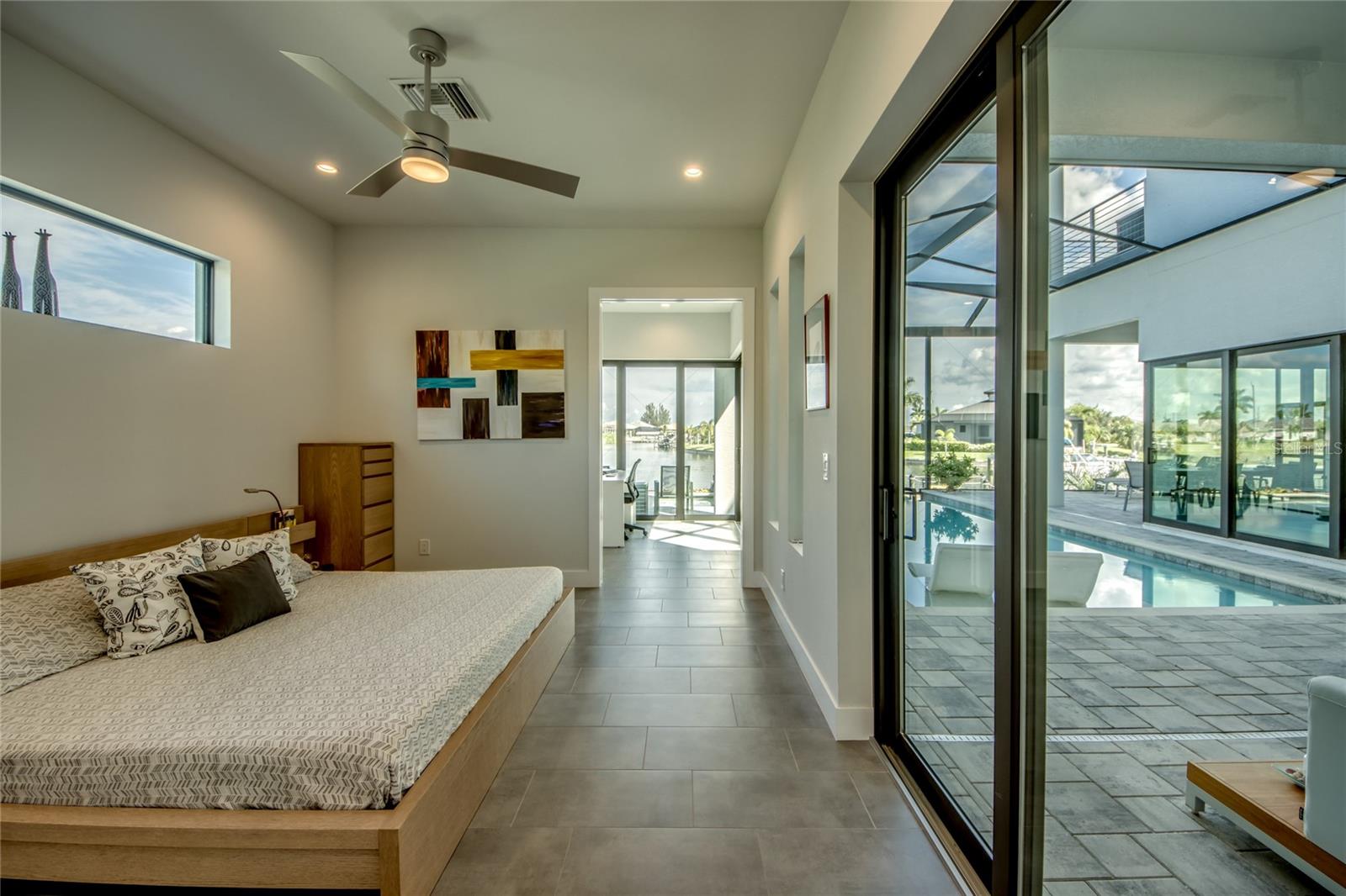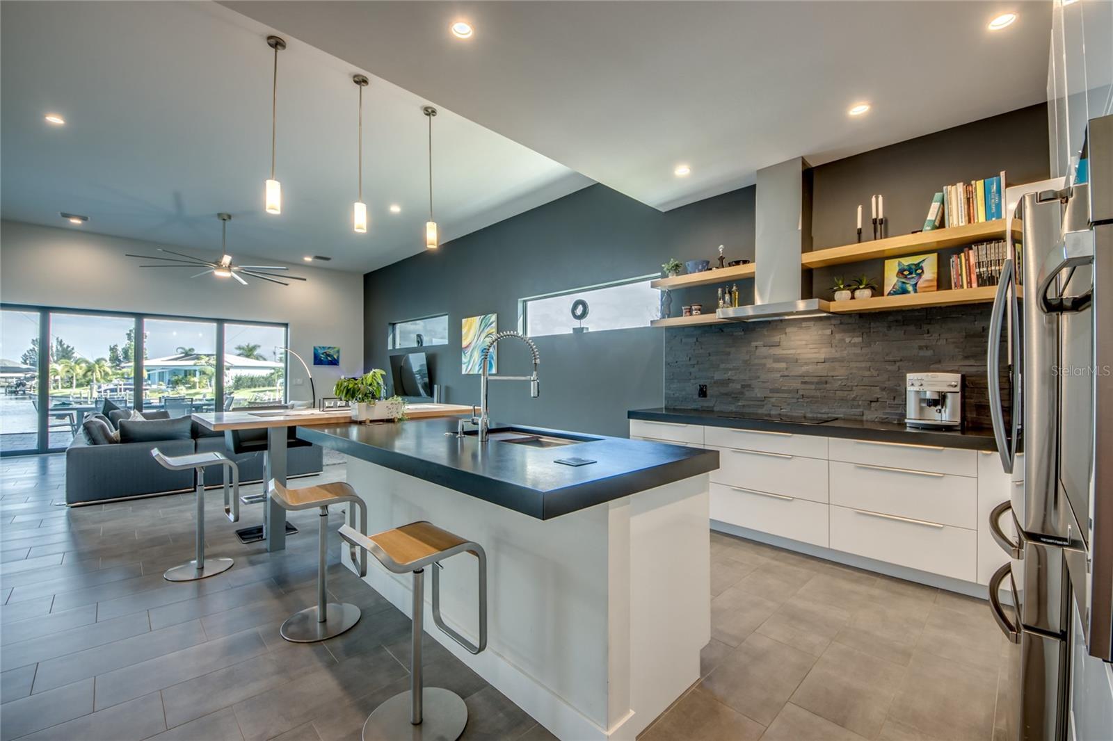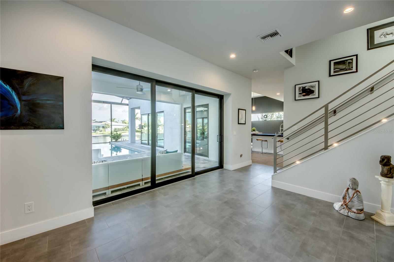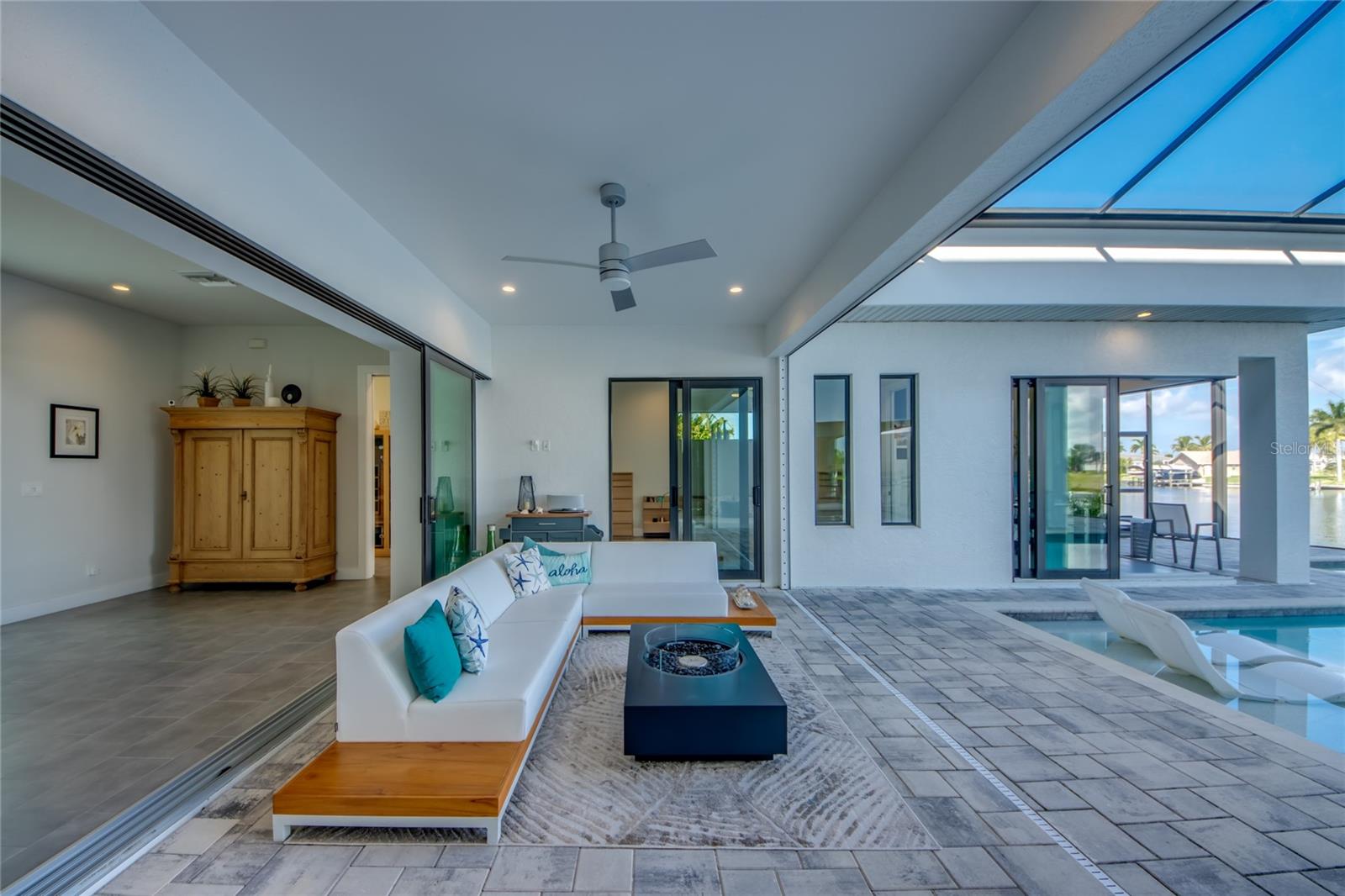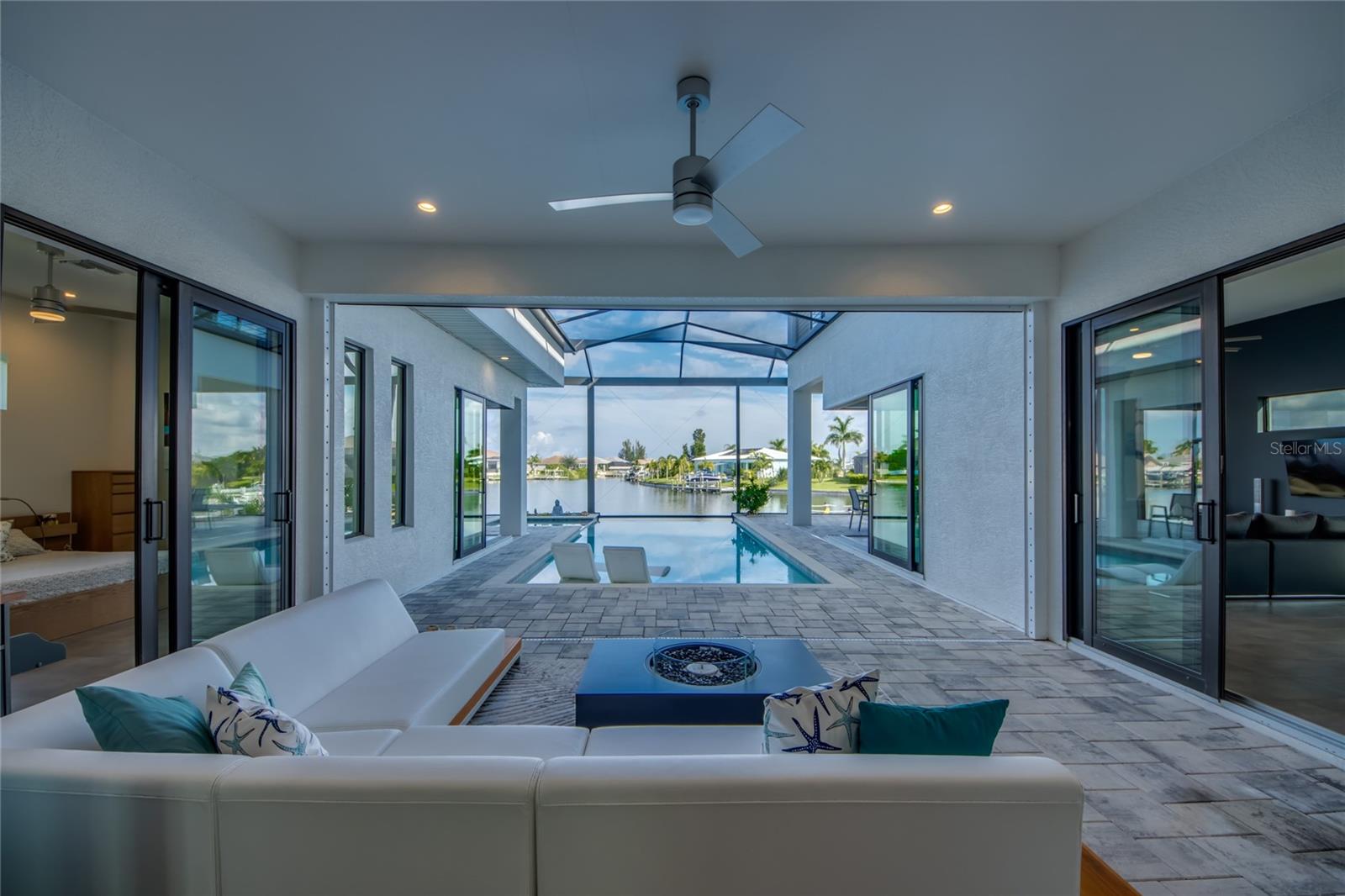 This dream home is on a breathtaking intersecting canal with the most amazing views and fantastic boat access! Every inch of the home has been thoughtfully planned out to enjoy your days and nights in paradise. Imagine hopping on your boat or kayak and passing dolphins and manatee and heading out to one of the local island restaurants on the warm Gulf waters! This Beautiful 2 story newer home on oversized private lot in desirable area of NW Cape Coral offers that and so much more. How does not having an electric bill sound? Home has paid for solar panels that cover those costs. This adds up to HUGE savings! Located in desirable NW Cape Coral with many exciting projects and growth planned the value in this area will continue to appreciate. The home itself boasts every upgrade you can imagine; from the chef's gourmet kitchen, large heated infinity style pool and spa, boat lift and dock, full outdoor kitchen, contemporary finishes and top level tile and finishes to the impact windows and doors. Step into your first floor master bedroom with office/den attached or expand this area for huge first floor bedroom suite with gorgeous views of the pool and water. The kitchen area with tons of causal island seating opens to the large living area, which of course also faces the water for the most breathtaking views. The Convenient half bath and spacious pantry land laundry room are located adjacent to the kitchen area. There are two large guest bedrooms -one with balcony- and a full guest bath upstairs. Your backyard has been thoughtfully laid out with many areas to relax and enjoy the breathtaking sunrise and sunset views from either sider of the home. Many native plants for a low maintenance yet impressive landscape complete the year round vacation vibe. This home will indeed make all your SWFL living dreams come true! Be sure to "tour" the home via the 3D tour as well!