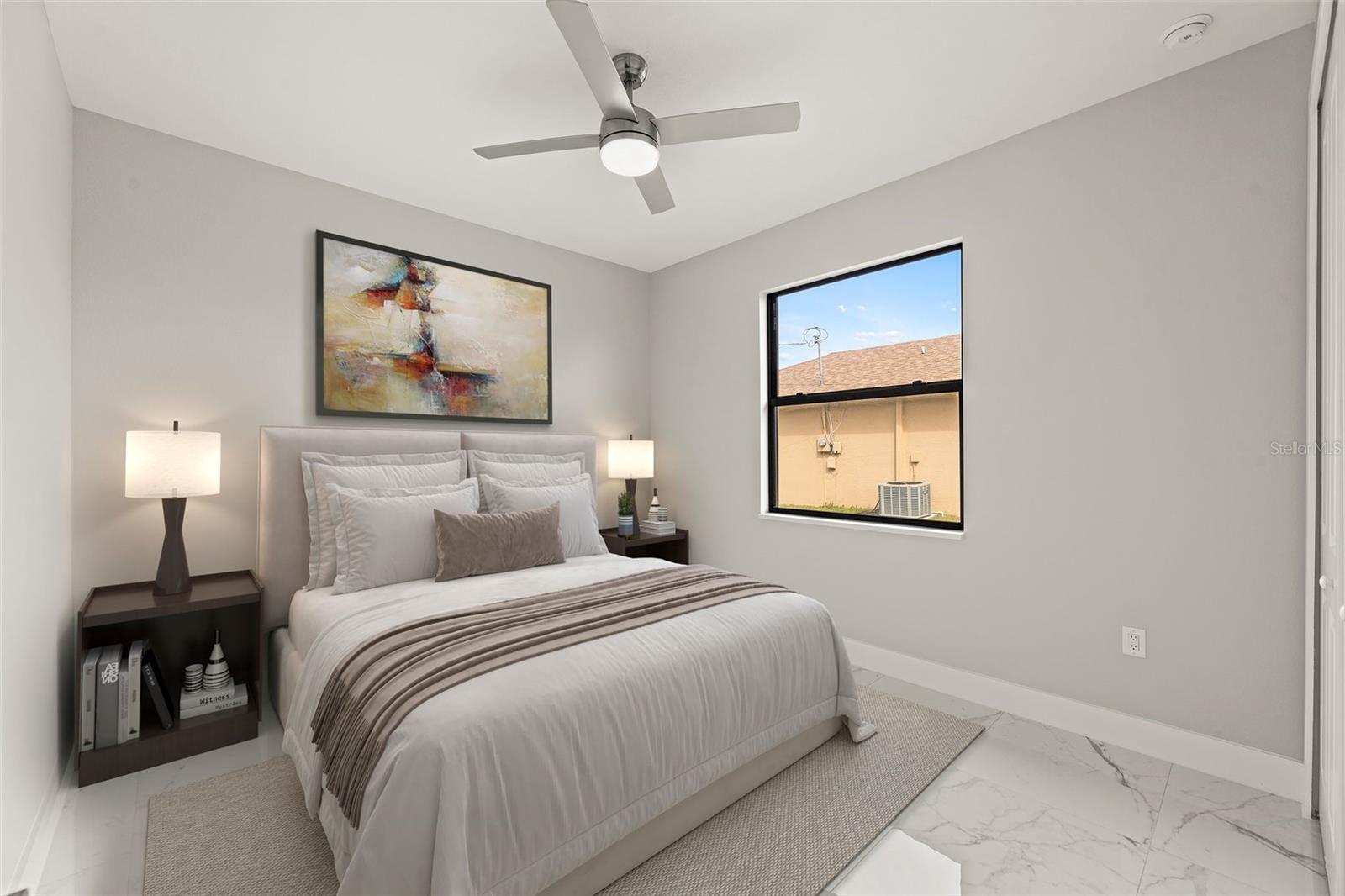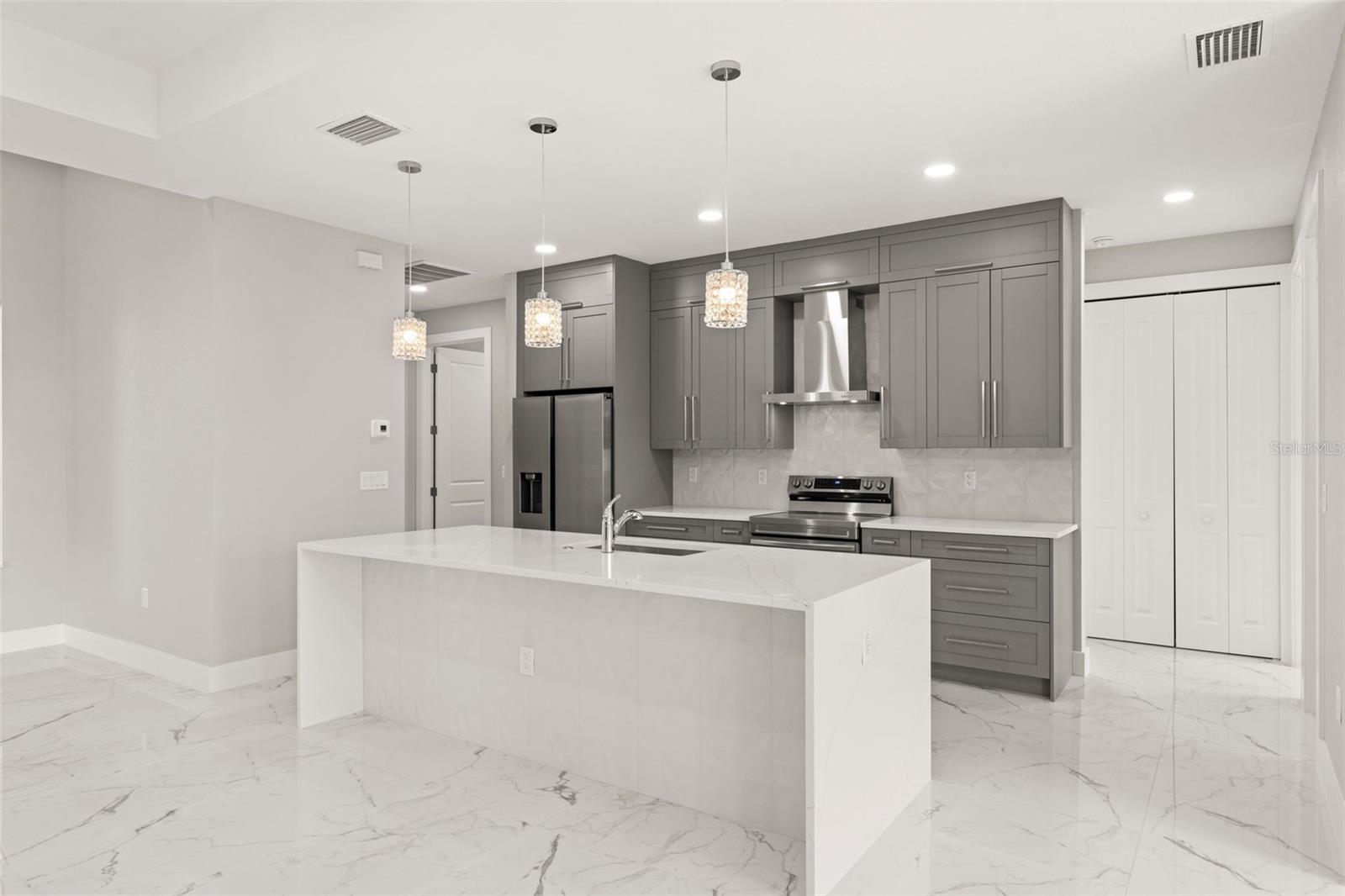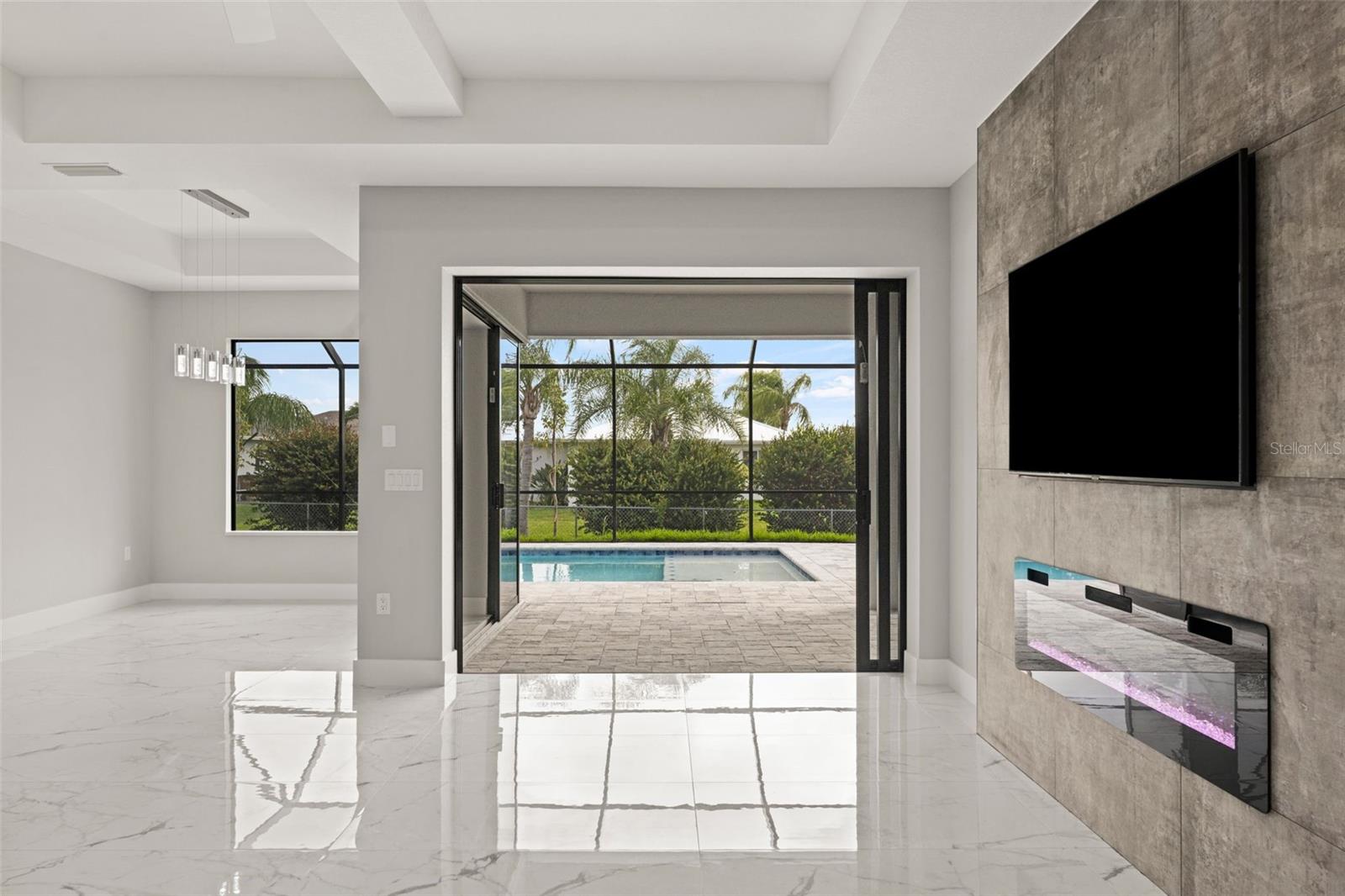 One or more photo(s) has been virtually staged. Ready to make this home yours? This is the Oasis Model, this NEW CONSTRUCTION home features 3 Bedrooms – the primary being on the opposite side with plenty of privacy. The primary bedroom has room for a king bed and much more, offering two large walk-in closets along with dual sinks, a beautiful freestanding tub with an elegant backsplash and a creative shower layout directly behind. There is a full-size pool bath with a standup shower and beautiful tile from top to bottom. The living room has 10ft coffered ceilings along with a custom built in TV enclosure with tile from top to bottom including an electric fireplace and a large smart TV (The enclosure can accommodate larger sizes). The entryway has 14ft cascading ceilings along with three large windows to offer plenty of natural light throughout the day. Overlooking the living room is the large waterfall kitchen island with quartz countertops and extra seating. The kitchen features tall cabinets with soft close drawers and stainless-steel appliances. There is a walk-in pantry and directly across a large laundry room. The dining room has a large window and sliding doors leading out to the lanai, a relaxing view of the pool! This open floorplan has been very popular, offering plenty of entertainment space and convenience. This home has beautiful porcelain tile flooring spread throughout the entire home. The total living area is 2,000 square feet. Love swimming? You’ll love this pool (13x26) in the large enclosed lanai with beautiful pavers and a large sitting and soaking area. There is an outdoor grill station with a small fridge, you’ll want to spend all of your free time outside. This home has hurricane impact windows and doors and has city water and sewer, all assessments are paid. Conveniently located...a short drive, paddle or walk to The Shops at Surfside. Schedule a tour today, this home is 100% Completed and waiting for its first owner. There no HOA's and no lease restrictions.