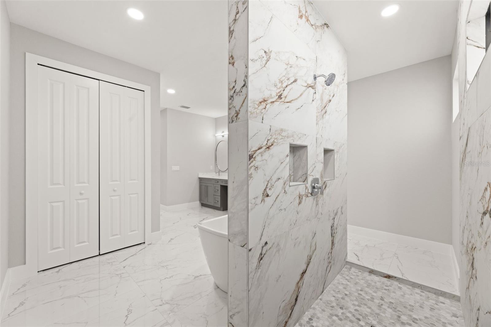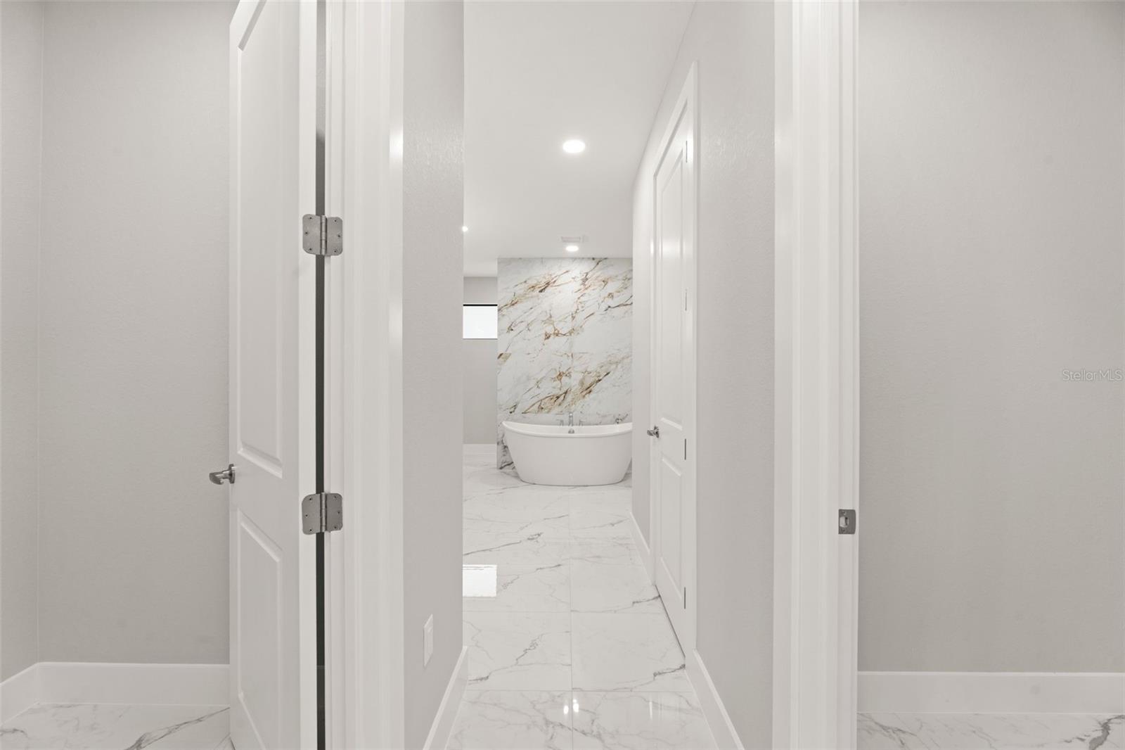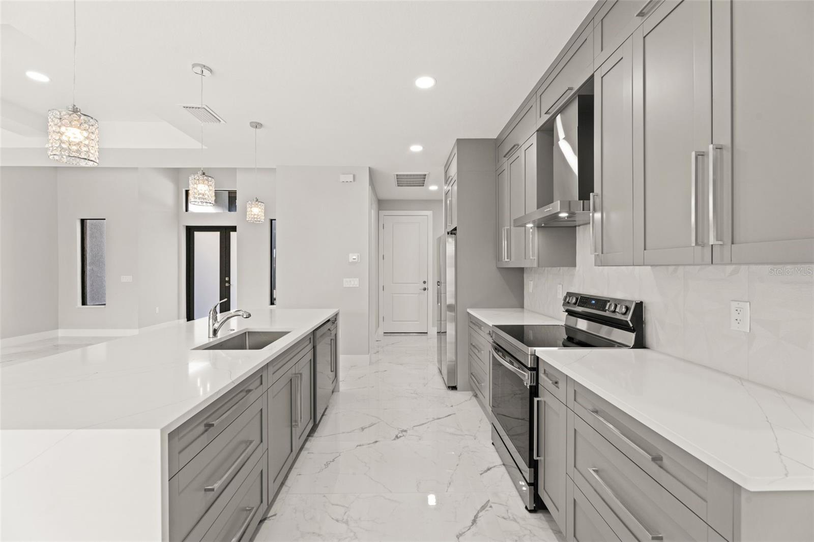 One or more photo(s) has been virtually staged. Ready to make this home yours? This is the Oasis Model, this NEW CONSTRUCTION home features 3 Bedrooms – the primary being on the opposite side with plenty of privacy. The primary bedroom has room for a king bed and much more, offering two large walk-in closets along with dual sinks, a beautiful freestanding tub with an elegant backsplash and a creative shower layout directly behind. There is a full-size pool bath with a standup shower and beautiful tile from top to bottom. The living room has 10ft coffered ceilings along with a custom built in TV enclosure with tile from top to bottom including an electric fireplace and a large smart TV (The enclosure can accommodate larger sizes). The entryway has 14ft cascading ceilings along with three large windows to offer plenty of natural light throughout the day. Overlooking the living room is the large waterfall kitchen island with quartz countertops and extra seating. The kitchen features tall cabinets with soft close drawers and stainless-steel appliances. There is a walk-in pantry and directly across a large laundry room. The dining room has a large window and sliding doors leading out to the lanai, a relaxing view of the pool! This open floorplan has been very popular, offering plenty of entertainment space and convenience. This home has beautiful porcelain tile flooring spread throughout the entire home. The total living area is 2,000 square feet. Love swimming? You’ll love this pool (13x26) in the large enclosed lanai with beautiful pavers and a large sitting and soaking area. There is an outdoor grill station with a small fridge, you’ll want to spend all of your free time outside. This home has hurricane impact windows and doors and has city water and sewer, all assessments are paid. Conveniently located...a short drive, paddle or walk to The Shops at Surfside. Schedule a tour today, this home is 100% Completed and waiting for its first owner. There no HOA's and no lease restrictions.
