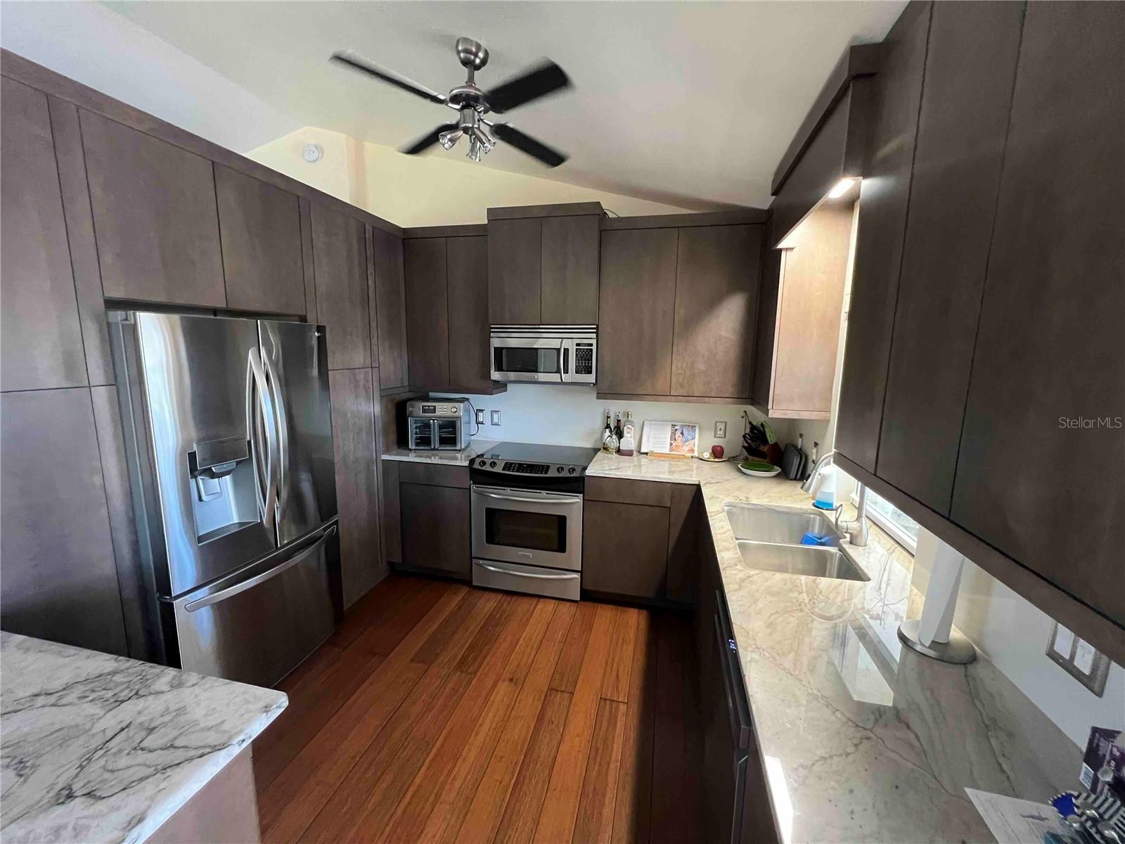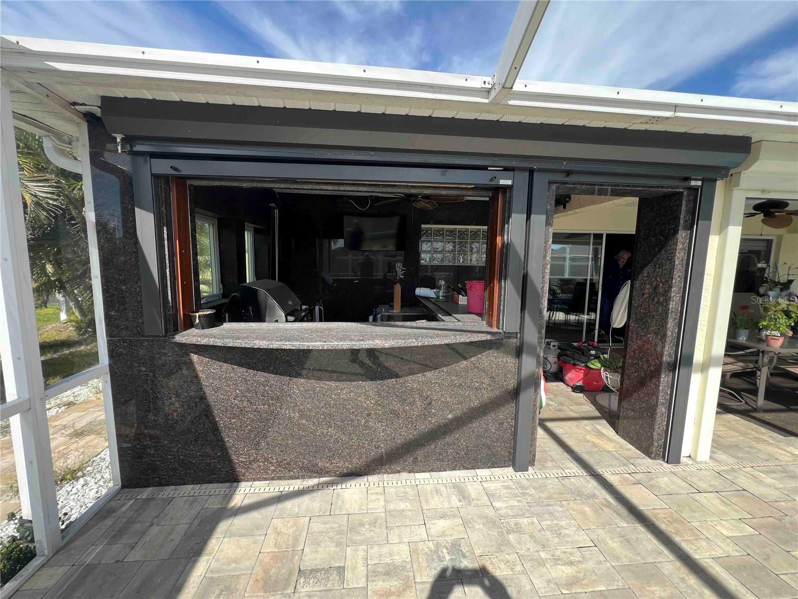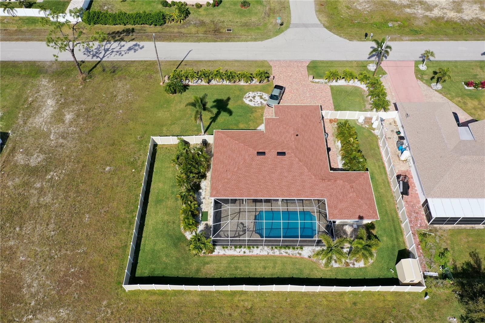 This stunning single-family home boasts 3 bedrooms, 2 bathrooms, and a 2-car garage, providing ample space for you and your family. The in-ground "heated" pool is perfect for relaxing, while the custom outdoor kitchen is ideal for hosting barbecues and entertaining guests. Inside you'll find a kaleidoscope of features including a craftsman's touch of granite counters, stainless steel appliances, custom built-in cabinets, and a Murphy bed in the second bedroom. Additionally, the wood flooring and wine cooler add a touch of elegance, while the lush landscape and highly coveted triple palms (12) surrounding the property create a tropical bliss. The double lot offers plenty of room for outdoor activities and expansion possibilities and a shed. Attached to the lanai, you'll find an additional building that can be used as a den, fitness room, guest room, or anything you choose to make it. For peace of mind and safety, the home features Kevlar roll-down hurricane screens in the lanai, propane tanks, a whole-house Generac generator, and an RO system. The buyer will be comforted to know that there was NO sustained storm damage to the home, however, the privacy vinyl fence did lose some panels from the wind and will be replaced by the sellers before closing. Whether you're looking to relax by the pool, work from home in style, or entertain friends and family, this home has it all. Don't miss the opportunity to make this your forever home in Cape Coral!