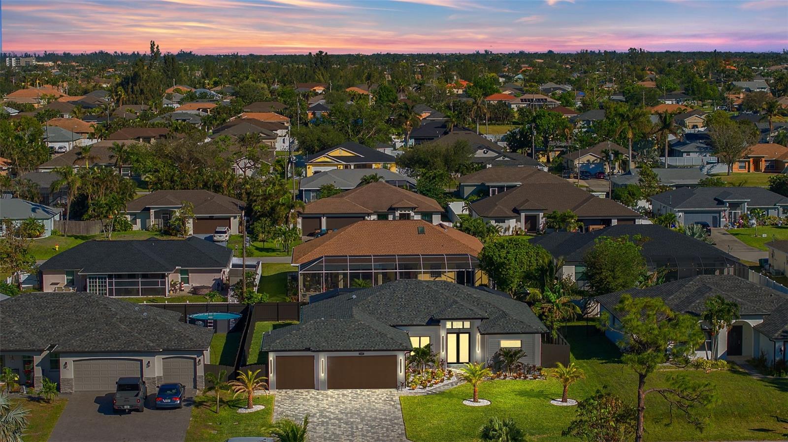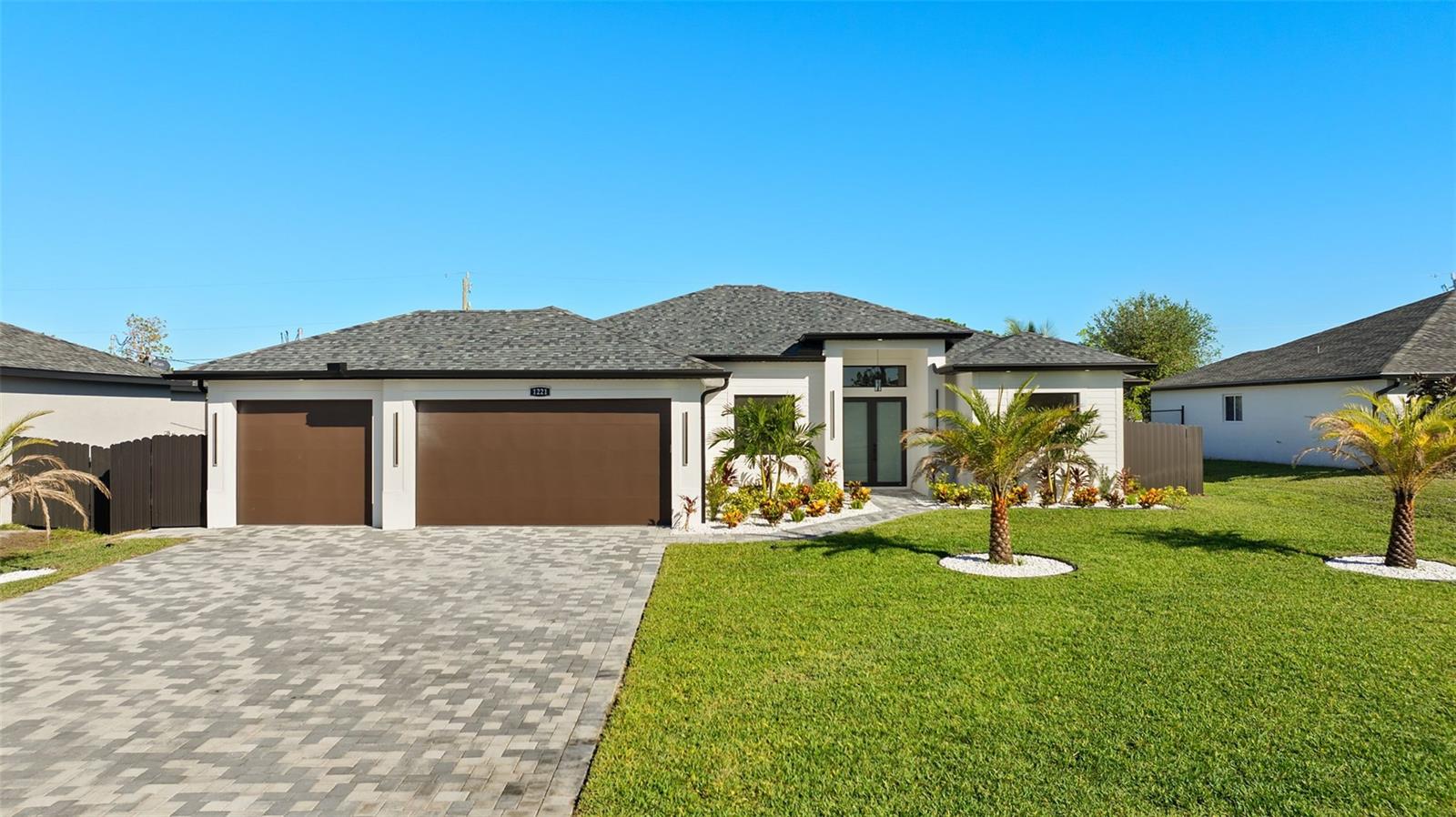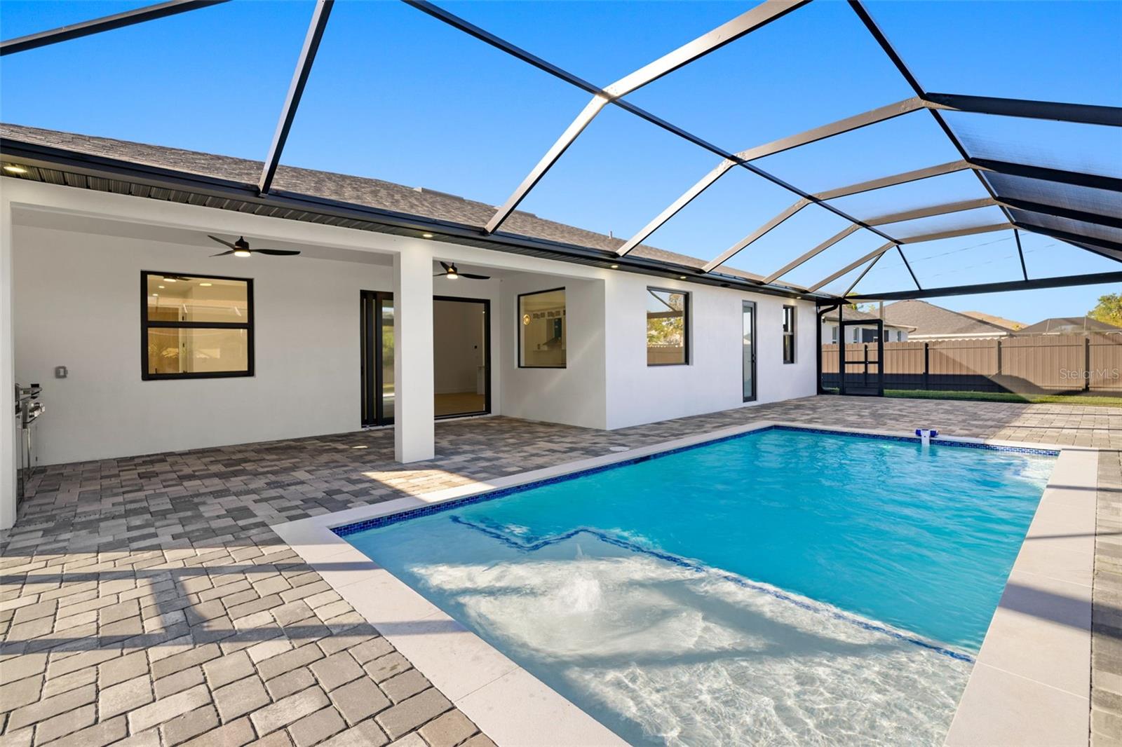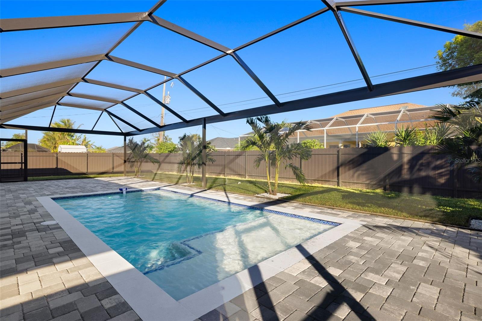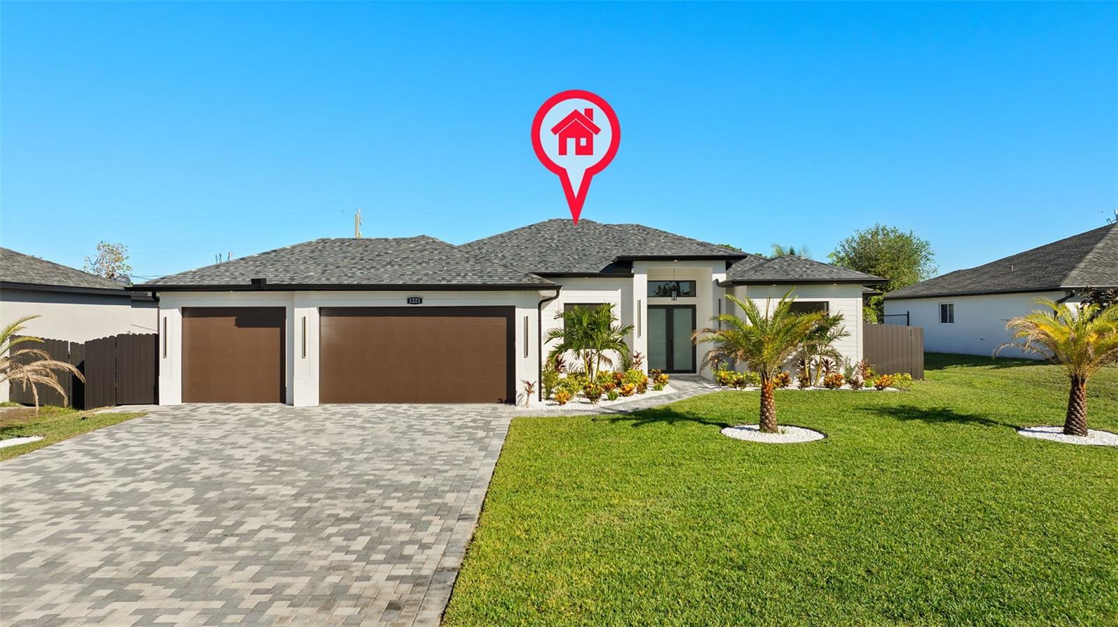 One or more photo(s) has been virtually staged. New Construction Pool Home Built by Pelican Vista Homes! This stunning 4-bedroom, 3-bathroom home with a 3-car garage is located in the highly desirable SW Cape Coral area and is truly one of a kind. Thoughtfully designed and custom-built with meticulous attention to detail, this home features luxurious upgrades throughout and showcases exceptional craftsmanship. Step into the open living space with soaring tray ceilings and a breathtaking view of the sparkling pool through the expansive sliding glass doors. The entertainer’s kitchen is a masterpiece, featuring a large quartz island with waterfall edges, 42” white cabinetry topped with 15” glass-front display cabinets for a modern and elegant touch, and plenty of storage. The kitchen is outfitted with a premium LG appliance package, hidden outlets with phone chargers, and chic pendant lighting, making it as functional as it is beautiful. The master suite is a private retreat, boasting tray ceilings, a transom window for natural light and privacy, and a custom-built walk-in closet. The master bathroom is like stepping into a 5-star hotel, complete with His & Her vanities, black hardware, a stylish soaking tub, a wood-tile feature wall, and a luxurious walk-through shower with dual wash areas. All the bedrooms are generously sized, perfect for family and guests, and the spare bathrooms offer designer touches, including backlit mirrors and LED under-lighting in the showers. The laundry room is as practical as it is stylish, featuring cabinetry, a sink, and quartz countertops. The outdoor space is an entertainer’s dream! Enjoy Florida’s sunshine by your private pool, complete with a sunshelf and a picture-window pool cage, or relax on the expansive brick-paver deck. The fully stocked outdoor kitchen features a sink, drop-in grill, fridge, and plenty of counter space, all under a spacious lanai area that’s perfect for entertaining, watching TV, or enjoying quality time with loved ones. The beautifully landscaped, fully fenced backyard provides privacy and a lush backdrop to this tropical oasis. Buy with Confidence! This home features hurricane impact windows and doors and is built to the latest building codes and standards. Located near top-rated schools, shopping, dining, and some of Cape Coral’s most exciting new developments like the Yacht Club, Bimini Square, The Cove, and Slipaway, this home offers the perfect combination of luxury, convenience, and lifestyle. Don’t miss this opportunity to own a one-of-a-kind home by Pelican Vista Homes! Schedule your private tour today.