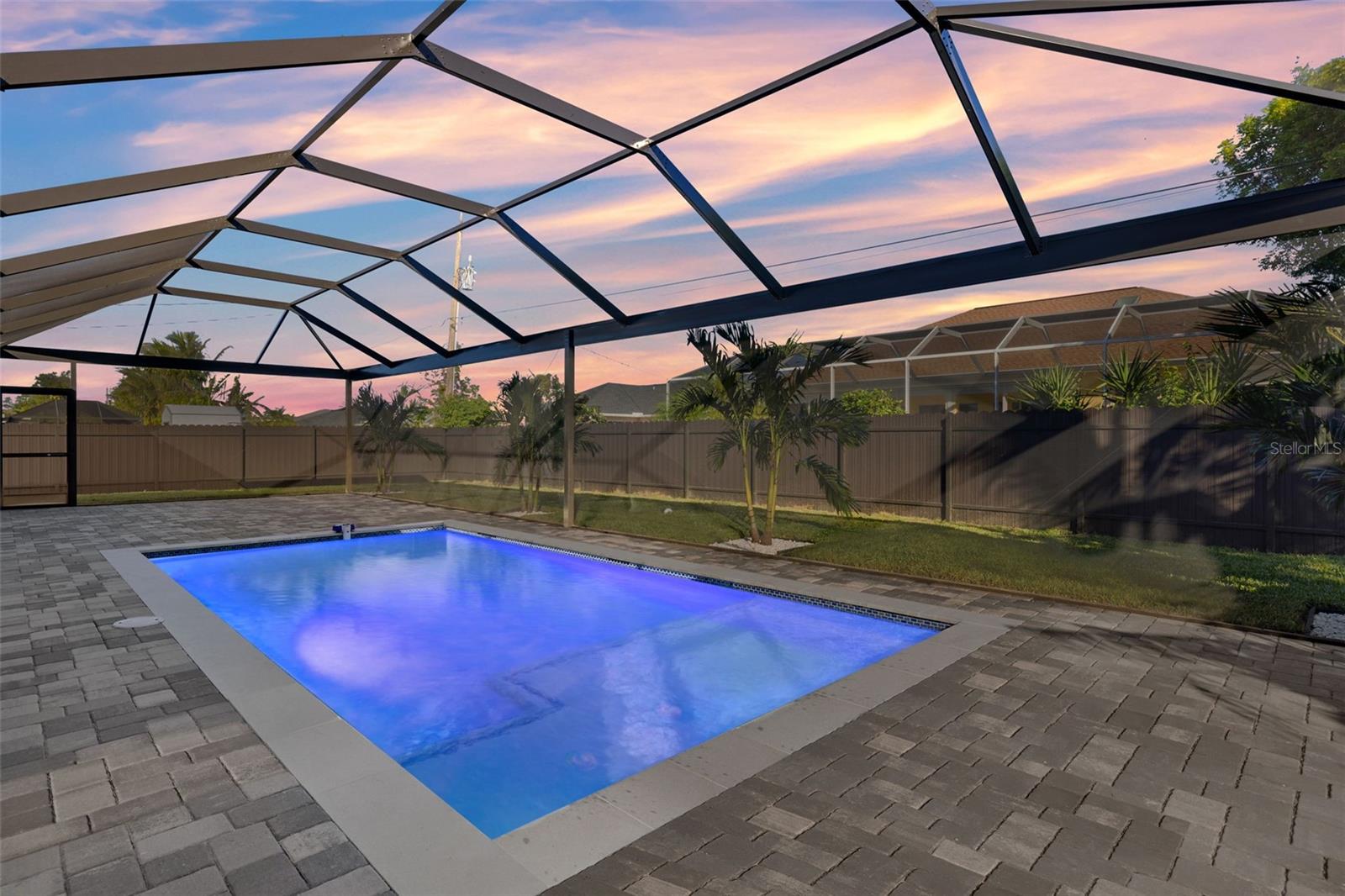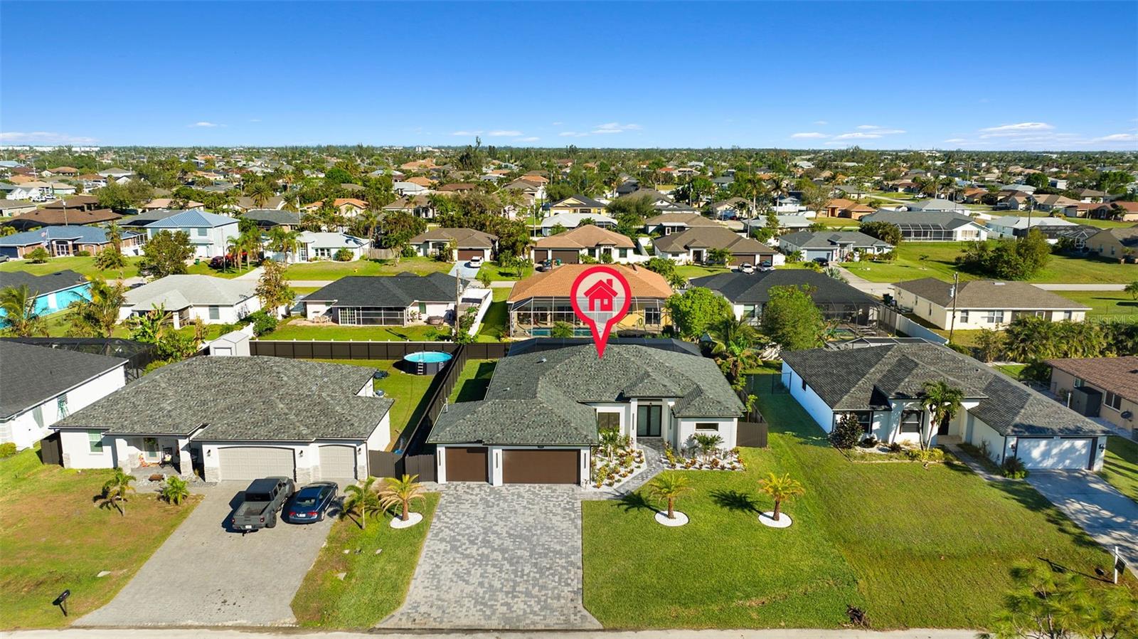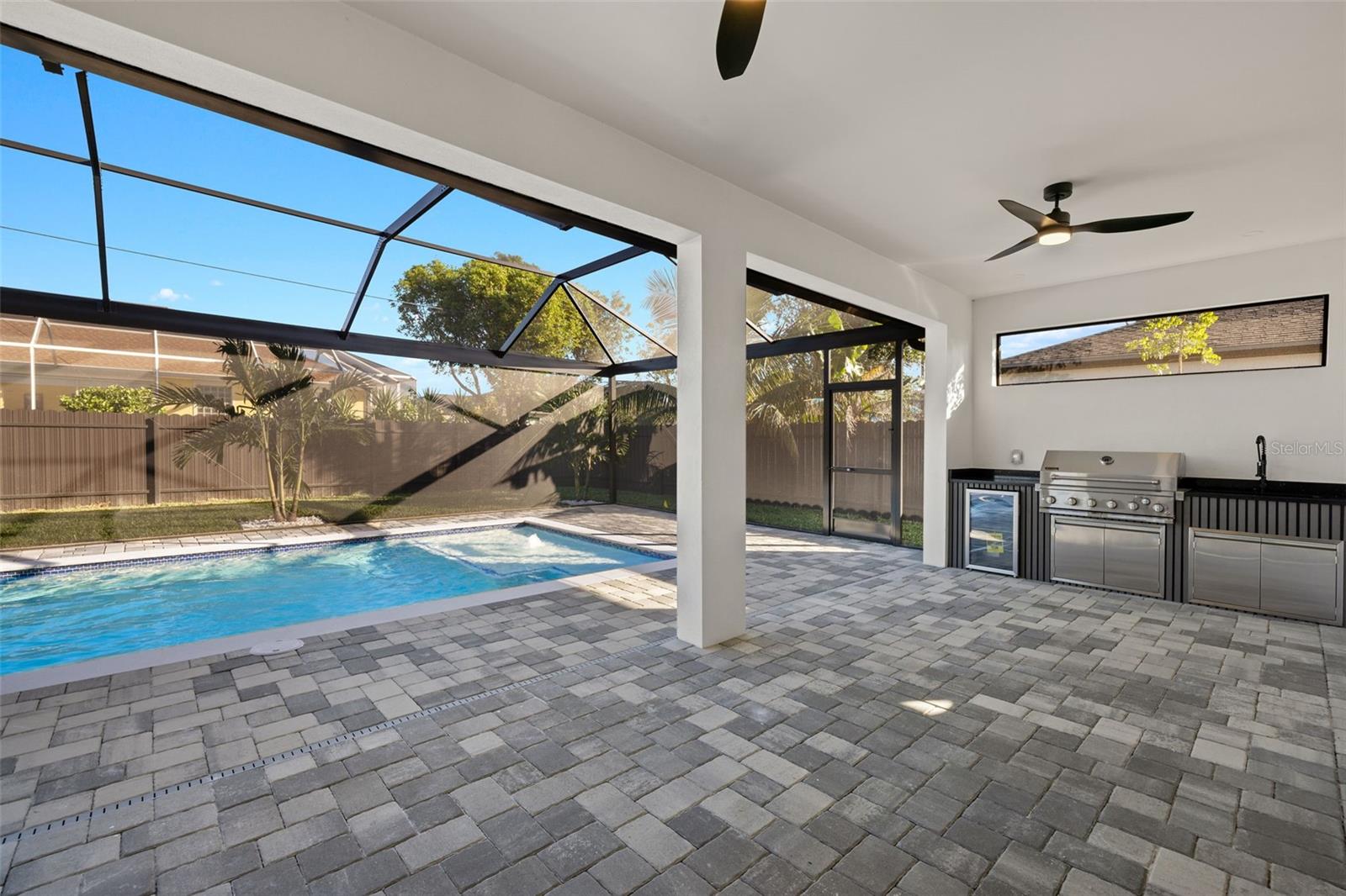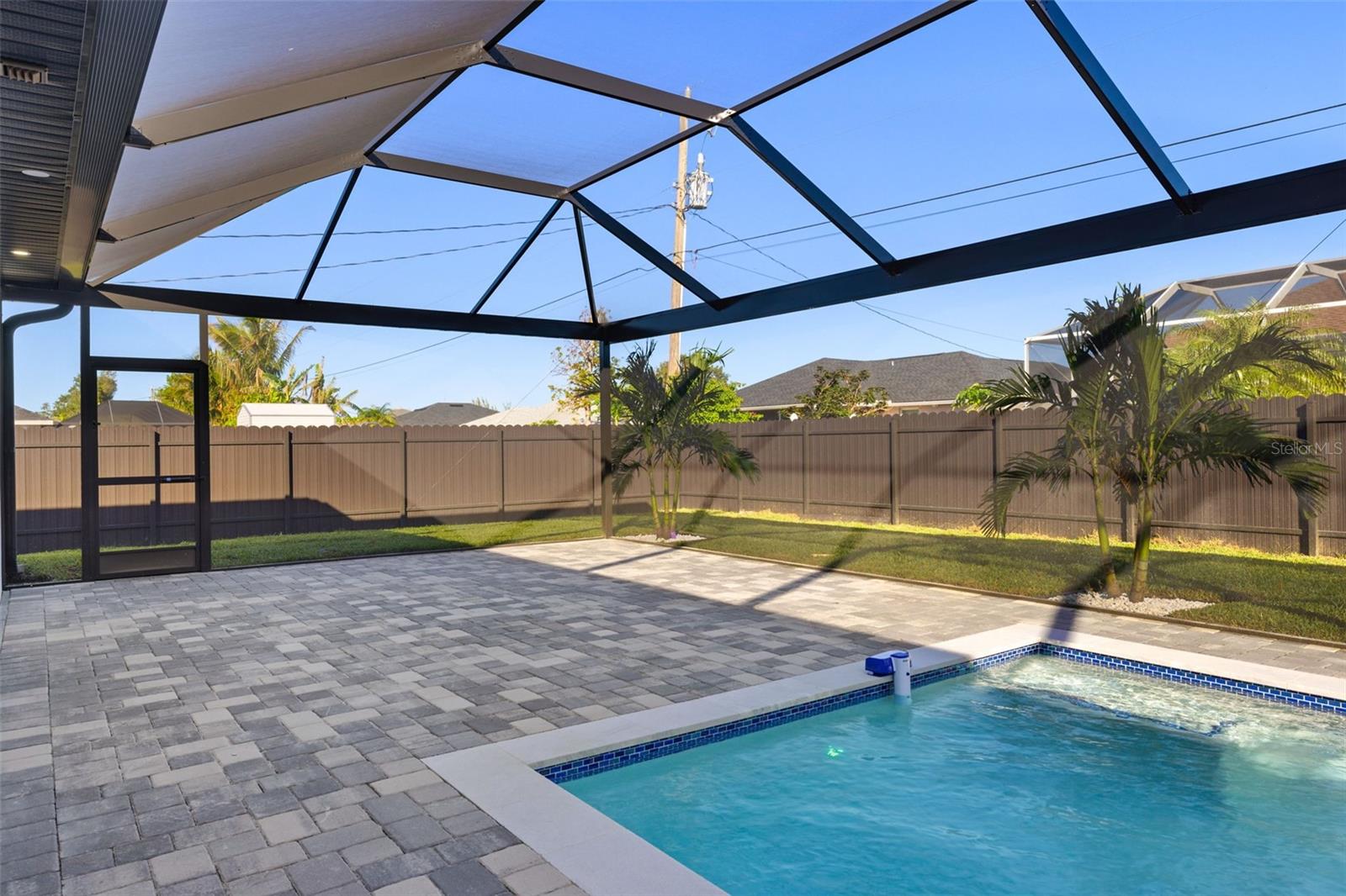 One or more photo(s) has been virtually staged. New Construction Pool Home Built by Pelican Vista Homes! This stunning 4-bedroom, 3-bathroom home with a 3-car garage is located in the highly desirable SW Cape Coral area and is truly one of a kind. Thoughtfully designed and custom-built with meticulous attention to detail, this home features luxurious upgrades throughout and showcases exceptional craftsmanship. Step into the open living space with soaring tray ceilings and a breathtaking view of the sparkling pool through the expansive sliding glass doors. The entertainer’s kitchen is a masterpiece, featuring a large quartz island with waterfall edges, 42” white cabinetry topped with 15” glass-front display cabinets for a modern and elegant touch, and plenty of storage. The kitchen is outfitted with a premium LG appliance package, hidden outlets with phone chargers, and chic pendant lighting, making it as functional as it is beautiful. The master suite is a private retreat, boasting tray ceilings, a transom window for natural light and privacy, and a custom-built walk-in closet. The master bathroom is like stepping into a 5-star hotel, complete with His & Her vanities, black hardware, a stylish soaking tub, a wood-tile feature wall, and a luxurious walk-through shower with dual wash areas. All the bedrooms are generously sized, perfect for family and guests, and the spare bathrooms offer designer touches, including backlit mirrors and LED under-lighting in the showers. The laundry room is as practical as it is stylish, featuring cabinetry, a sink, and quartz countertops. The outdoor space is an entertainer’s dream! Enjoy Florida’s sunshine by your private pool, complete with a sunshelf and a picture-window pool cage, or relax on the expansive brick-paver deck. The fully stocked outdoor kitchen features a sink, drop-in grill, fridge, and plenty of counter space, all under a spacious lanai area that’s perfect for entertaining, watching TV, or enjoying quality time with loved ones. The beautifully landscaped, fully fenced backyard provides privacy and a lush backdrop to this tropical oasis. Buy with Confidence! This home features hurricane impact windows and doors and is built to the latest building codes and standards. Located near top-rated schools, shopping, dining, and some of Cape Coral’s most exciting new developments like the Yacht Club, Bimini Square, The Cove, and Slipaway, this home offers the perfect combination of luxury, convenience, and lifestyle. Don’t miss this opportunity to own a one-of-a-kind home by Pelican Vista Homes! Schedule your private tour today.