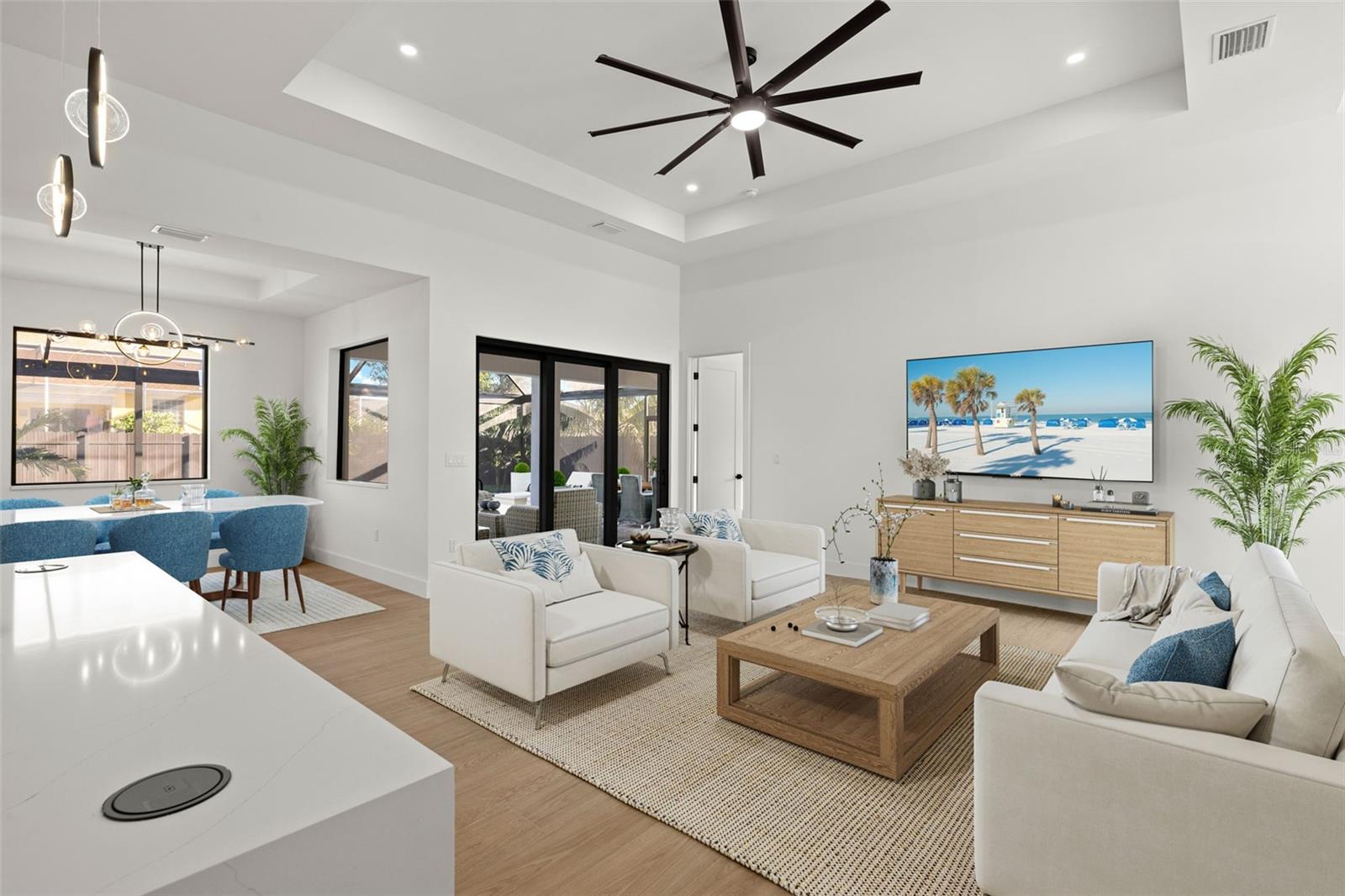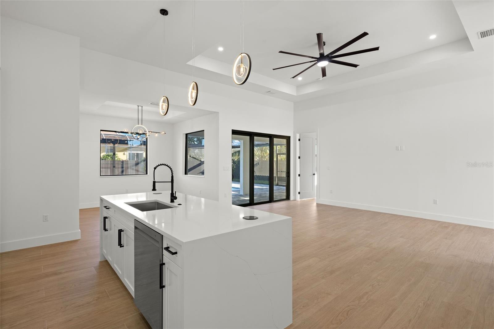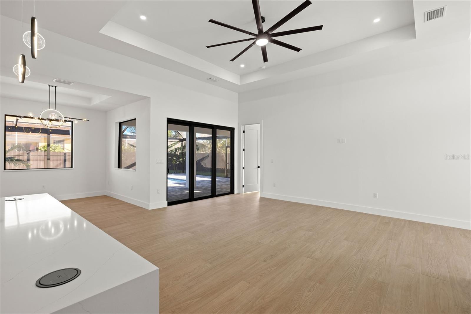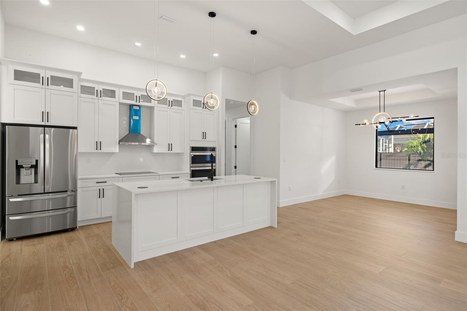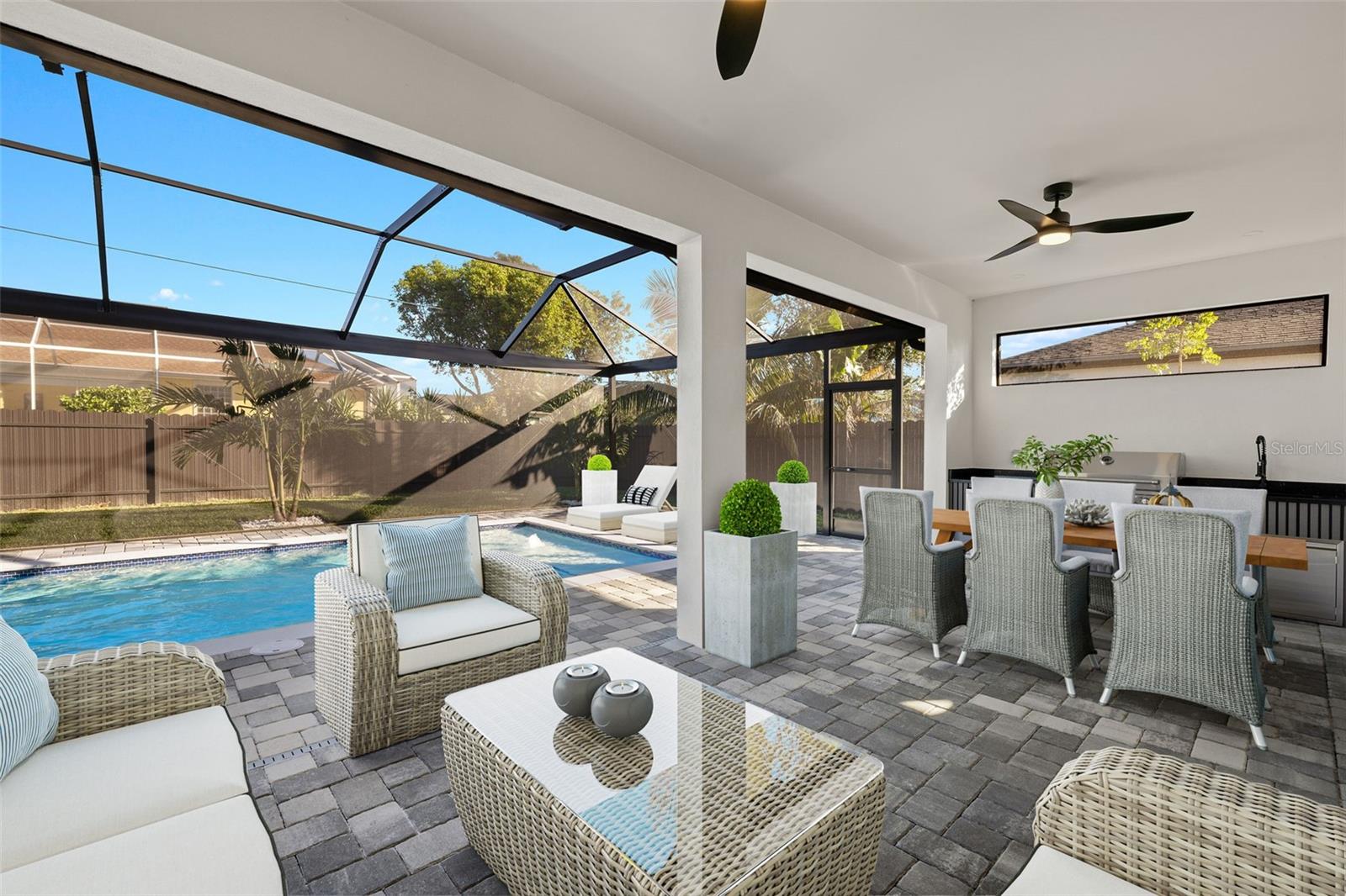 One or more photo(s) has been virtually staged. New Construction Pool Home Built by Pelican Vista Homes! This stunning 4-bedroom, 3-bathroom home with a 3-car garage is located in the highly desirable SW Cape Coral area and is truly one of a kind. Thoughtfully designed and custom-built with meticulous attention to detail, this home features luxurious upgrades throughout and showcases exceptional craftsmanship. Step into the open living space with soaring tray ceilings and a breathtaking view of the sparkling pool through the expansive sliding glass doors. The entertainer’s kitchen is a masterpiece, featuring a large quartz island with waterfall edges, 42” white cabinetry topped with 15” glass-front display cabinets for a modern and elegant touch, and plenty of storage. The kitchen is outfitted with a premium LG appliance package, hidden outlets with phone chargers, and chic pendant lighting, making it as functional as it is beautiful. The master suite is a private retreat, boasting tray ceilings, a transom window for natural light and privacy, and a custom-built walk-in closet. The master bathroom is like stepping into a 5-star hotel, complete with His & Her vanities, black hardware, a stylish soaking tub, a wood-tile feature wall, and a luxurious walk-through shower with dual wash areas. All the bedrooms are generously sized, perfect for family and guests, and the spare bathrooms offer designer touches, including backlit mirrors and LED under-lighting in the showers. The laundry room is as practical as it is stylish, featuring cabinetry, a sink, and quartz countertops. The outdoor space is an entertainer’s dream! Enjoy Florida’s sunshine by your private pool, complete with a sunshelf and a picture-window pool cage, or relax on the expansive brick-paver deck. The fully stocked outdoor kitchen features a sink, drop-in grill, fridge, and plenty of counter space, all under a spacious lanai area that’s perfect for entertaining, watching TV, or enjoying quality time with loved ones. The beautifully landscaped, fully fenced backyard provides privacy and a lush backdrop to this tropical oasis. Buy with Confidence! This home features hurricane impact windows and doors and is built to the latest building codes and standards. Located near top-rated schools, shopping, dining, and some of Cape Coral’s most exciting new developments like the Yacht Club, Bimini Square, The Cove, and Slipaway, this home offers the perfect combination of luxury, convenience, and lifestyle. Don’t miss this opportunity to own a one-of-a-kind home by Pelican Vista Homes! Schedule your private tour today.