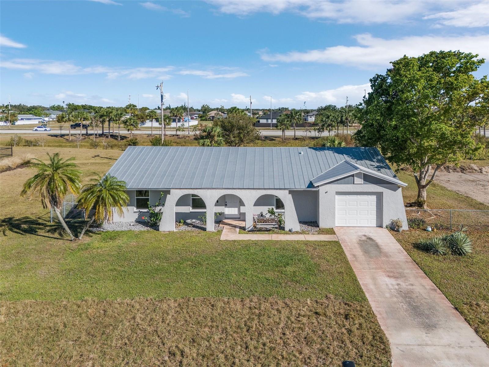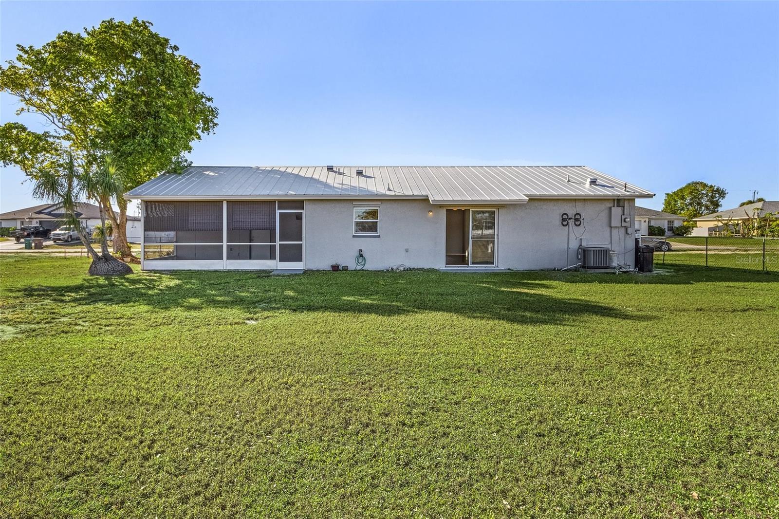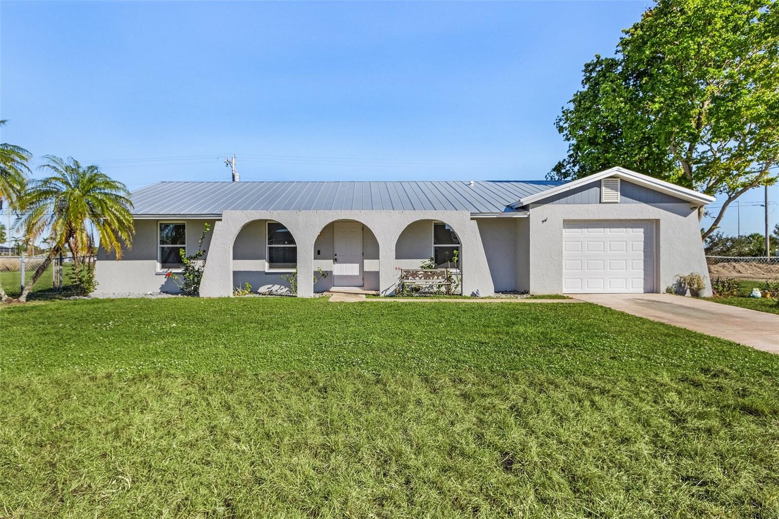 One of the least expensive homes in Cape Coral! This charming single-family home boasts 2 bedrooms, 2 bathrooms, and a 1 car garage, perfect for a small family or couple looking for a cozy space to call their own. The kitchen features beautiful Formica counters and white appliances, creating a modern and sleek look. The new metal roof and newer AC provide peace of mind knowing that your home is well-maintained and ready to withstand the elements. With impact windows and doors, you can rest easy knowing your home is protected during storm season. The great location offers quick access to Del Prado, making it easy to get around town and enjoy all that the area has to offer. City Water and Sewer being installed and almost ready to connect. With a new water heater and no buildings to the left or behind the house, you can enjoy privacy and convenience in this lovely home. Don't miss out on the opportunity to make this house your own and start creating memories that will last a lifetime. Schedule a showing today and see for yourself all that this home has to offer!