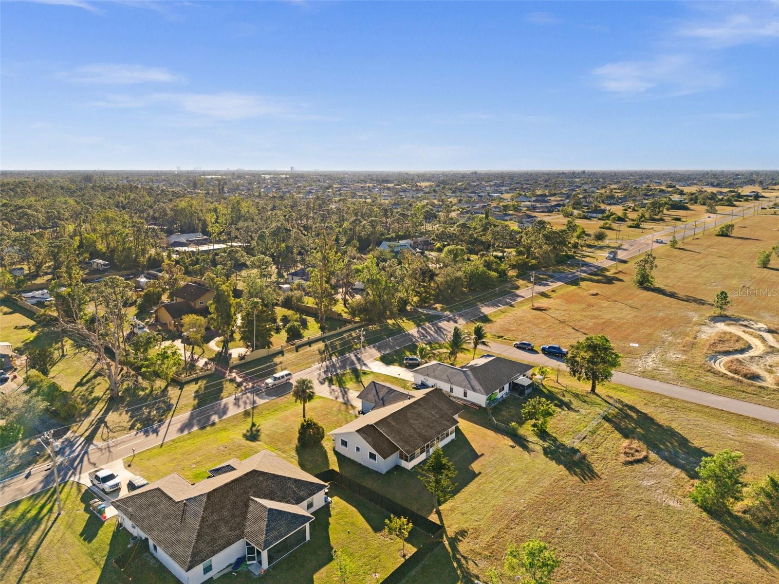 Great location, just at the northern end of Santa Barbara Boulevard, in Cape Coral! Enjoy all the convenience and enjoyment of life in The Cape, while getting away from the crowded downtown areas. This great home sits in a quiet area among single family homes and upscale ranches and horse farms. It's the best of both worlds! New roof after Hurricane Ian, and high quality accordion hurricane shutters and generator will give you peace of mind during storm season. The large yard offers plenty of room for play and entertaining, or even a pool or storage of a boat. No HOA or CDD fees to deal with, either! The three-bedroom, two bath floorplan offers a welcome change from the ordinary, with pitched ceilings and angled walls creating a custom feel, with an open family room and split floorplan. Access your spacious lanai from 3 different rooms which can be used as a closed space, or opened to enjoy the weather. There's a brand new range in the kitchen. There's a large two-car garage offering tons of room for vehicles or workspace, and a large driveway will accommodate several vehicles. You can move right in as-is, or focus on some upgrades and put in your own design touches.