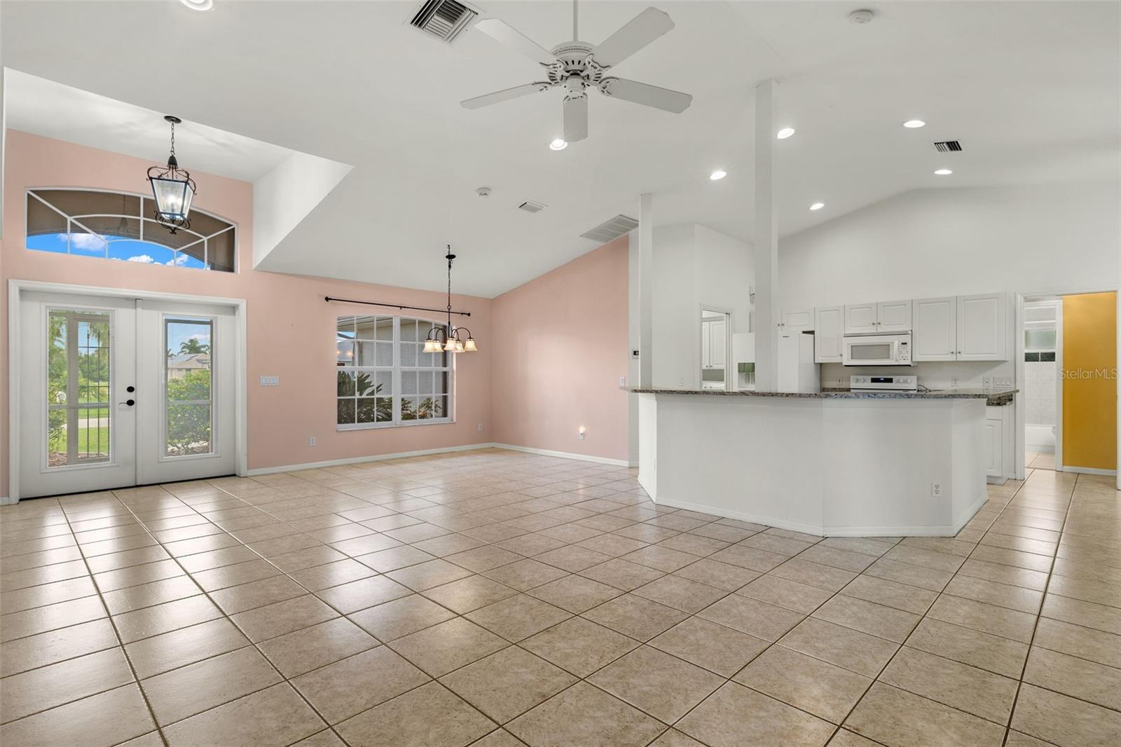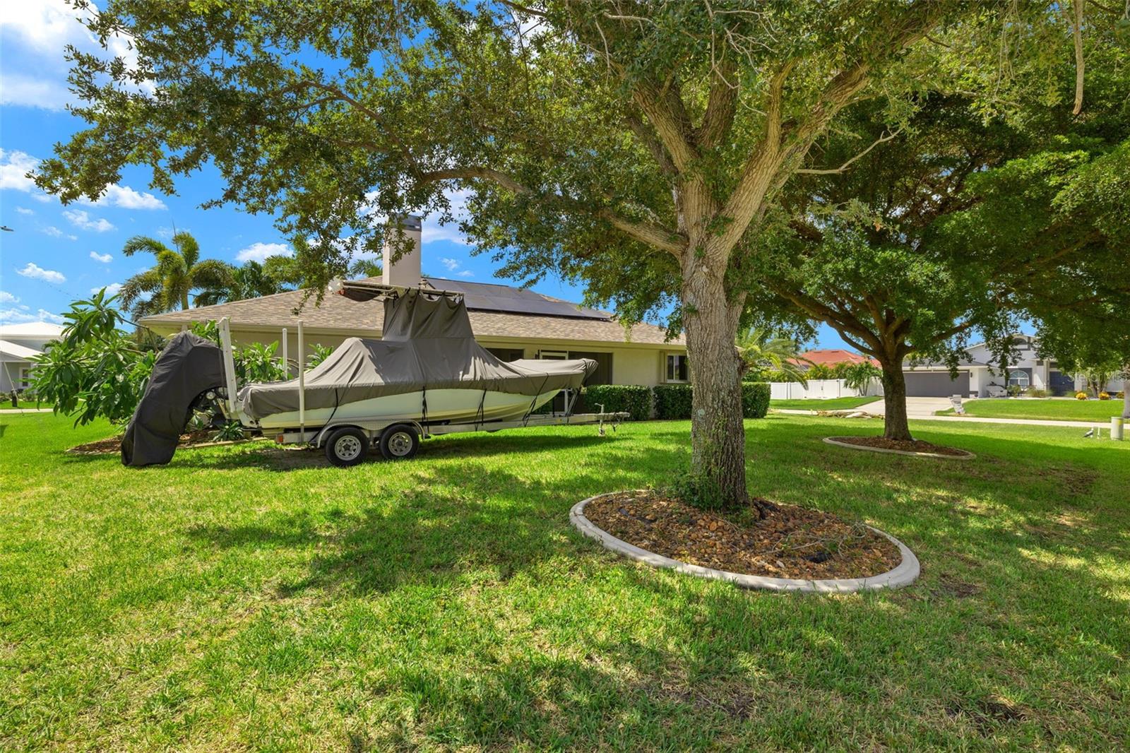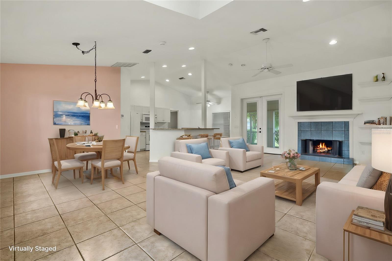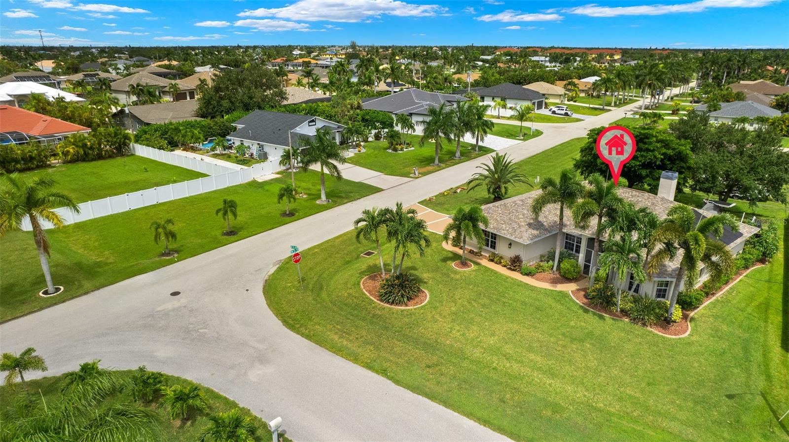 One or more photo(s) has been virtually staged. Solar energized and ready for immediate move in! Located in a lovely SW Cape Coral neighborhood and Situated on a sweeping corner lot with lush, beautiful landscaping. This inviting home is very well maintained and has a whole home solar system for energy efficiency. The screened entryway has a double doors leading you into a great room offering a large living area and formal dining. A wood burning fireplace is a focal point and a cozy spot to enjoy a chilly evening. High vaulted ceilings and tile flooring throughout. The large kitchen has updates to include granite counters, newer appliances plus pull out shelves in the cabinets and a great breakfast bar that joins the dinette area. Split bedrooms giving privacy to your guests with 2 bedrooms and a shared bathroom. A much appreciated office, den or multi use room in the front with lots of natural sunlight coming through the bay window. The Primary bedroom features French doors that lead to the lanai plus an attached bath that includes dual vanities, a large soaking tub and a huge tiled shower, and two walk in closets. A beautiful backyard with a lovely shade tree you can enjoy from the screened lanai. You'll have peace of mind with a newer roof and water heater, Accordion hurricane shutters for every window that have also been updated in recent years. Fresh paint for the driveway, walk, and lanai, epoxy floored garage that has room for storage, new exterior lighting and new sprinklers to keep the yard looking sharp. Keep your electric bill low having the solar for the whole home. This home has so much to offer and you must see it to appreciate it's value. Come take a look today