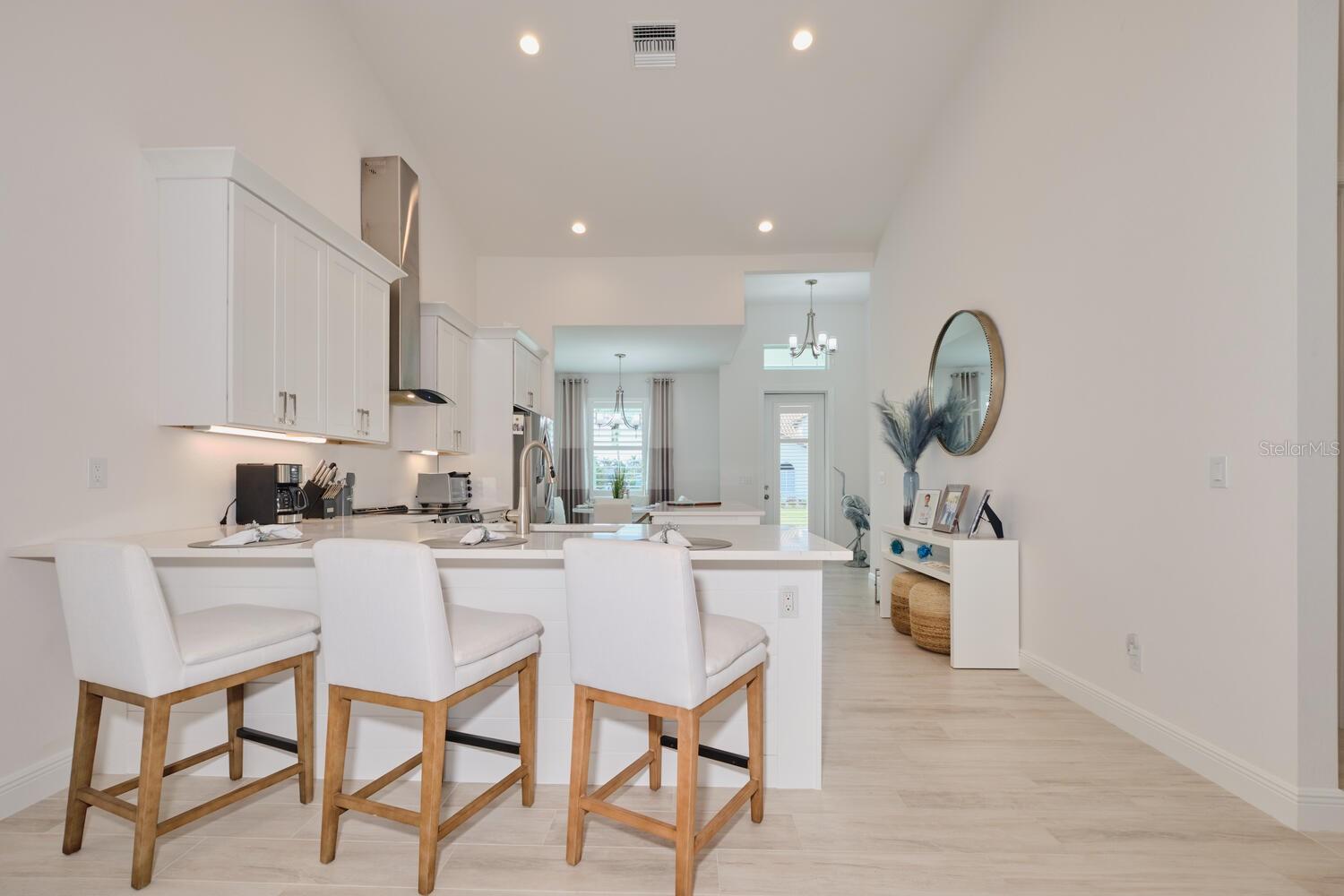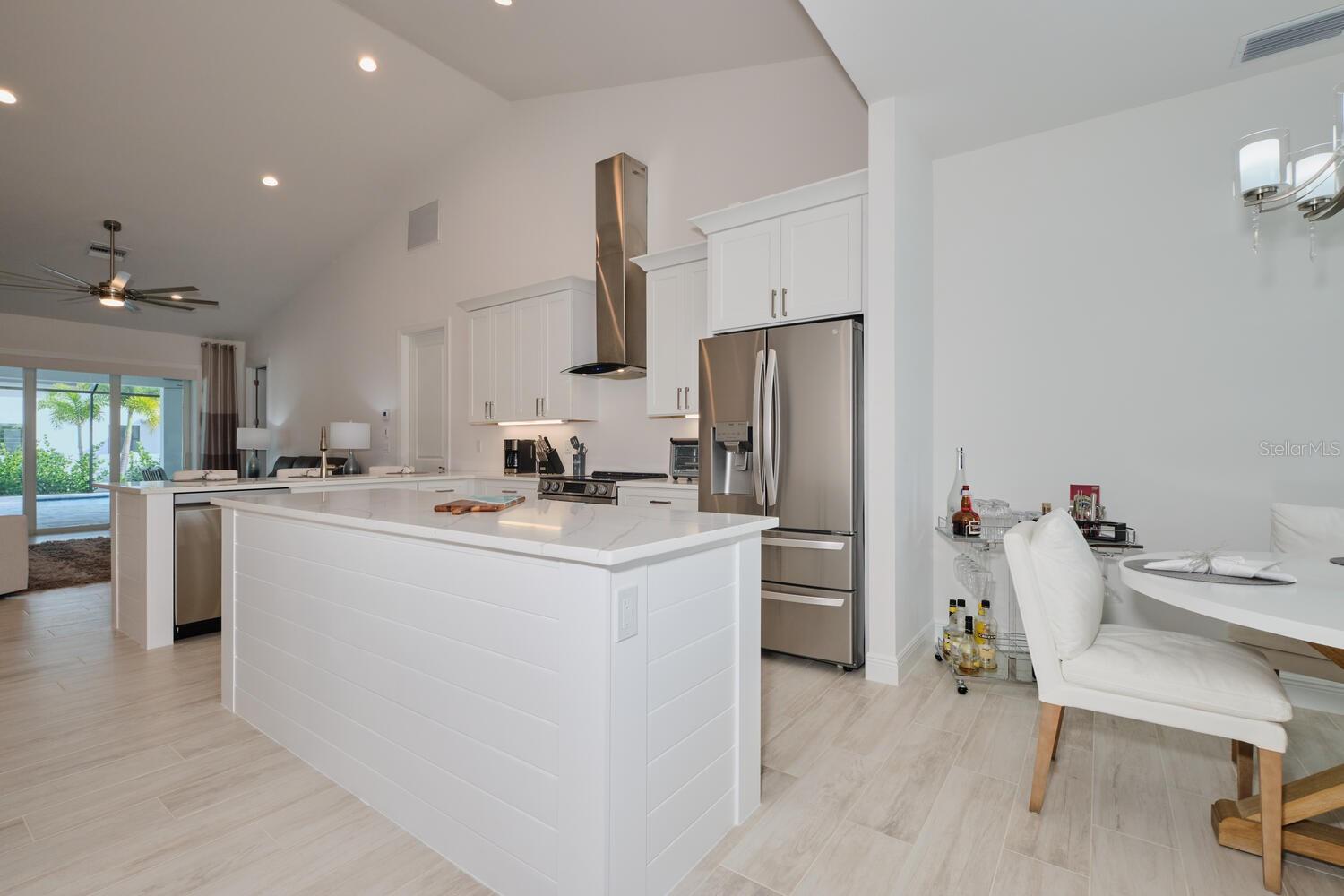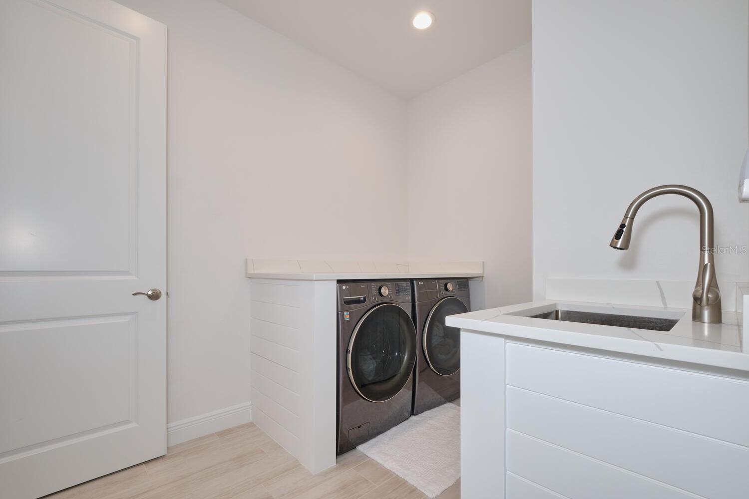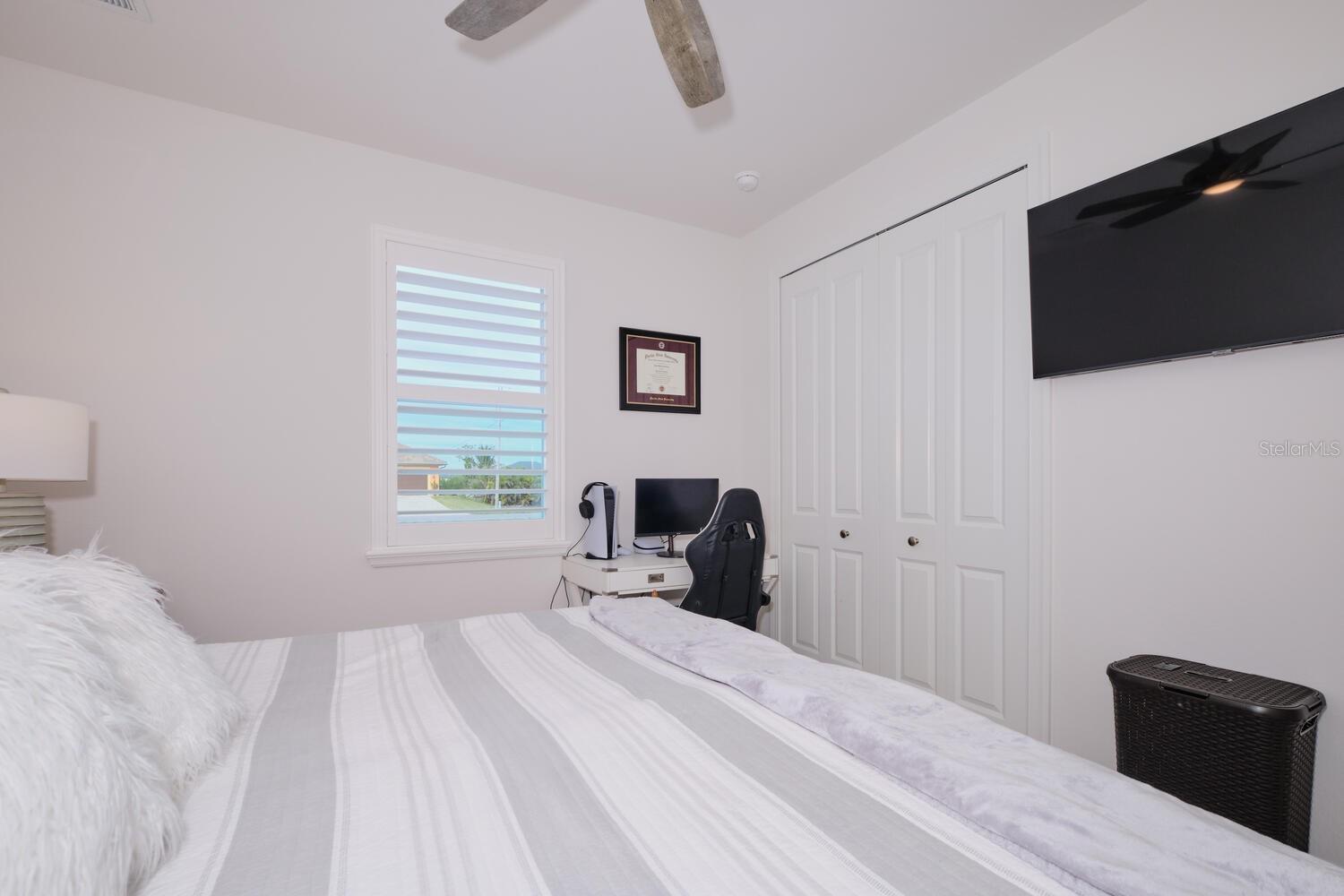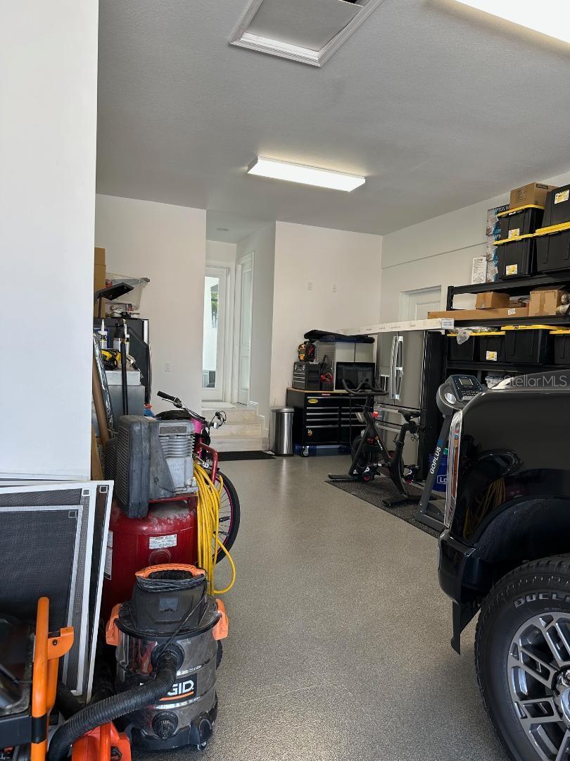 DON'T MISS THIS BEAUTIFUL HOME WITH A 1200 SQ FT GARAGE! As you enter into this Magnificent home you will be captivated by the open floor plan. The Great Room features include pocket sliders, vaulted ceilings and Separate Den with glass doors. Master Bedroom features sliders, tray ceilings, & walk-in closet. Custom Master Bath with large shower, glass enclosure, & dual sinks. The Lanai features a fabulous designer salt water pool and an oversized under roof sitting area. Additional features to include PGT impact windows & doors, fully fenced & landscaped rear yard, plantation shutters, custom curtains, paver driveway & pool deck, quartz countertops, stainless steel appliances, porcelain tile flooring in the entire living area. Home is equipped with a full house reverse osmosis system. 1200 sq ft garage for 4 cars with epoxy finish floor & high ceilings for storage.