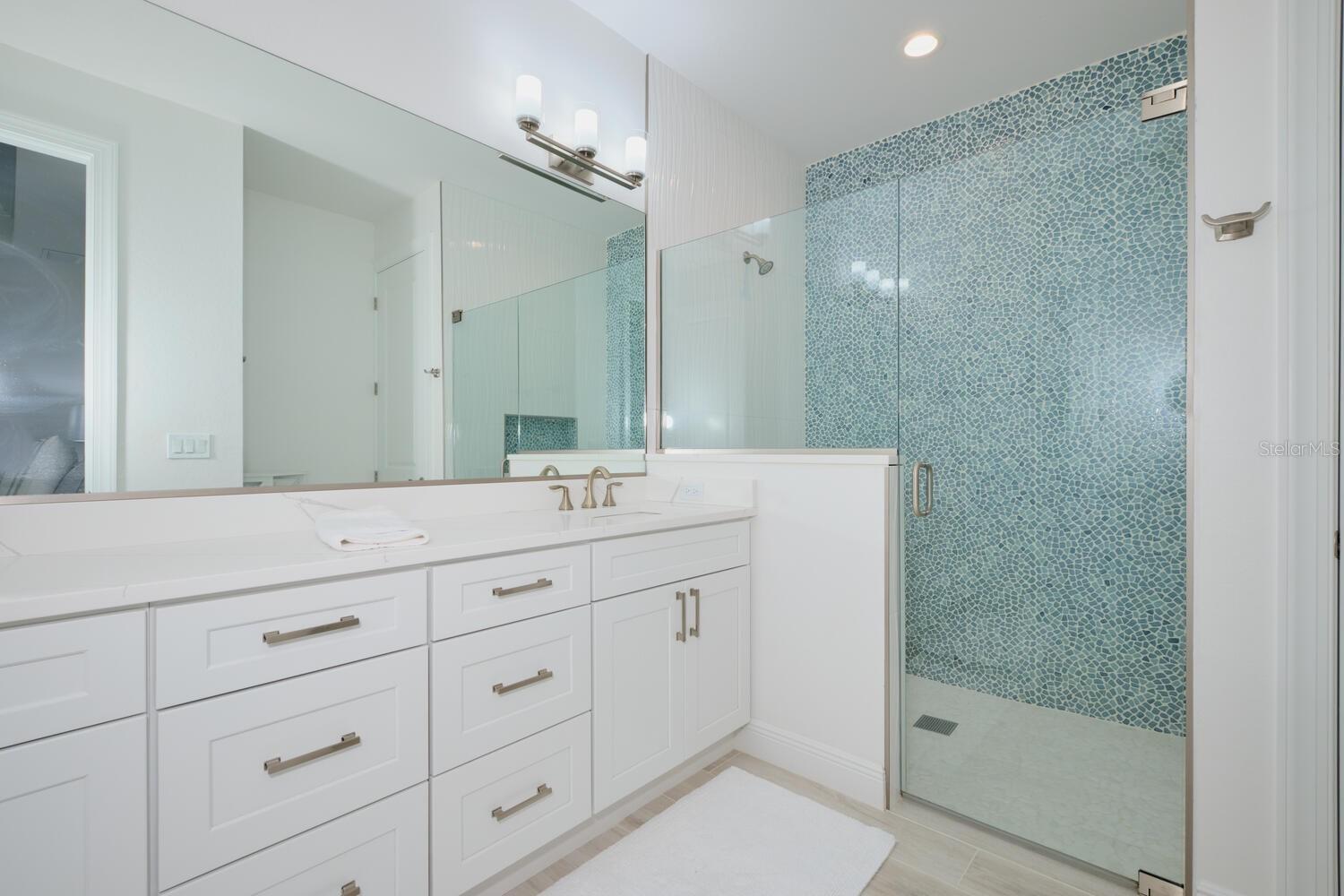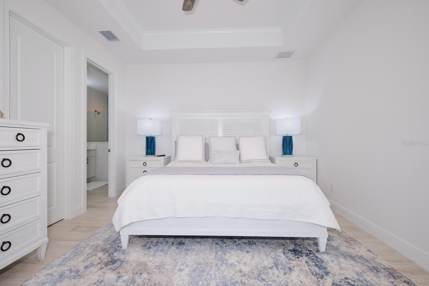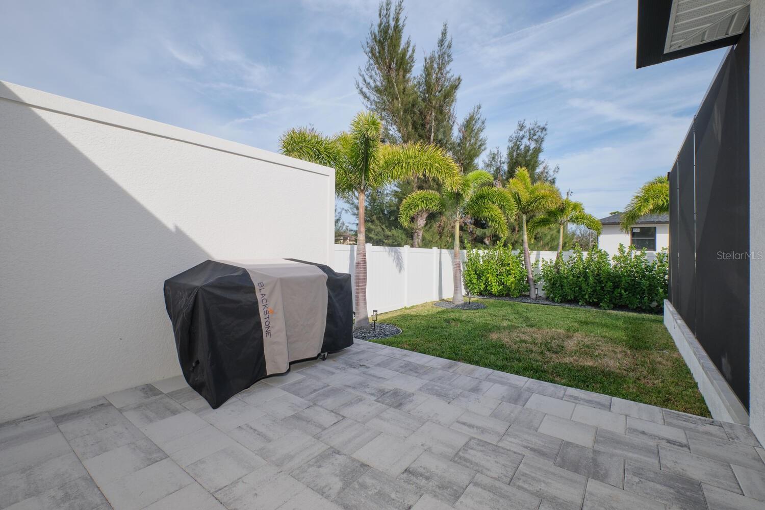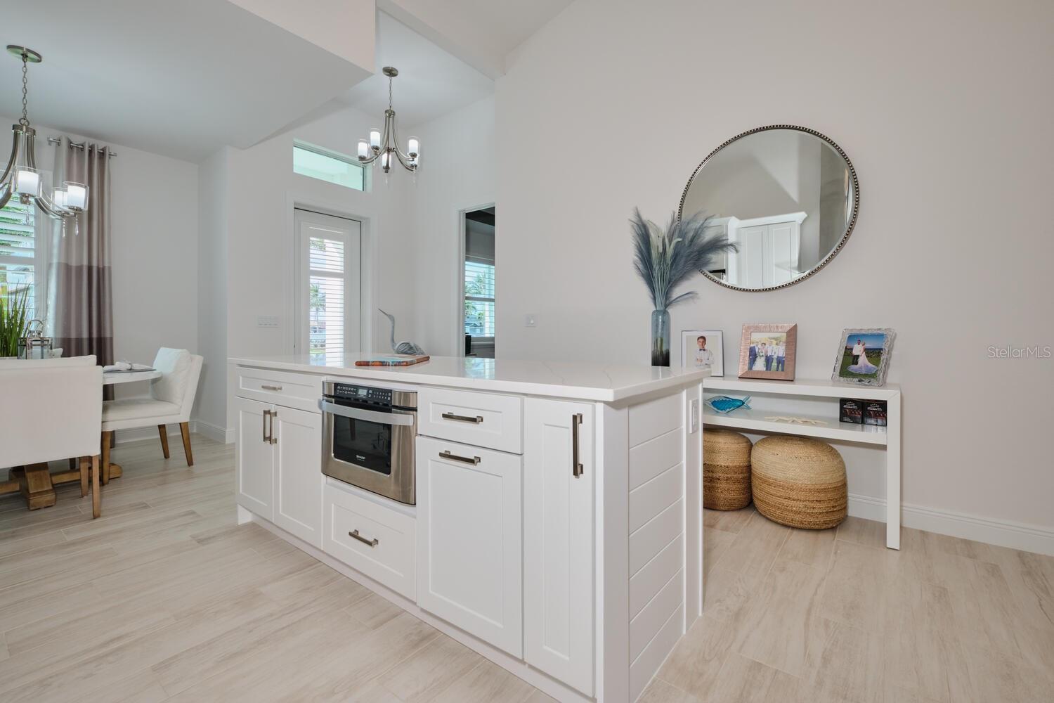 DON'T MISS THIS BEAUTIFUL HOME WITH A 1200 SQ FT GARAGE! As you enter into this Magnificent home you will be captivated by the open floor plan. The Great Room features include pocket sliders, vaulted ceilings and Separate Den with glass doors. Master Bedroom features sliders, tray ceilings, & walk-in closet. Custom Master Bath with large shower, glass enclosure, & dual sinks. The Lanai features a fabulous designer salt water pool and an oversized under roof sitting area. Additional features to include PGT impact windows & doors, fully fenced & landscaped rear yard, plantation shutters, custom curtains, paver driveway & pool deck, quartz countertops, stainless steel appliances, porcelain tile flooring in the entire living area. Home is equipped with a full house reverse osmosis system. 1200 sq ft garage for 4 cars with epoxy finish floor & high ceilings for storage.