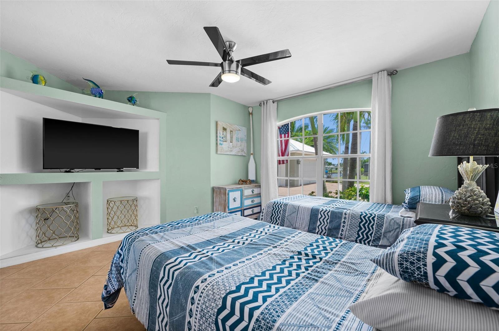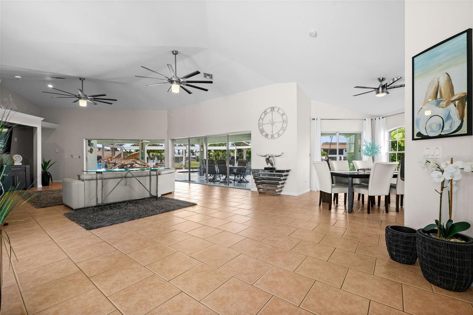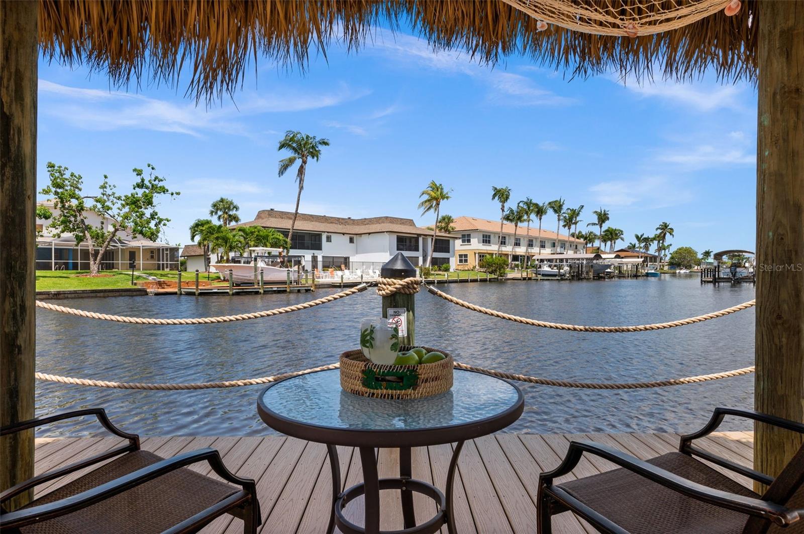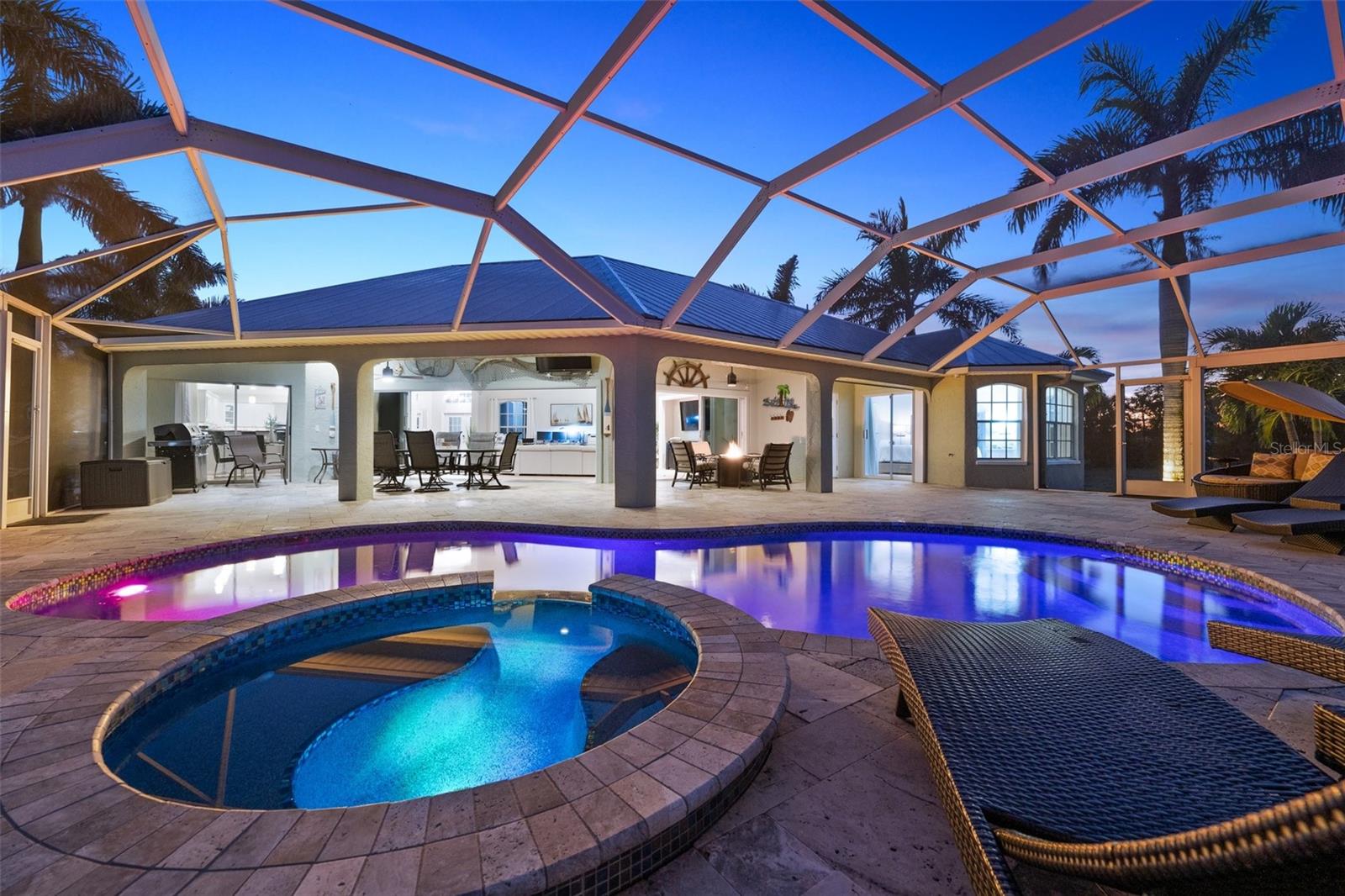 Welcome to 5111 Calusa Ct, a rare waterfront gem offering a premium lot with breathtaking intersecting canal and basin views. This lush and tropical one-third-acre property sits at the end of a cul-de-sac on a hammerhead lot, providing privacy, tranquility, and an exclusive waterfront setting—a combination rarely found in Cape Coral. Enjoy sunrise views down the canals, creating a serene and picturesque backdrop every morning. This home is sold turn-key and move-in ready. Just bring your swimsuit! Designed for the ultimate boating and outdoor lifestyle, the property features 268 feet of water frontage, a wraparound captain’s walk covering most of the waterfront, a built-out dock with a 12 x 12 tiki hut, and a 16,000 lb covered boat lift. From this prime Gulf-access location, you’re just minutes away from waterfront restaurants, pristine beaches, and open-water adventures. Inside, the home offers spacious, open-concept living with soaring ceilings and sliding pocket doors that seamlessly blend indoor and outdoor spaces. The expansive covered lanai and screened-in pool area provide multiple seating areas for relaxing or entertaining while overlooking the water. The freeform pool and attached spa are surrounded by a beautifully tiled deck, making it the perfect space to enjoy the Florida lifestyle. The kitchen features granite countertops, stainless steel appliances, custom cabinetry with crown molding, a tile backsplash, custom lighting, and a breakfast bar. The master suite includes private lanai access, a walk-in closet, and a spa-inspired bathroom with dual sinks, a glass-walled steam shower, and a separate jetted tub. The split-bedroom floor plan ensures privacy for you and your guests. A rare four-car garage setup includes two separate two-car garages—one attached with interior access, and another adjacent with private entry, making it ideal for storage, rental purposes, or securing personal items. The 100-foot-long paver driveway and 30 palm trees throughout the property add to the home’s impressive curb appeal. This home has undergone significant upgrades in the last two years, including a 5V 26-gauge metal roof, a 220' captain’s walk with a 16 x 16 deck platform, a 12 x 12 tiki hut, and a 16,000 lb boat lift with a canopy above the boat. Additional improvements include a new A/C with a heat pump, a new pool pump, and four electronic hurricane carbon fiber roll-down screens on the lanai. Additional upgrades include elegant arched windows, and tile flooring throughout. Best of all, this property has never experienced flooding during any hurricane, offering security and peace of mind. This home is currently in a successfully rental program. With unparalleled water views, an oversized lot, and resort-style outdoor living, this is a rare opportunity to own one of Cape Coral’s most sought-after waterfront properties. Homes like this do not come on the market often—schedule your private showing today!