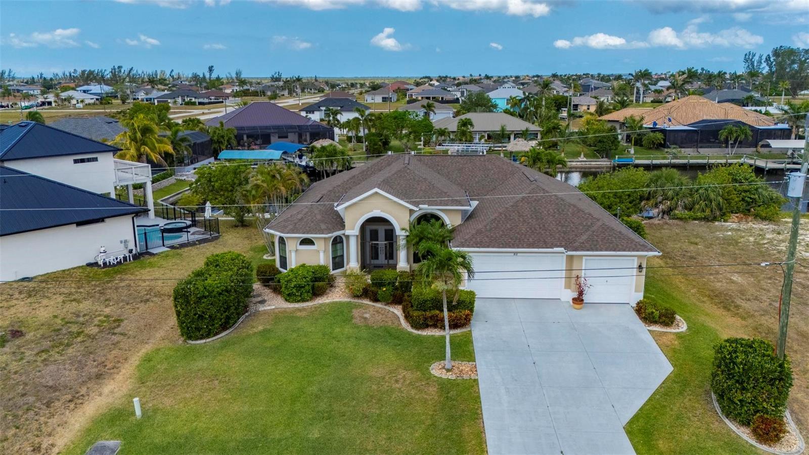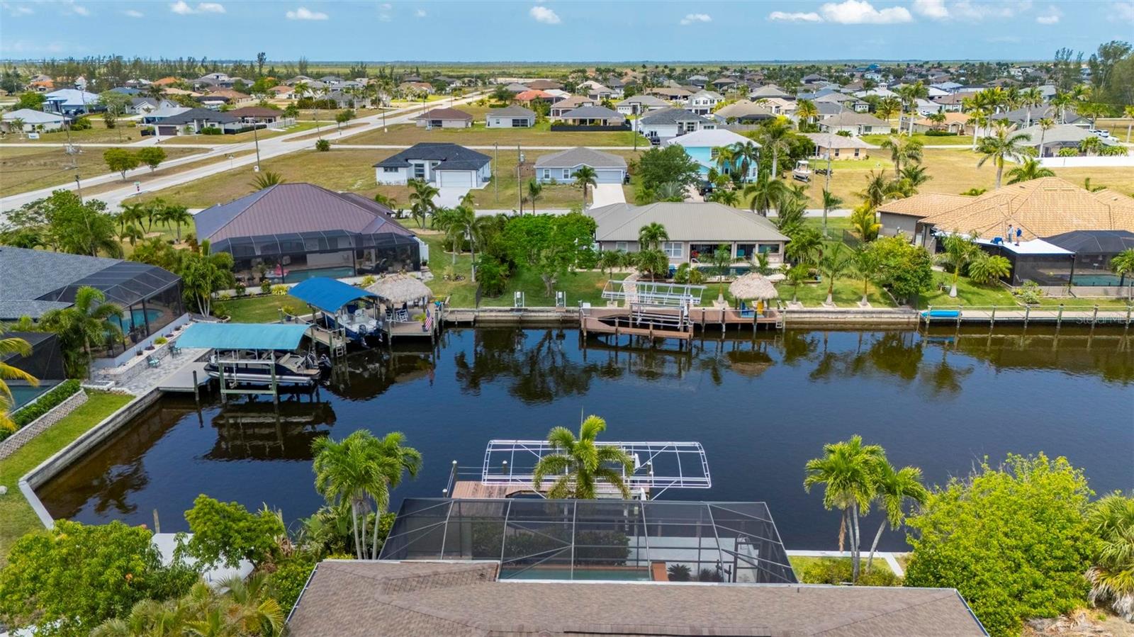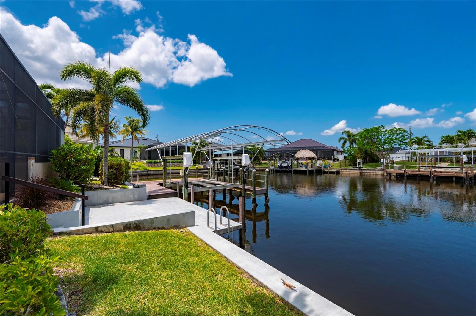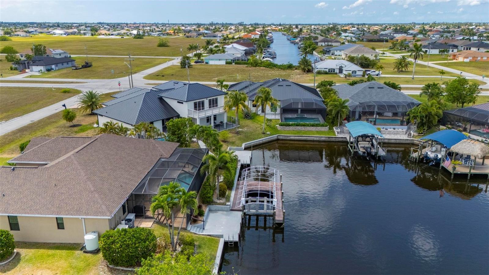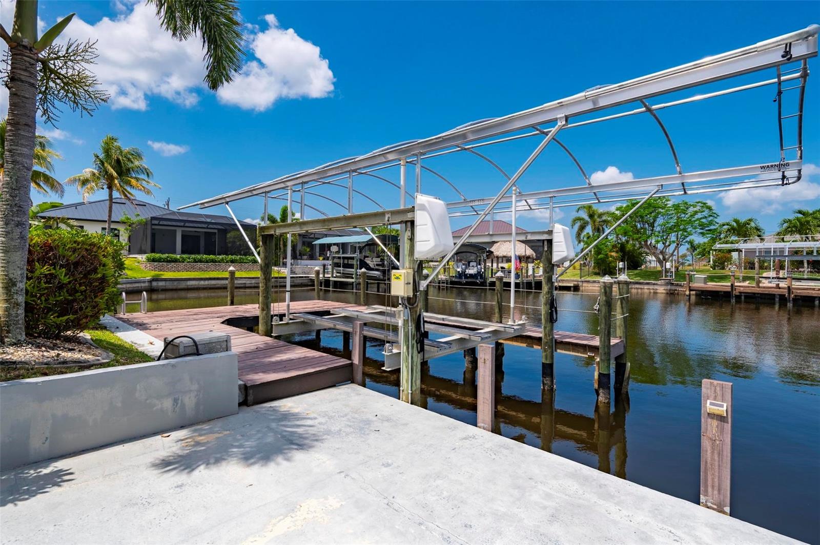 One or more photo(s) has been virtually staged. Experience the ultimate in Florida living with this exquisite furnished 4-bedroom, 2.5-bathroom waterfront pool home with jacuzzi and 3-car garage, perfectly situated in the heart of Cape Coral—and not located in a flood zone. From the moment you arrive, the lush, meticulously maintained landscaping sets the tone for what lies beyond the grand double-door entrance. Inside, you’re welcomed by soaring ceilings, abundant natural light, and stunning canal views through expansive glass French doors. The chef’s kitchen is a dream, offering a spacious cooking island, abundant cabinetry, and a large walk-in pantry with automatic lighting. Just off the kitchen, a spacious laundry room with a deep freezer adds convenience and storage. All four bedrooms are generously sized with large closets, while the luxurious primary suite features an oversized spa-style bathroom with a walk-in shower and dual showerheads—ideal for unwinding at the end of the day. Step out back and enjoy your own private resort-style oasis. The heated pool features built-in bar stools, and the heated jacuzzi provides the perfect spot to relax while soaking in peaceful water views. An outdoor half bath adds convenience for guests, making this space ideal for entertaining. For boating enthusiasts, the property includes a 33-foot dock with a 10,000 lb. boat lift, which extends 20 feet into the canal for easy access to open water. This turnkey home also includes numerous recent upgrades: a whole-house reverse osmosis system, electric storm shutters (2023), 16 impact windows (2023), a new roof (2021), a full HVAC system (2016), an irrigation system, a boat lift canopy (2022), and a concrete seawall (2004). The 3-car garage is fully equipped with a generator hookup, adding peace of mind. A full home and pool inspection and recent appraisal (Feb 2025) provide added confidence for buyers. Located close to top-tier dining, shopping, boating, and Florida’s beautiful beaches, this exceptional home truly offers it all. Schedule your private tour today—this is Florida waterfront living at its finest!