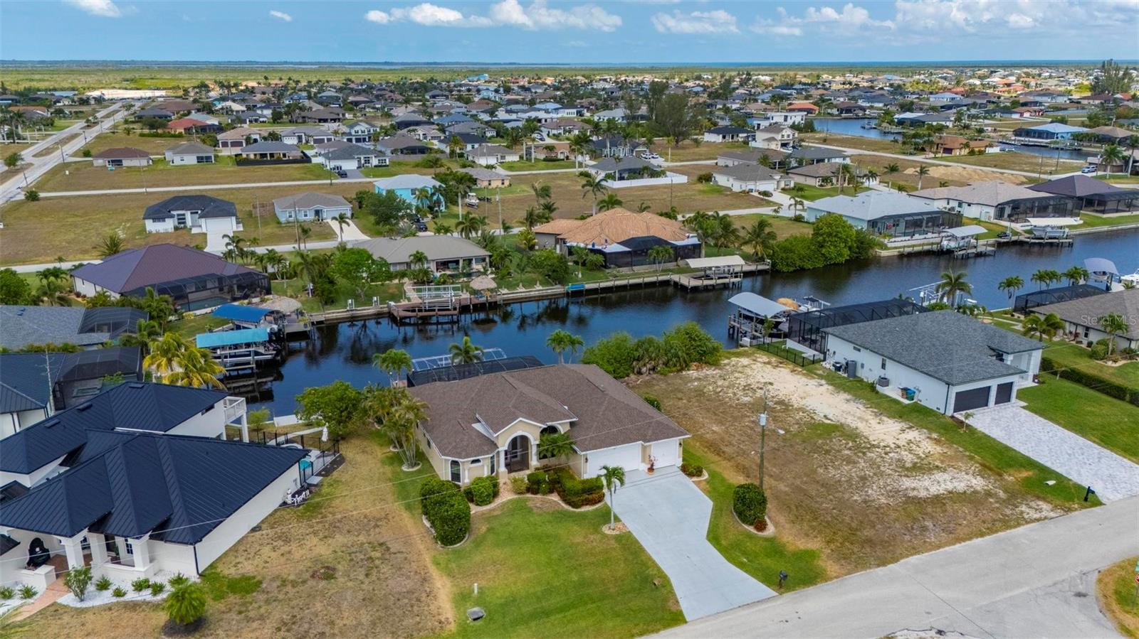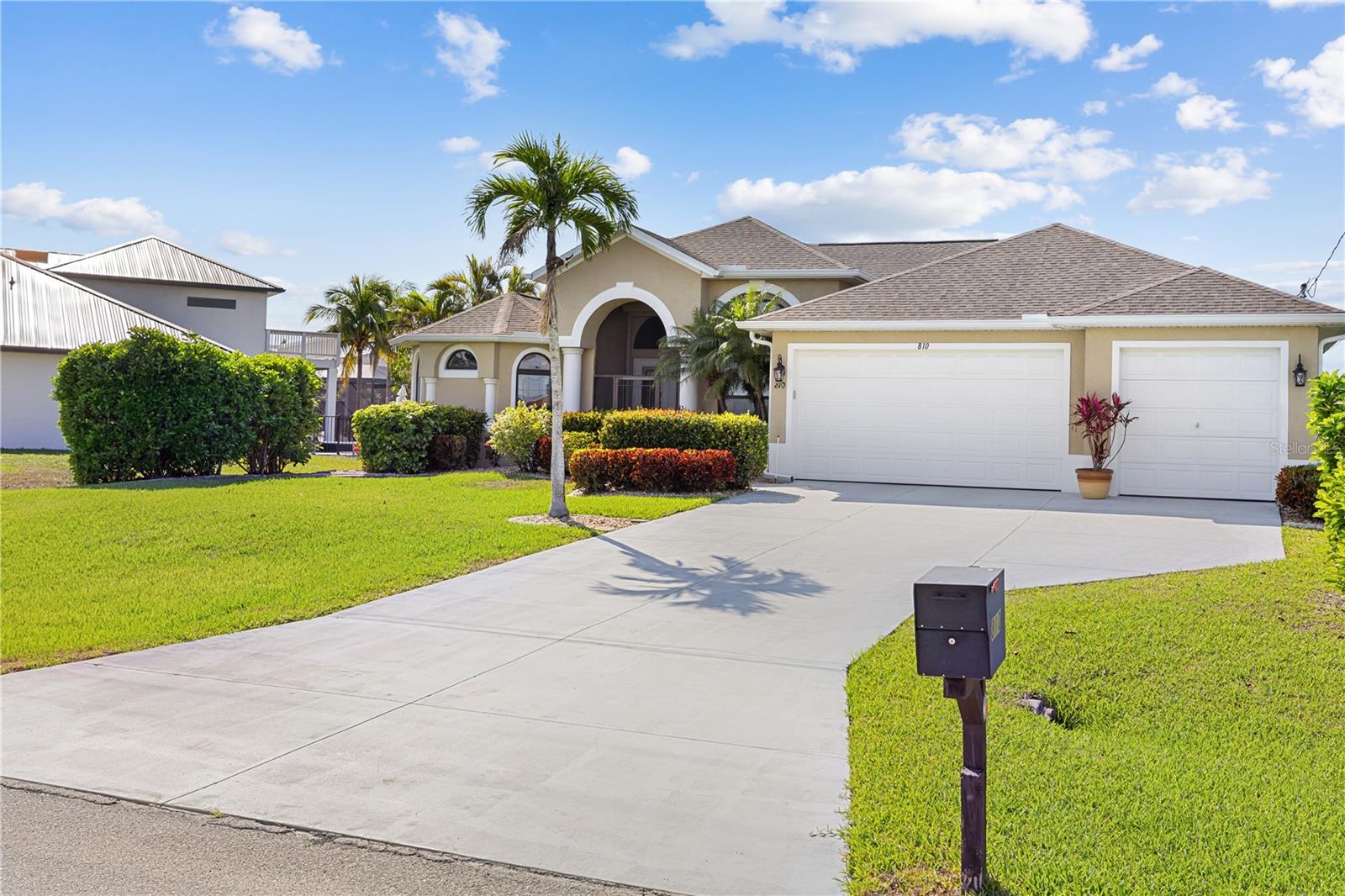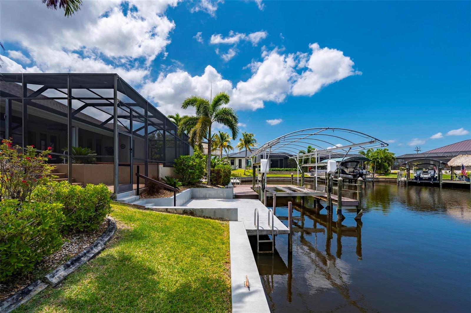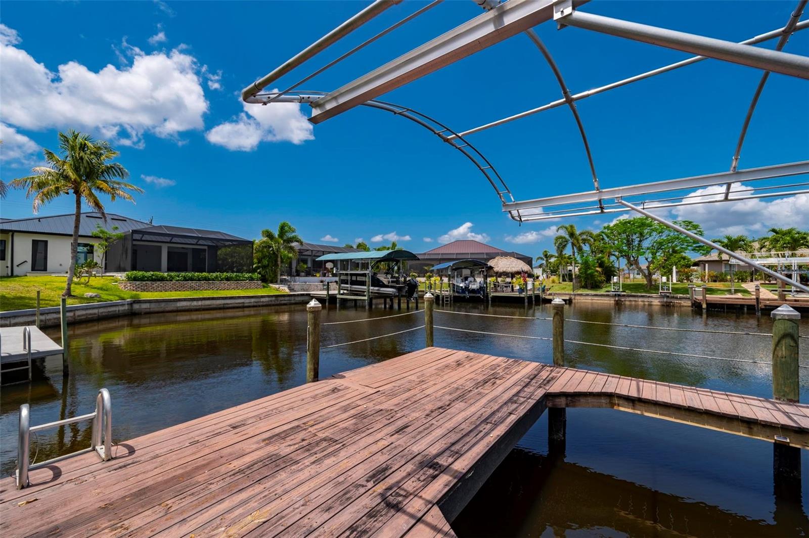 One or more photo(s) has been virtually staged. Experience the ultimate in Florida living with this exquisite furnished 4-bedroom, 2.5-bathroom waterfront pool home with jacuzzi and 3-car garage, perfectly situated in the heart of Cape Coral—and not located in a flood zone. From the moment you arrive, the lush, meticulously maintained landscaping sets the tone for what lies beyond the grand double-door entrance. Inside, you’re welcomed by soaring ceilings, abundant natural light, and stunning canal views through expansive glass French doors. The chef’s kitchen is a dream, offering a spacious cooking island, abundant cabinetry, and a large walk-in pantry with automatic lighting. Just off the kitchen, a spacious laundry room with a deep freezer adds convenience and storage. All four bedrooms are generously sized with large closets, while the luxurious primary suite features an oversized spa-style bathroom with a walk-in shower and dual showerheads—ideal for unwinding at the end of the day. Step out back and enjoy your own private resort-style oasis. The heated pool features built-in bar stools, and the heated jacuzzi provides the perfect spot to relax while soaking in peaceful water views. An outdoor half bath adds convenience for guests, making this space ideal for entertaining. For boating enthusiasts, the property includes a 33-foot dock with a 10,000 lb. boat lift, which extends 20 feet into the canal for easy access to open water. This turnkey home also includes numerous recent upgrades: a whole-house reverse osmosis system, electric storm shutters (2023), 16 impact windows (2023), a new roof (2021), a full HVAC system (2016), an irrigation system, a boat lift canopy (2022), and a concrete seawall (2004). The 3-car garage is fully equipped with a generator hookup, adding peace of mind. A full home and pool inspection and recent appraisal (Feb 2025) provide added confidence for buyers. Located close to top-tier dining, shopping, boating, and Florida’s beautiful beaches, this exceptional home truly offers it all. Schedule your private tour today—this is Florida waterfront living at its finest!