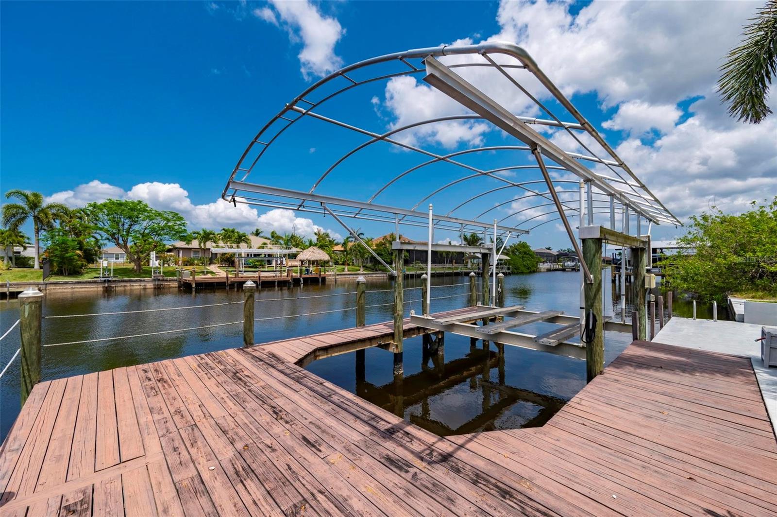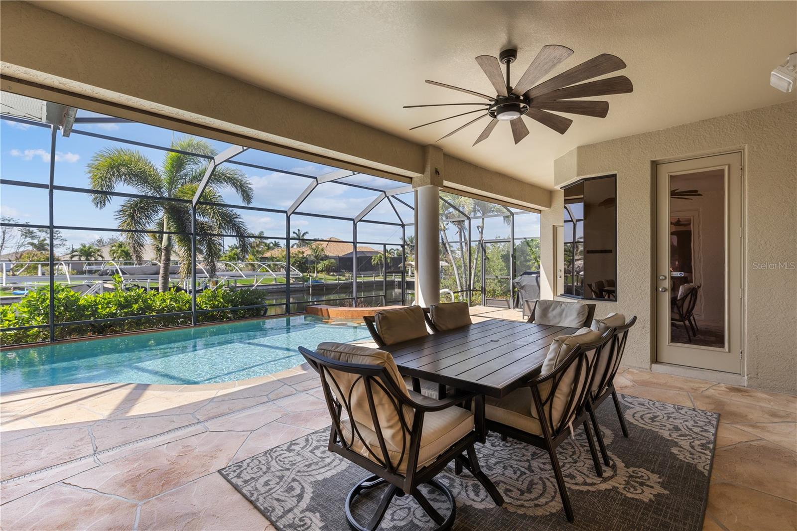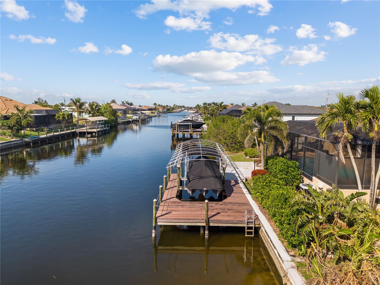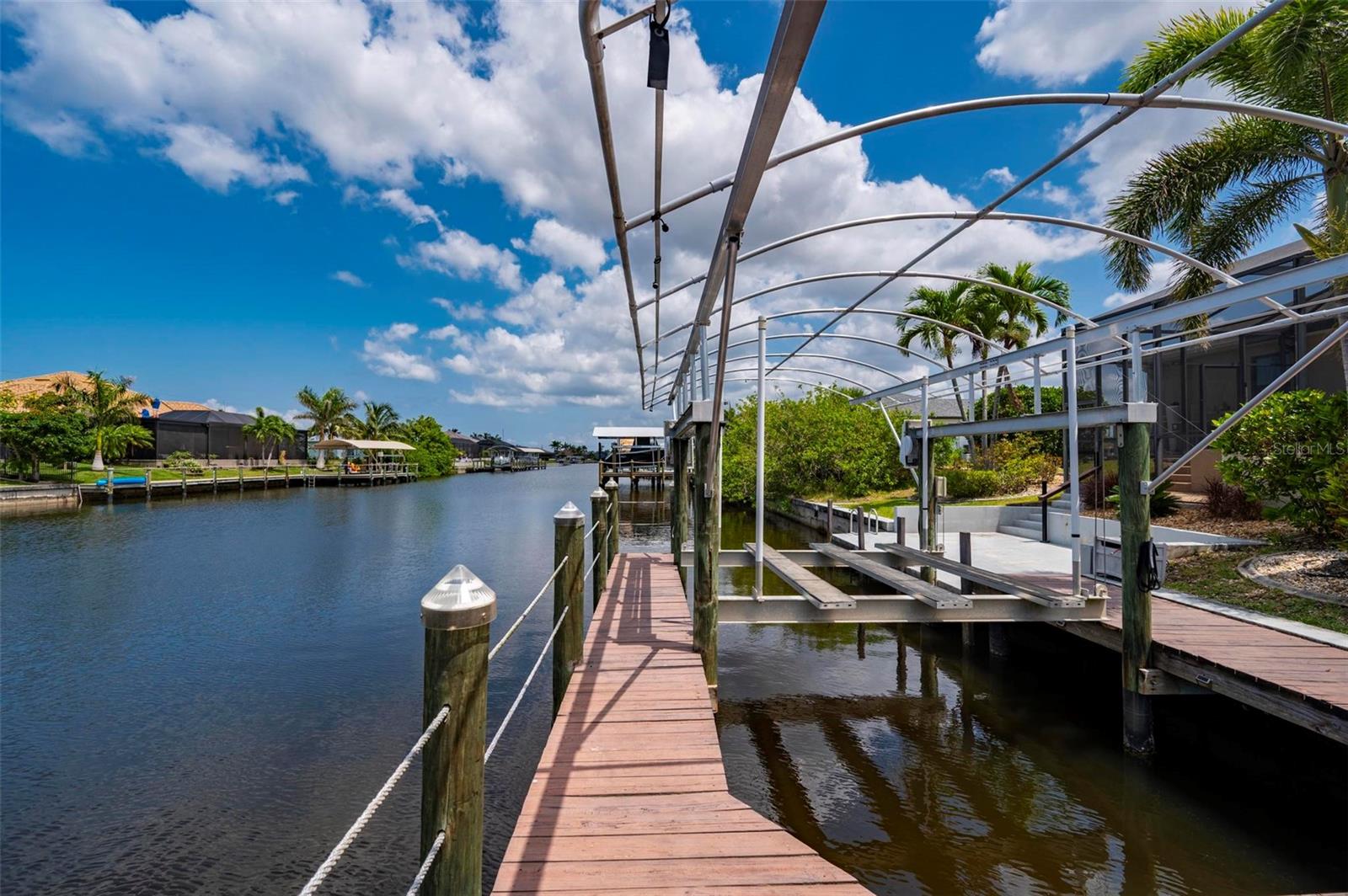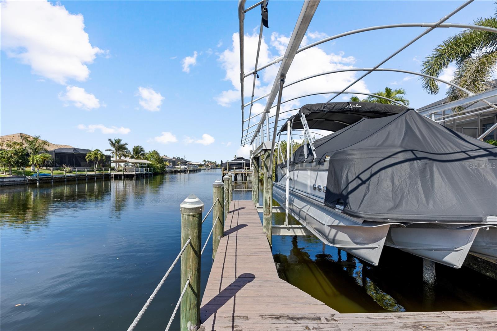 One or more photo(s) has been virtually staged. Experience the ultimate in Florida living with this exquisite furnished 4-bedroom, 2.5-bathroom waterfront pool home with jacuzzi and 3-car garage, perfectly situated in the heart of Cape Coral—and not located in a flood zone. From the moment you arrive, the lush, meticulously maintained landscaping sets the tone for what lies beyond the grand double-door entrance. Inside, you’re welcomed by soaring ceilings, abundant natural light, and stunning canal views through expansive glass French doors. The chef’s kitchen is a dream, offering a spacious cooking island, abundant cabinetry, and a large walk-in pantry with automatic lighting. Just off the kitchen, a spacious laundry room with a deep freezer adds convenience and storage. All four bedrooms are generously sized with large closets, while the luxurious primary suite features an oversized spa-style bathroom with a walk-in shower and dual showerheads—ideal for unwinding at the end of the day. Step out back and enjoy your own private resort-style oasis. The heated pool features built-in bar stools, and the heated jacuzzi provides the perfect spot to relax while soaking in peaceful water views. An outdoor half bath adds convenience for guests, making this space ideal for entertaining. For boating enthusiasts, the property includes a 33-foot dock with a 10,000 lb. boat lift, which extends 20 feet into the canal for easy access to open water. This turnkey home also includes numerous recent upgrades: a whole-house reverse osmosis system, electric storm shutters (2023), 16 impact windows (2023), a new roof (2021), a full HVAC system (2016), an irrigation system, a boat lift canopy (2022), and a concrete seawall (2004). The 3-car garage is fully equipped with a generator hookup, adding peace of mind. A full home and pool inspection and recent appraisal (Feb 2025) provide added confidence for buyers. Located close to top-tier dining, shopping, boating, and Florida’s beautiful beaches, this exceptional home truly offers it all. Schedule your private tour today—this is Florida waterfront living at its finest!
