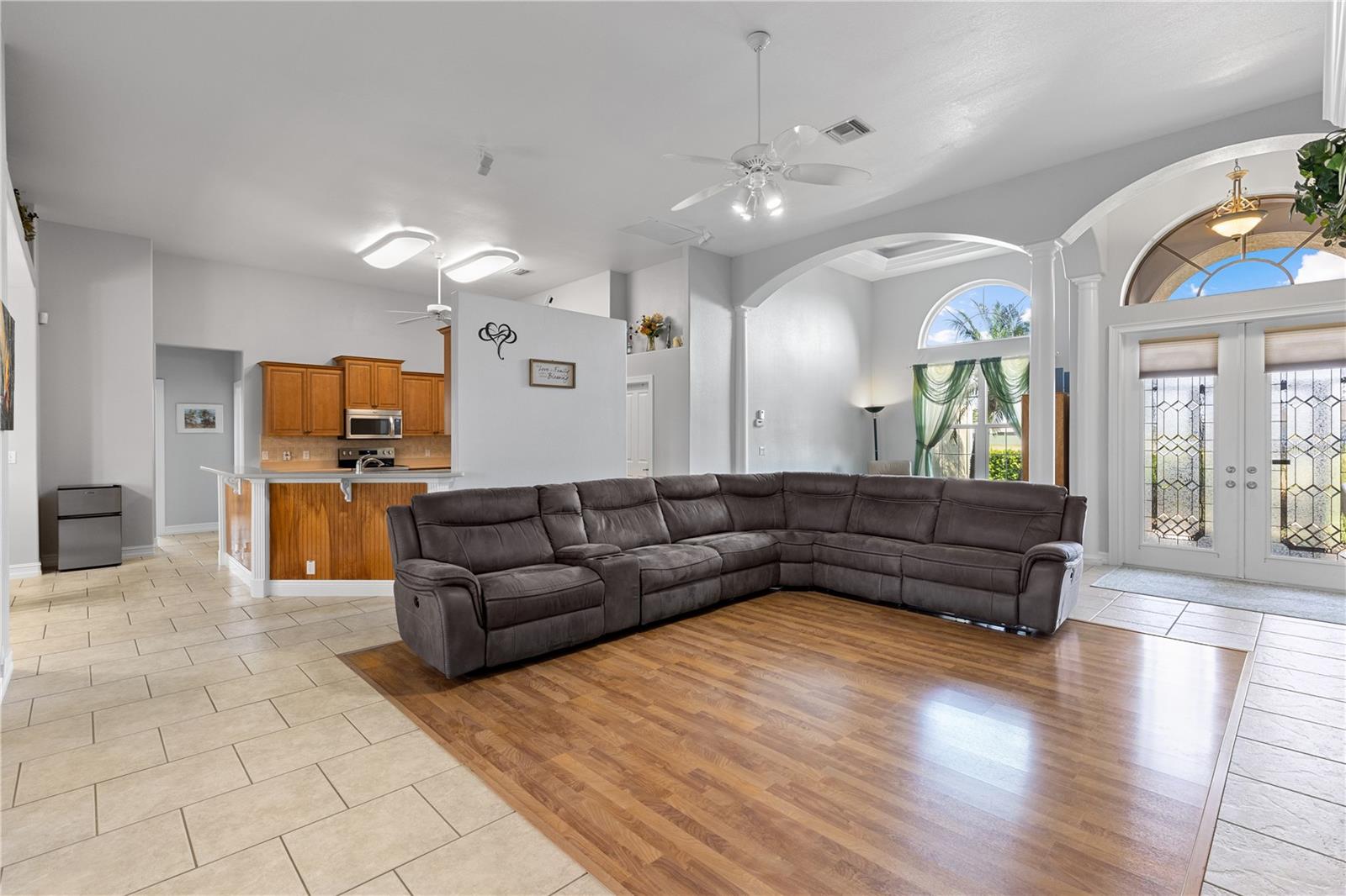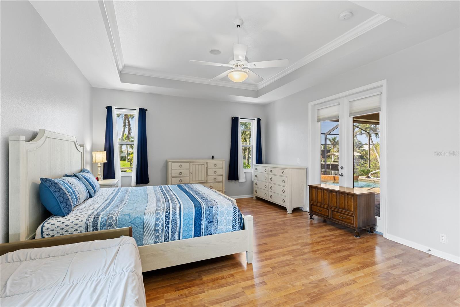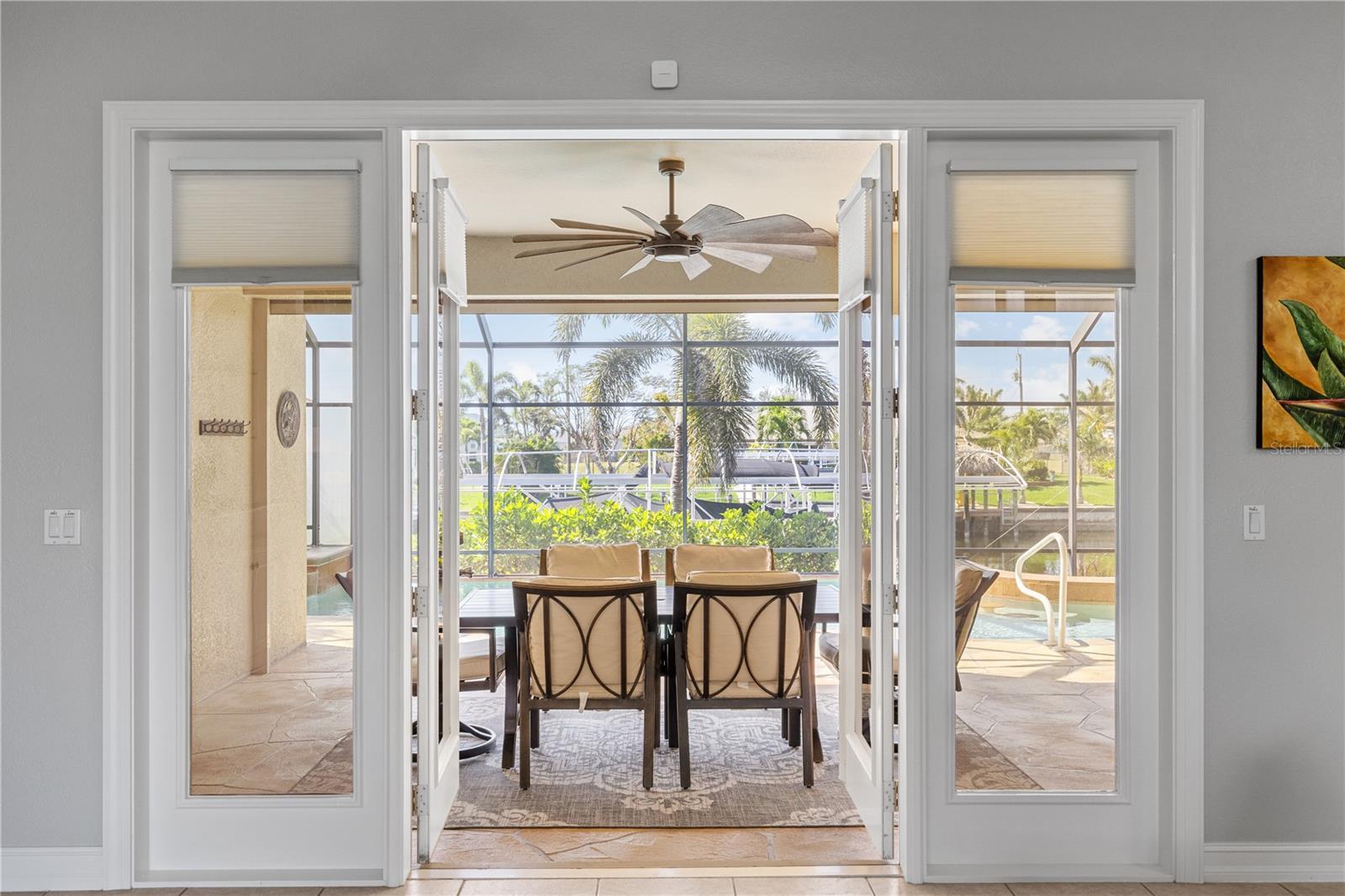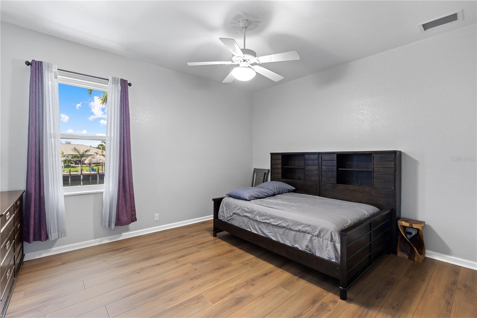 One or more photo(s) has been virtually staged. Experience the ultimate in Florida living with this exquisite furnished 4-bedroom, 2.5-bathroom waterfront pool home with jacuzzi and 3-car garage, perfectly situated in the heart of Cape Coral—and not located in a flood zone. From the moment you arrive, the lush, meticulously maintained landscaping sets the tone for what lies beyond the grand double-door entrance. Inside, you’re welcomed by soaring ceilings, abundant natural light, and stunning canal views through expansive glass French doors. The chef’s kitchen is a dream, offering a spacious cooking island, abundant cabinetry, and a large walk-in pantry with automatic lighting. Just off the kitchen, a spacious laundry room with a deep freezer adds convenience and storage. All four bedrooms are generously sized with large closets, while the luxurious primary suite features an oversized spa-style bathroom with a walk-in shower and dual showerheads—ideal for unwinding at the end of the day. Step out back and enjoy your own private resort-style oasis. The heated pool features built-in bar stools, and the heated jacuzzi provides the perfect spot to relax while soaking in peaceful water views. An outdoor half bath adds convenience for guests, making this space ideal for entertaining. For boating enthusiasts, the property includes a 33-foot dock with a 10,000 lb. boat lift, which extends 20 feet into the canal for easy access to open water. This turnkey home also includes numerous recent upgrades: a whole-house reverse osmosis system, electric storm shutters (2023), 16 impact windows (2023), a new roof (2021), a full HVAC system (2016), an irrigation system, a boat lift canopy (2022), and a concrete seawall (2004). The 3-car garage is fully equipped with a generator hookup, adding peace of mind. A full home and pool inspection and recent appraisal (Feb 2025) provide added confidence for buyers. Located close to top-tier dining, shopping, boating, and Florida’s beautiful beaches, this exceptional home truly offers it all. Schedule your private tour today—this is Florida waterfront living at its finest!