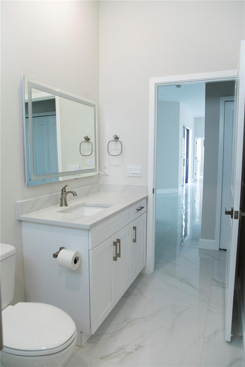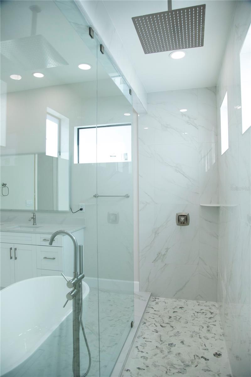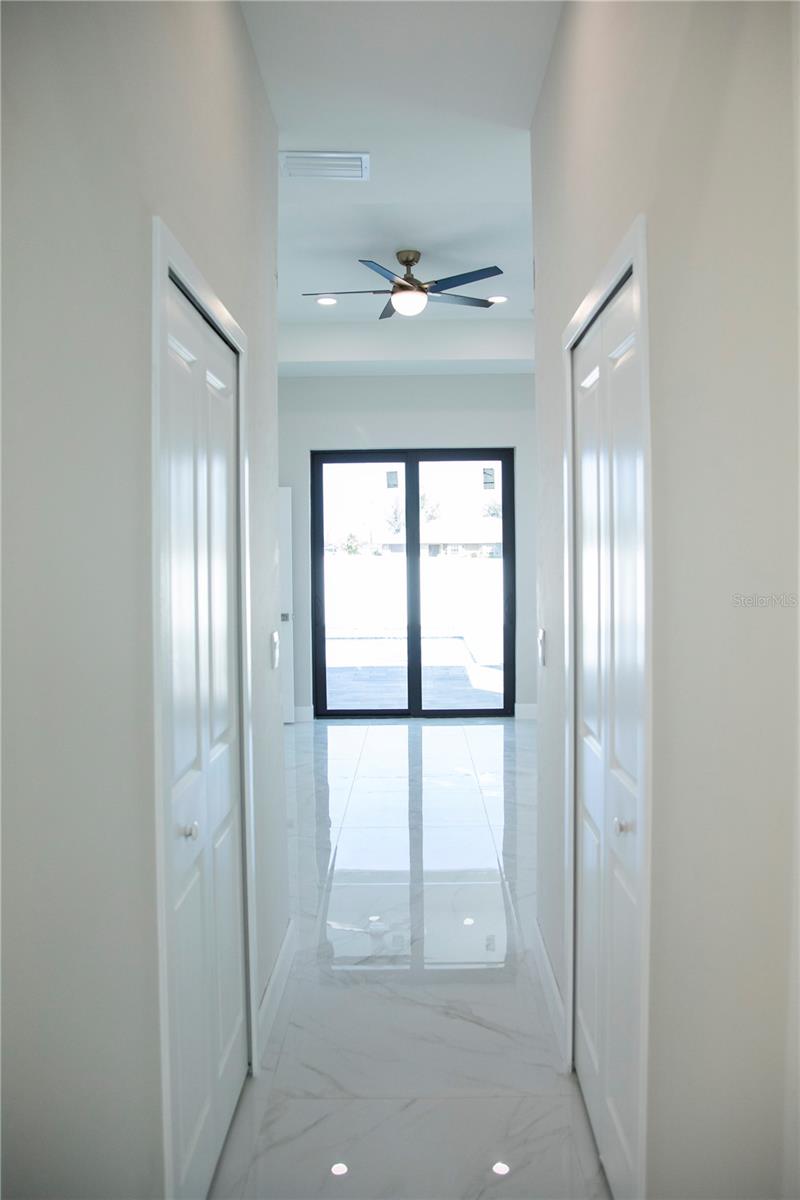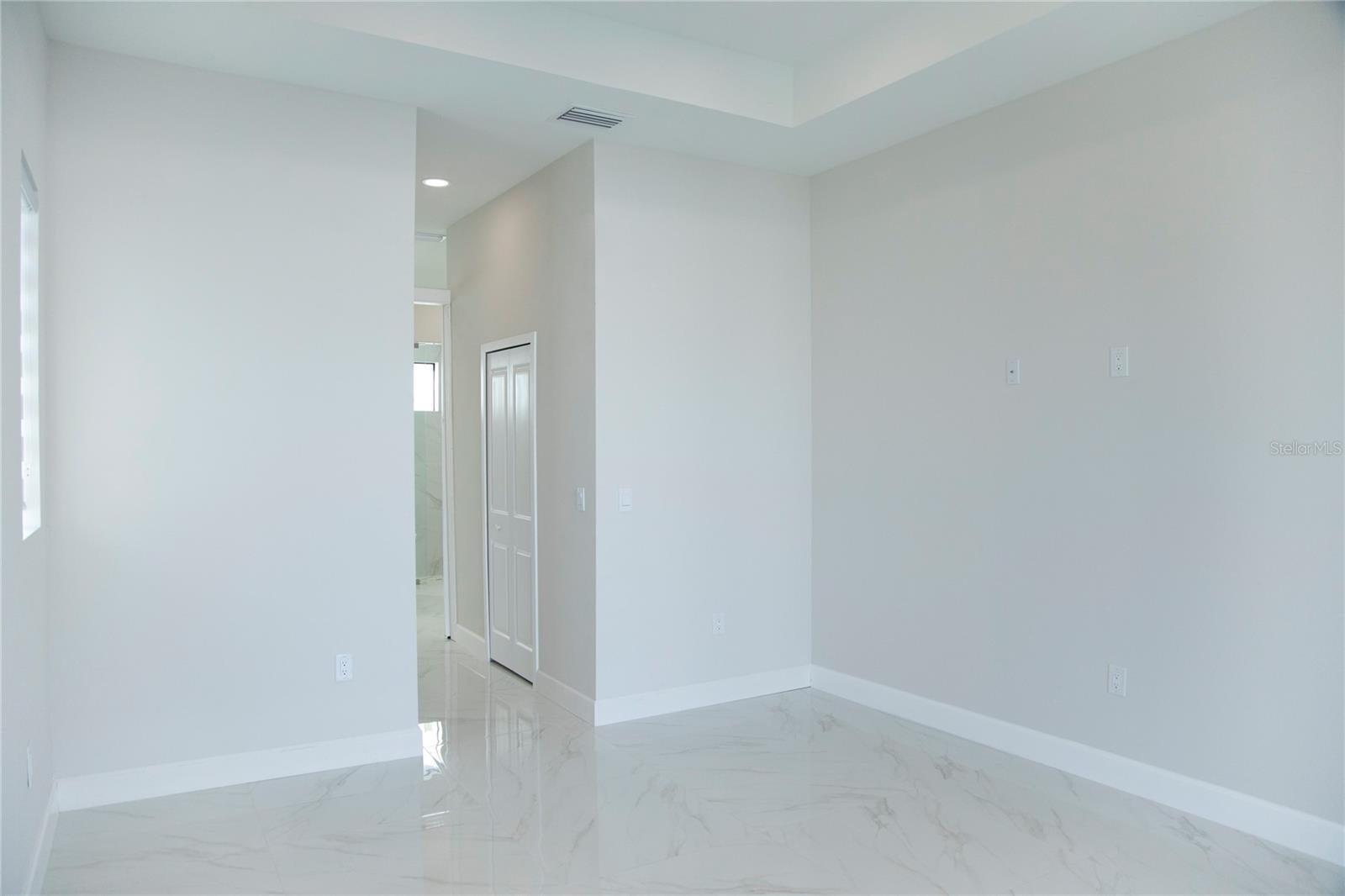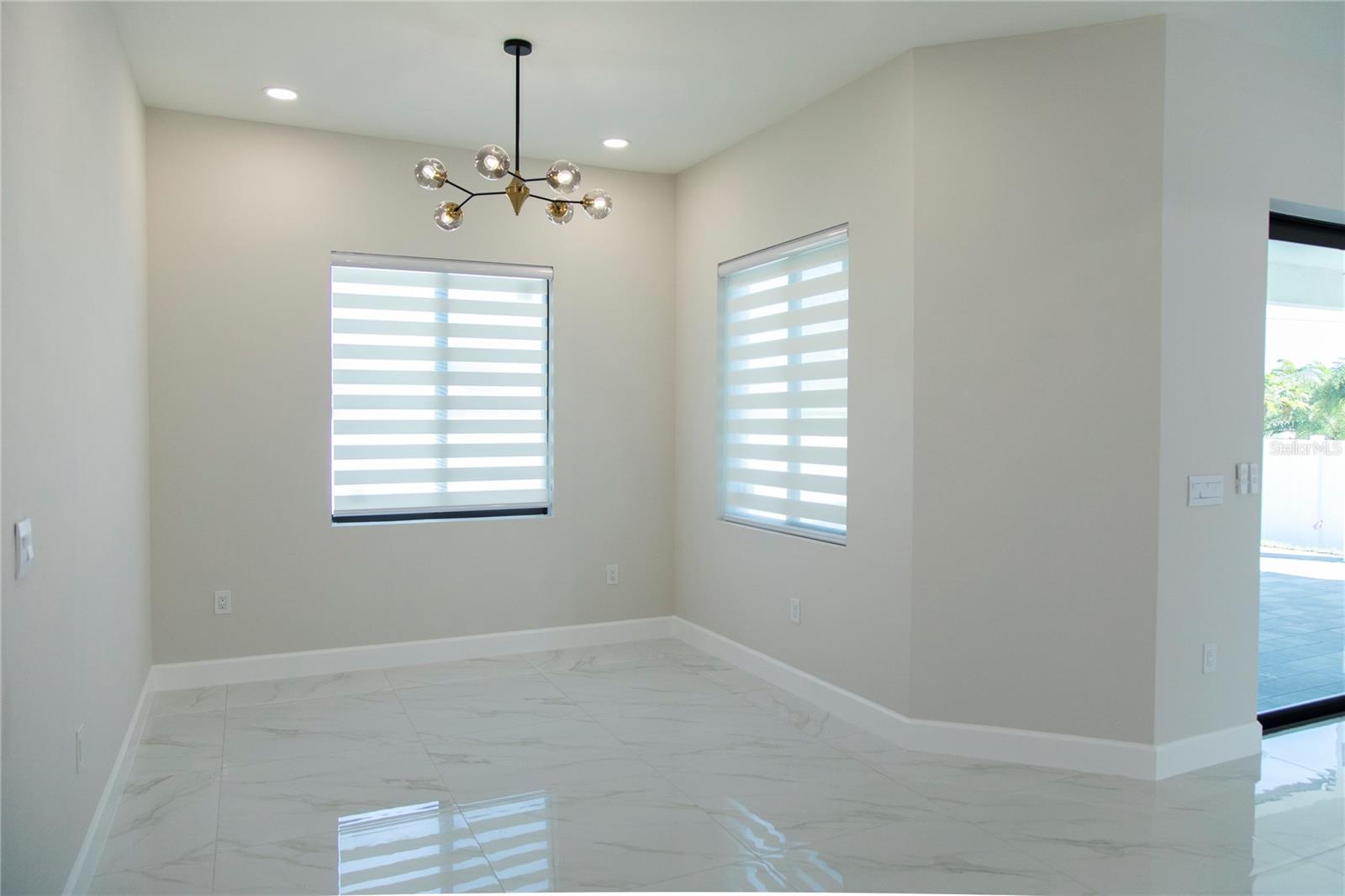 Stunning new construction pool home located in a quiet neighborhood close to all amenities. This fabulous home features 3 bed + den/office, 2 bath, 3 car garage, an in ground 14 x 28 upgraded pool with natural stone travertine coping, interior tile, tanning ledge with bubbler, and a fenced yard. Enter the house through double entrance doors into the large and bright living area with 96” tall sliding doors to the lanai. This home features hurricane impact doors and windows and extra tall ceilings that complement all extended 96” exterior doors and 32”X32” porcelain tile throughout the house. Kitchen features premium cabinets with solid wood doors, a large island with room for seating, upgraded stainless steel appliances with a built in cooktop, and premium quartz counter tops. A separate dining area overlooks the gorgeous pool. Upgraded fixtures, ceiling fans and lighting throughout this home. Primary suite has two walk in closets with custom organizers, dual sinks, large glass enclosed shower, oversized freestanding tub, and sliding doors out to the lanai. The two additional bedrooms have custom closet organizers and window treatments. Garage has two garage door openers. Exterior has decorative stucco finish, extended paver driveway, High efficiency premium Ruud HVAC system, and a sprinkler system.