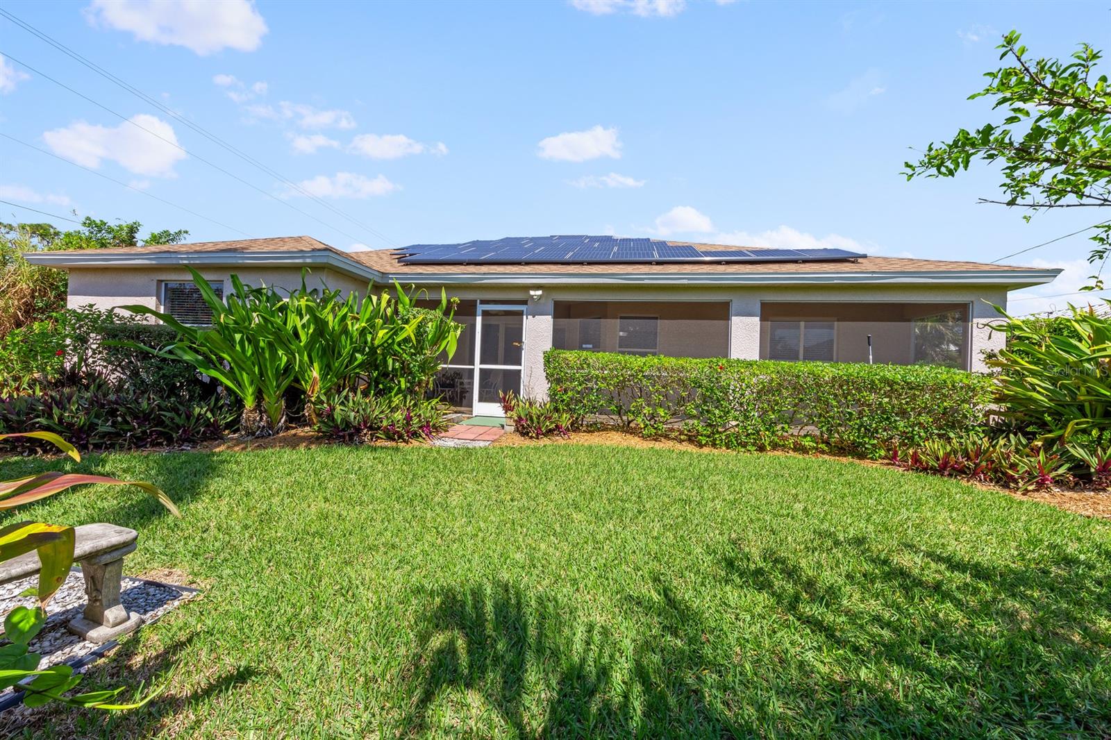 This partially furnished, well-maintained 3-bedroom, 2-bath plus den home located in the rapidly growing northwest Cape Coral comes equipped with a full-house Generac Generator and buried propane tank, filled and ready for use when needed. Flood Zone X. The open concept living space features a formal dining area, modern kitchen with newer appliances and solid surface countertops, island and bar area and breakfast nook, all overlooking a spacious living room. From there, step out through pocket sliders into the screened-in patio which spans the full back side of the house, where you can enjoy your private mature tropical landscaping with your morning coffee or an evening cocktail. Room to add a pool. Equipped with full-house reverse osmosis water system, solar panels, two-car garage and laundry room with washer/dryer, this house is ideal for a primary residence, vacation home or investment property. Schedule your showing today!