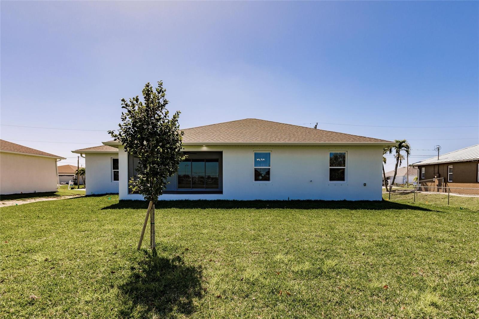 NO FLOOD INSURANCE REQUIRED. LOMR IN HAND & PAID FOR! EXTREMELY LOW HOME OWNERS INSURANCE! UP TO 20K IN BUILDER Incentives based on conditions specified by Seller! Buy the rate down to as low as 3.5, terms and conditions apply. This stunning new construction home is move-in ready. The kitchen is meticulously crafted with crown molding which also accents the great room. This home also includes a spacious master bedroom and three additional roomy bedrooms complete with installed blinds and upgraded ceiling fans. Home also features a paver driveway, tropical landscaping and a lush lawn which is studded with convenient, automatic sprinklers. It also has City Water & Sewer and is located in Cape Coral which has some of the highest ratings for quality of life, retirement, outdoor activities, and overall livability. The Cape ranks particularly high in terms of cost of living and safety. With a generous 2,009 square feet of living space, this 4-bedroom, 2-bath home is close to shopping and dining and includes a spacious 11x17 under-truss lanai along with a generous 2-Car garage with epoxy flooring. Comes with a full Builders 2-10 warranty. Call us to set up a time to speak directly with the Builder as the Builder has other homes available at varying stages of completion.