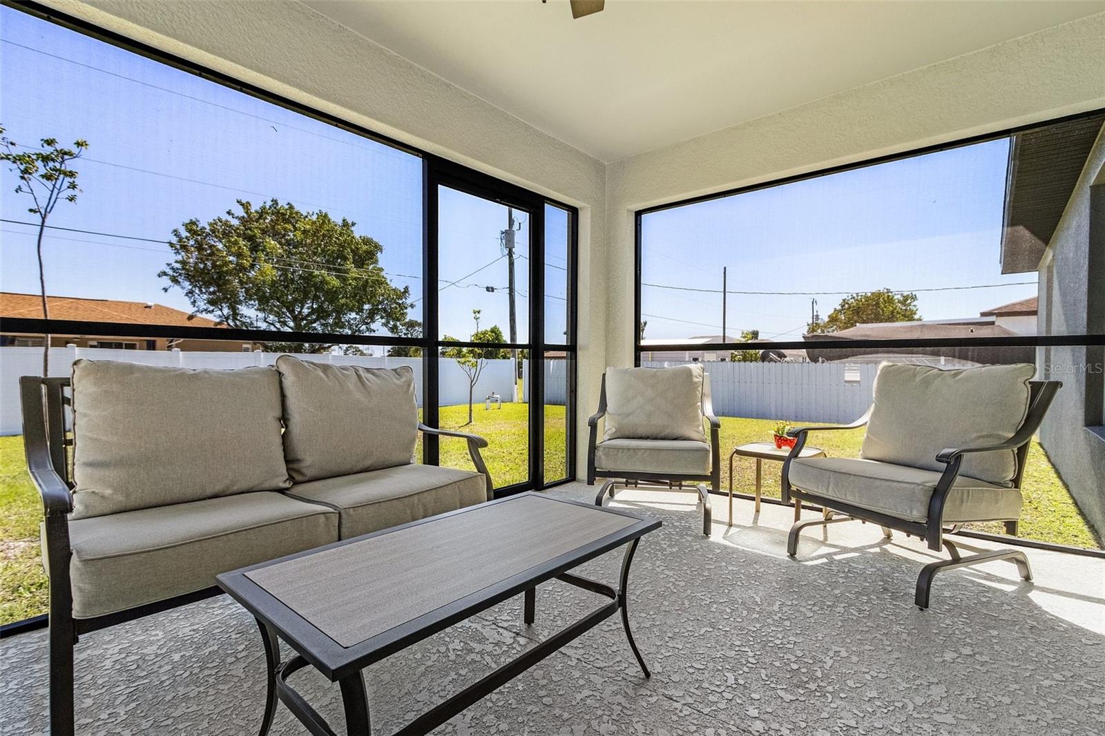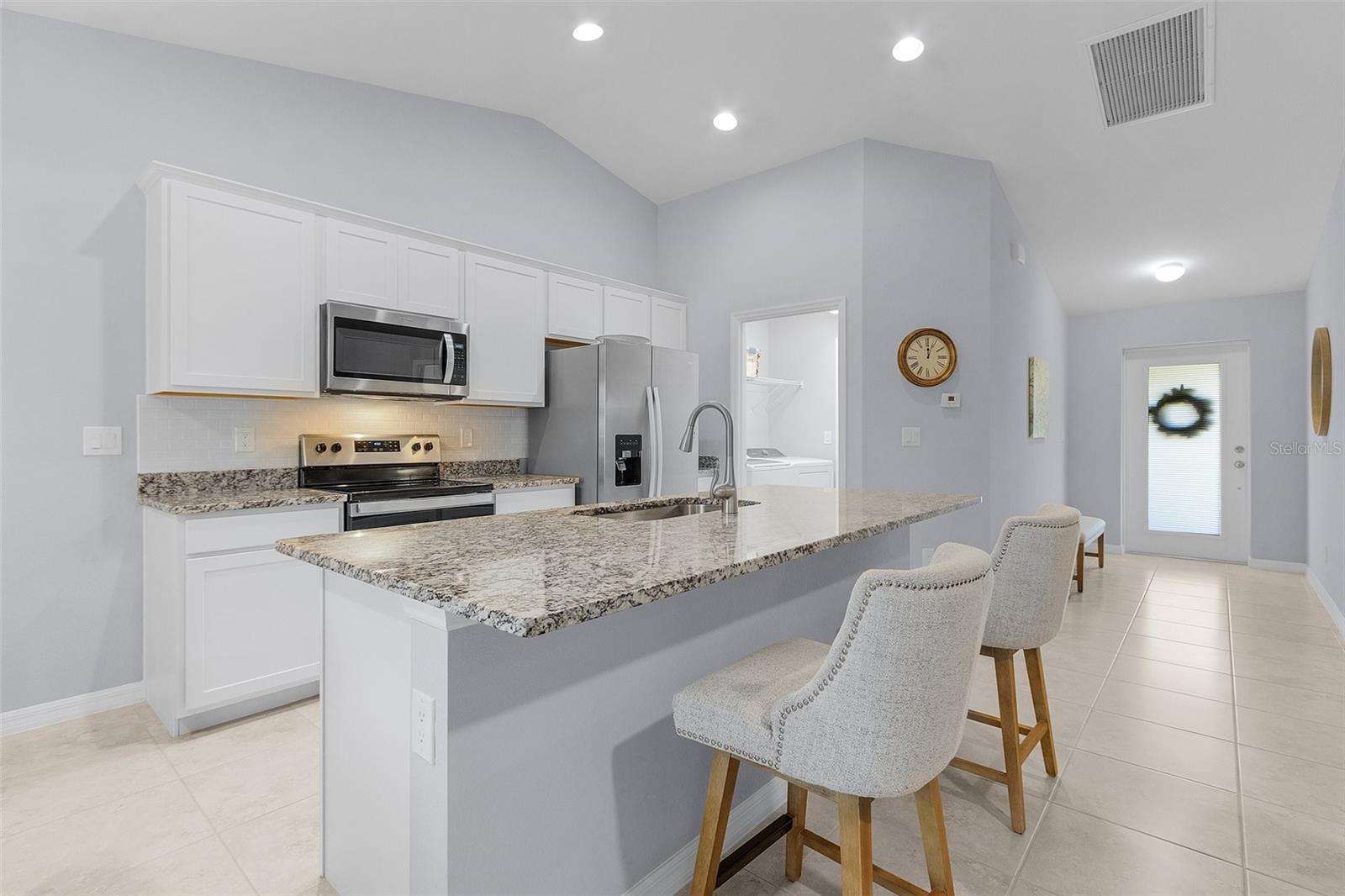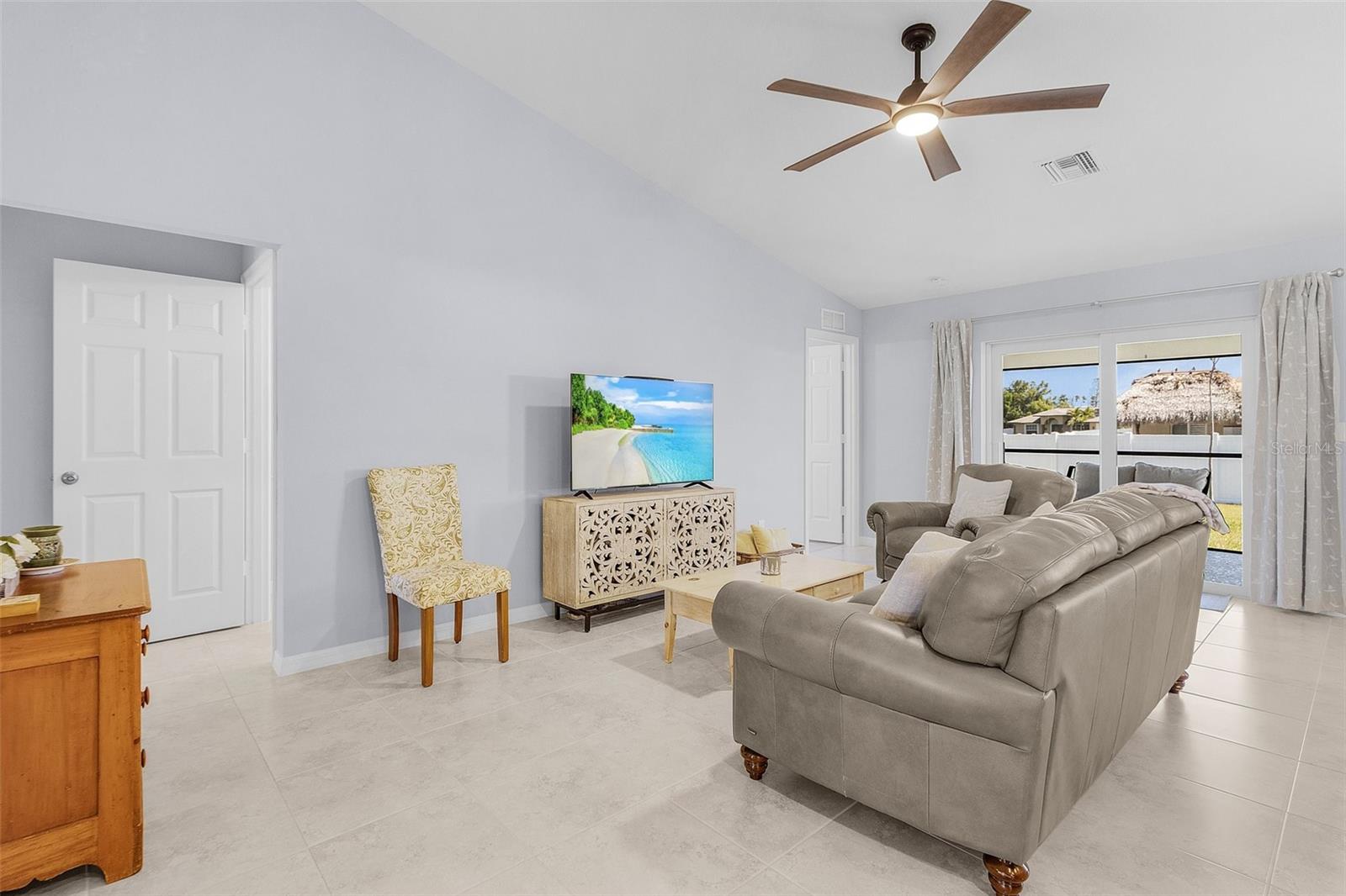This like-new 2023 Christopher Alan home is a stunning find, offering 3 bedrooms, a den, and 2 bathrooms in an unbeatable location. Situated just two minutes from Mariner High School and Mariner Middle School, and only 9 minutes from Oasis Elementary North, this home offers incredible convenience for families. The property has never flooded and is not located in a flood zone, meaning no flood insurance is required. Inside, you'll find tile flooring throughout the entire home, creating a sleek and cohesive look. The kitchen is a standout, featuring granite countertops, a large island with a single deep sink, modern cabinets with soft-close drawers, and a beautiful tile backsplash. Upgraded remote control fans and lights are installed in every room, ensuring comfort and convenience. The home features a brick paver driveway and a screened-in rear lanai, providing the perfect space to enjoy your morning coffee and watch the sunrise. Additional features include impactresistant windows, an automatic irrigation system, a termite bait and protector system around the perimeter, a decorative chip flake garage floor coating, and a whole-house reverse osmosis system for purified water throughout. This home offers the perfect blend of modern amenities and an excellent location, with easy access to stores, restaurants, and other amenities, making it an exceptional place to call home!