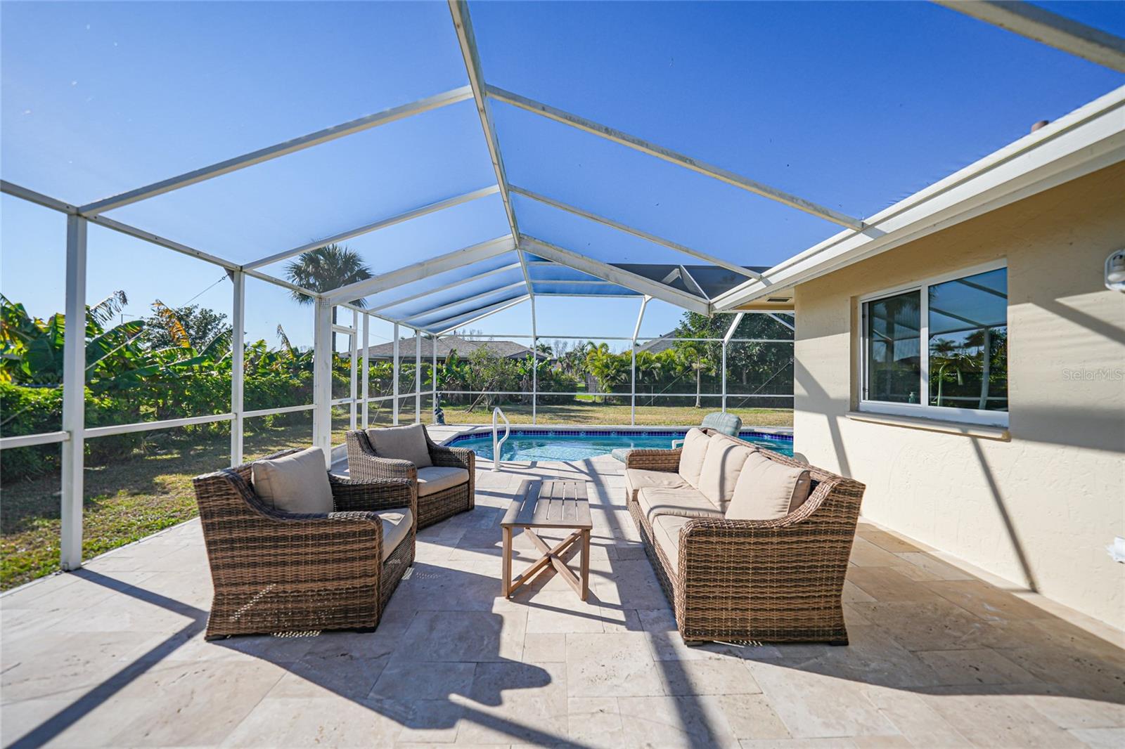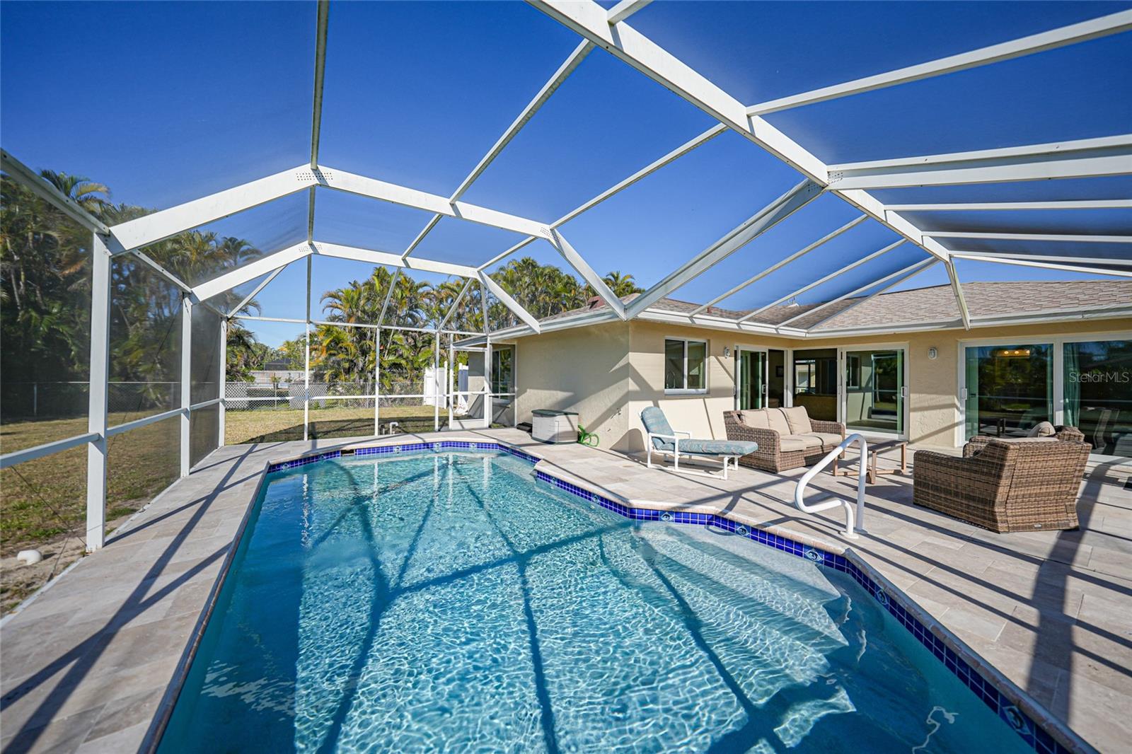 Charming Turnkey 2-Bedroom Pool Home Near Rosen Park – A Boater’s Dream! Welcome to 2404 SE 16th St, Cape Coral, FL, where style, comfort, and convenience come together in this beautifully upgraded 2-bedroom, 2-bathroom pool home. Whether you're searching for a primary residence, a vacation retreat, or a profitable investment property, this home checks all the boxes—currently operating as a successful rental with solid bookings. Renovated with modern upgrades, this home features travertine tile flooring throughout, seamlessly extending to the expansive pool deck for a cohesive and luxurious feel. The impact-resistant windows and sliders provide security and energy efficiency, while the kitchen and bathrooms showcase upgraded cabinetry, granite countertops, and stylish finishes for a move-in-ready experience. This home also features a 2018 roof and updated plumbing. Step outside to your private screened-in pool area, where the oversized pool and travertine-wrapped deck create a resort-like setting—perfect for entertaining or unwinding in your personal oasis. Located just minutes from Rosen Park Boat Ramp, you'll enjoy direct access to the Caloosahatchee River and Gulf of Mexico, making this a true boater’s paradise. Plus, you're close to top-rated dining, shopping, entertainment, and some of Cape Coral’s most scenic parks and waterfront attractions. Just bring your bags—this exceptional home is ready for you!