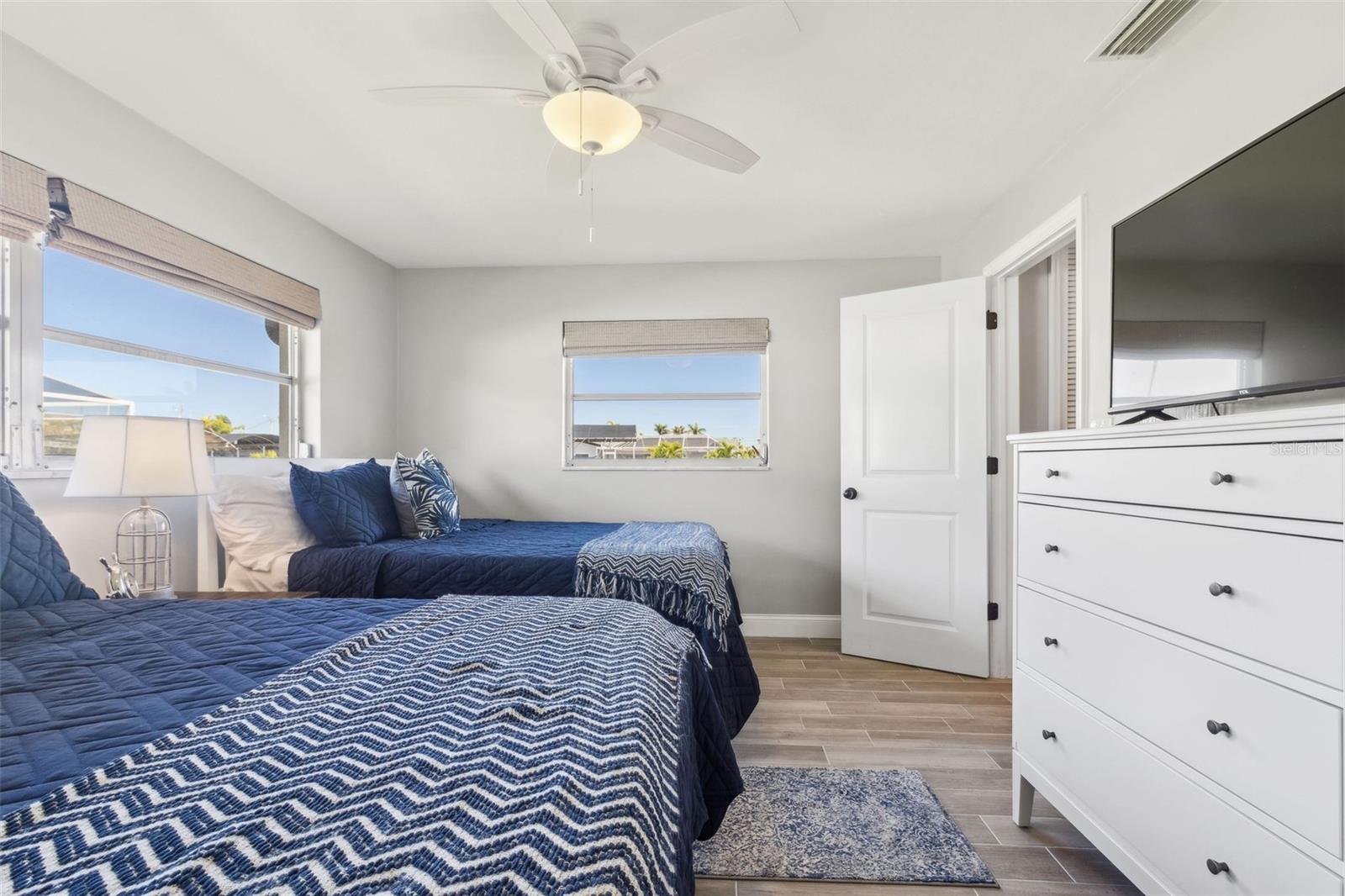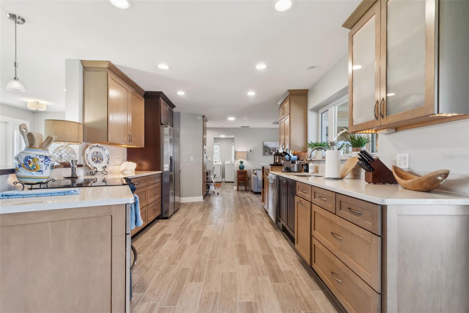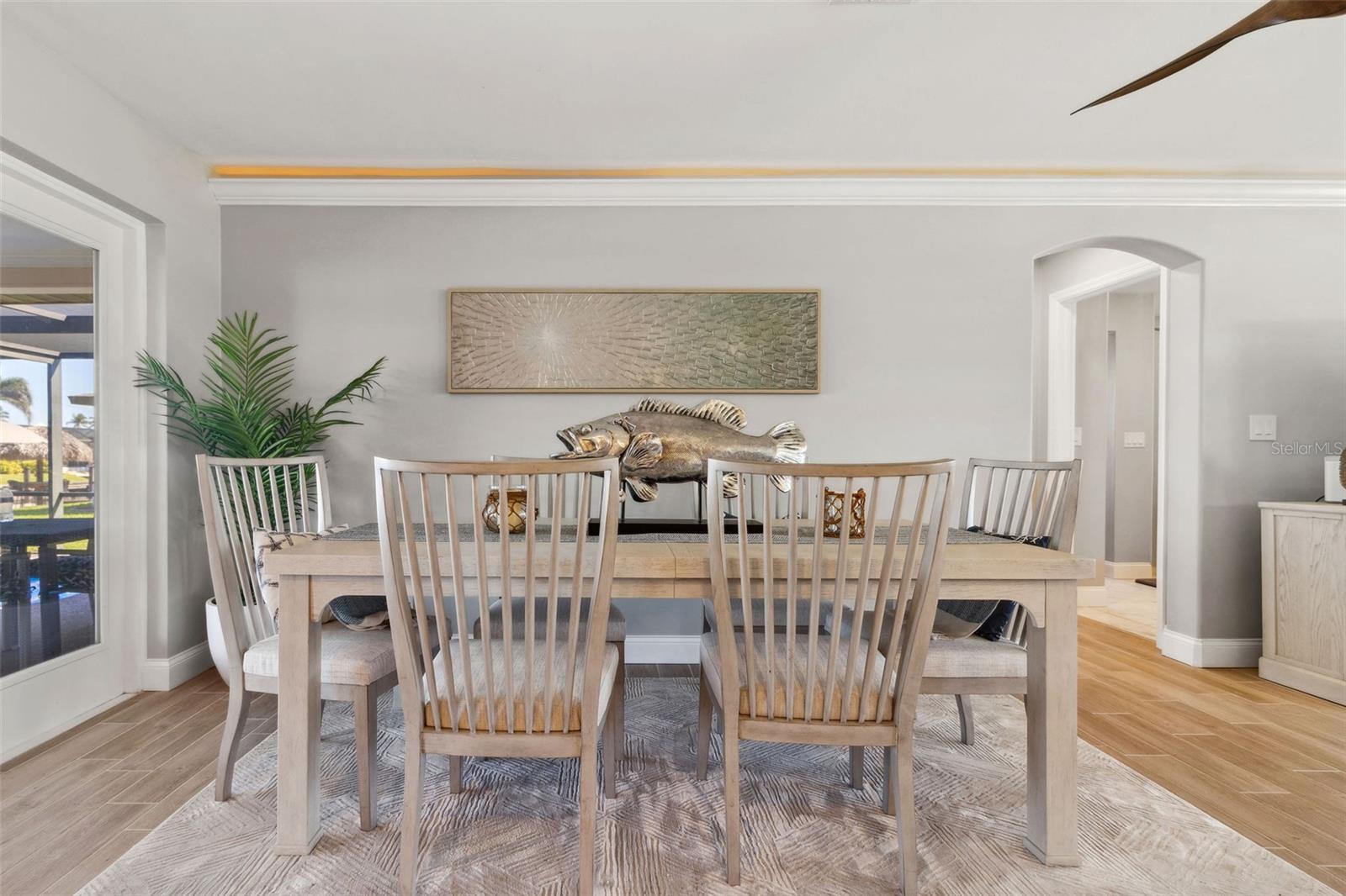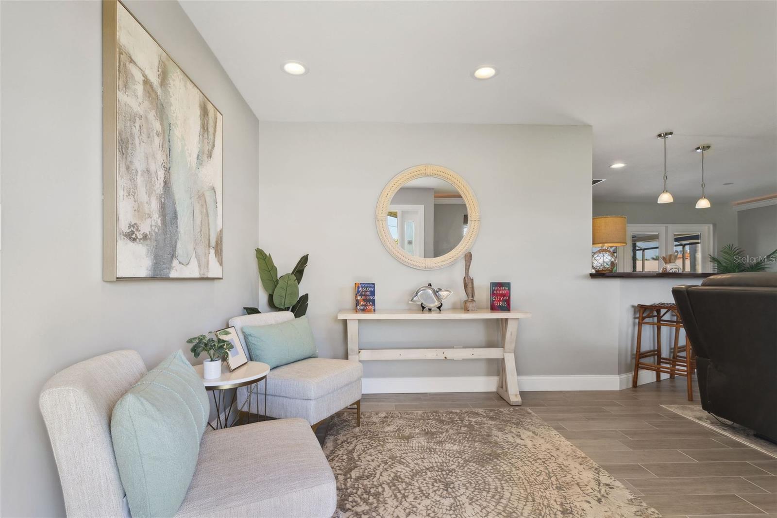 Welcome to this beautifully updated, fully furnished home, designed for comfort and convenience. Offering 2 spacious bedrooms, 2 bathrooms, and a versatile flex room that can be used as an office, den, or guest space, this home is the perfect blend of luxury and functionality. Located on the water with DIRECT Gulf access just minutes from open water, it’s an ideal setting for boating enthusiasts. The property comes turnkey, with furniture included, so you can move right in and start enjoying your new home. Inside, you’ll find thoughtful upgrades throughout, including double-pane door windows for energy efficiency, custom cabinetry with soft-close doors and drawers, and a commercial-grade range that’s perfect for any cooking enthusiast. Additional features include LED cabinet lighting, a newer washer and dryer, and a tankless water heater for endless hot water. The custom walk-in closet provides ample storage, while the multi-tier brick paver patio creates an inviting outdoor space for relaxation or entertaining. The screened lanai, with its beautiful pebble tile, adds a touch of elegance to your outdoor living. Throughout the home, you'll appreciate the newer wood-planked tile flooring, the stunning quartz countertops in the kitchen and bathrooms, and the recent addition of a new roof this year. The heated pool ensures year-round enjoyment, and the brick paver driveway enhances the home’s curb appeal. With crown molding and recessed lighting throughout, this home is the perfect place to relax, entertain, and enjoy the best of waterfront living.