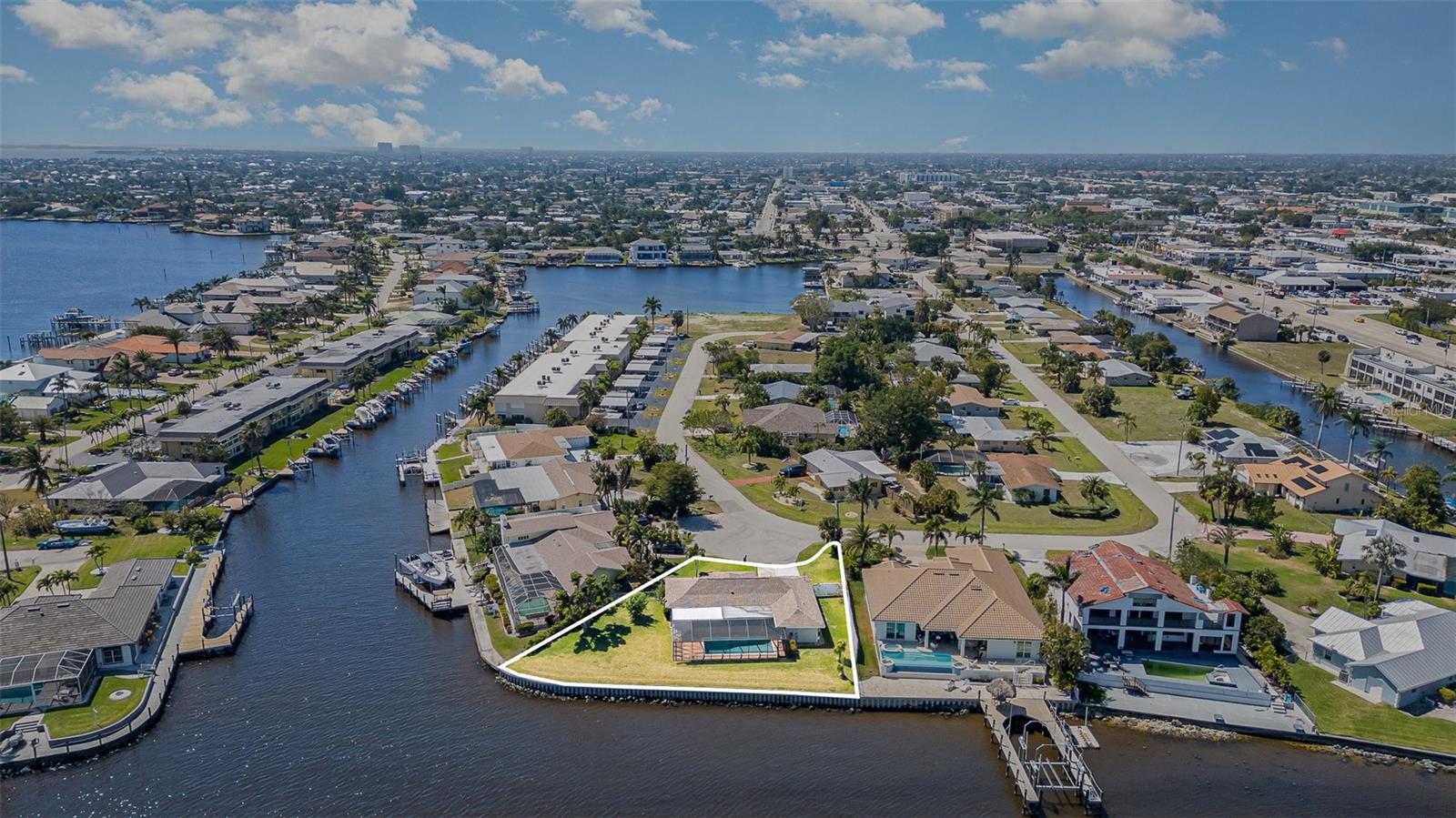 Outstanding Oversized Riverfront lot with Opportunity for Boaters & Investors. Being sold as LAND Value. Exceptional riverfront property offering approx. 150 ft. of frontage along the Intracoastal Waterway / Caloosahatchee River. Features a recently installed high-panel seawall with riprap, providing lasting shoreline protection and peace of mind. Enjoy a fenced yard with a mature mango tree, beautiful sunrise views, and moonlit reflections over the water. This property offers a front-row seat to the annual Red, White & Boom fireworks event, making it an ideal setting for entertaining or relaxing while observing local sea life. The vibrant entertainment district is within walking distance, featuring restaurants, shops, city-hosted events, and a new food truck park with boat slips, fuel dock, bar, entertainment, and a ship store—perfect for an active boating lifestyle. Nearby airports, marinas, yacht clubs, and area beaches add further convenience and appeal. Take your boat directly from your backyard to explore waterfront restaurants, beaches, and barrier islands. Neighboring parcels are also available (MLS# 225015665 & MLS# 225015699), presenting a unique opportunity for investors or those seeking to create an expansive riverfront estate. Located within the CRA District, offering additional development potential and incentives (verify with local authorities). Million-dollar water views and endless possibilities await. Southwest Florida lifestyle is calling. SW FL awaits you- What are you waiting for?