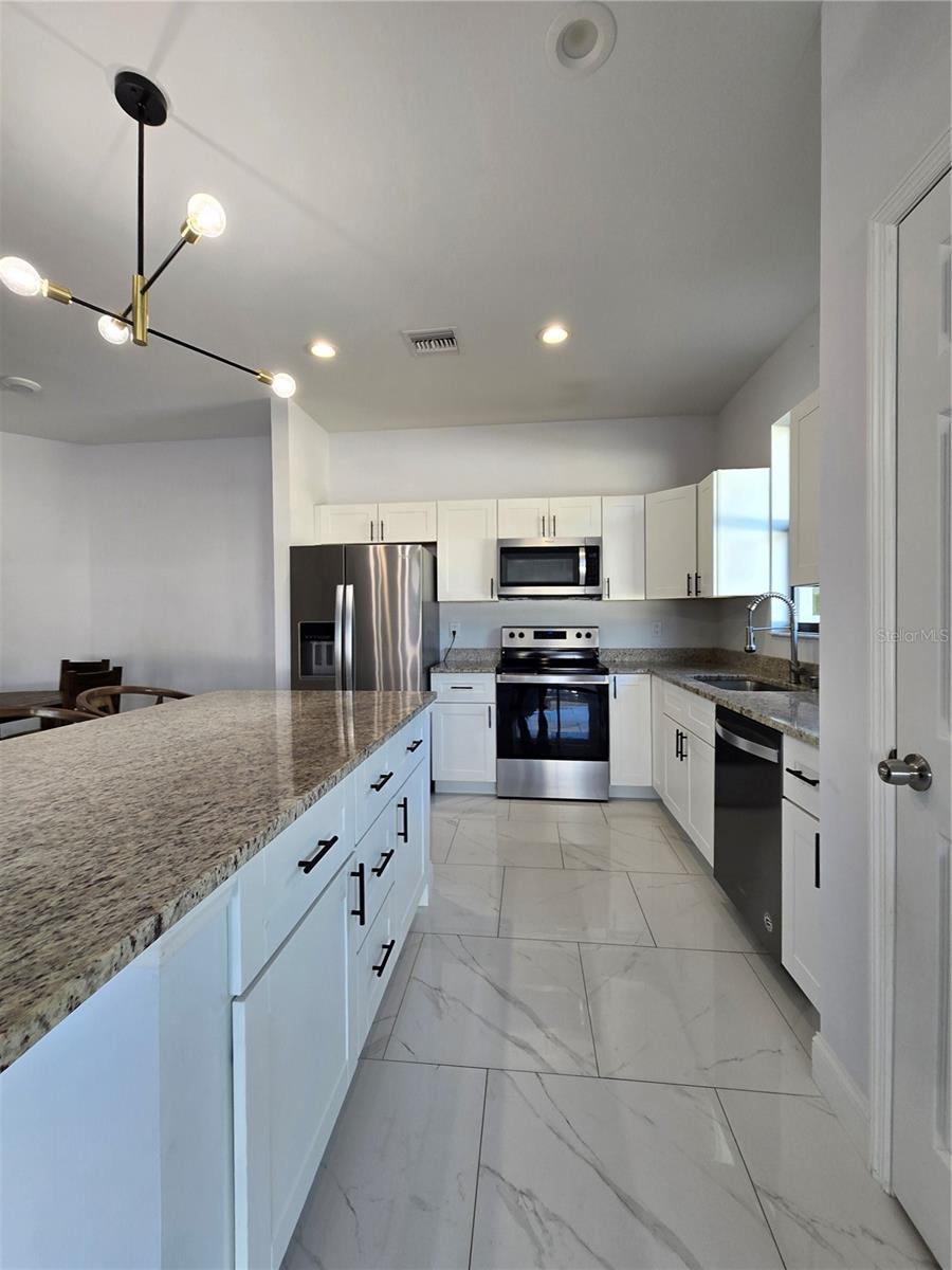 Charming Split Bedroom Home in Prime Location – No Flood Zone! This beautifully designed split-bedroom home is nestled on a prime lot in a highly sought-after area, offering an expansive yard that is fully fenced in for ultimate privacy. With ample space for future upgrades, including the potential to add a pool, this home is perfect for those looking to create their dream oasis. Located in a non-flood zone, you can enjoy peace of mind knowing your home is protected. Upon entering, you’re greeted by a grand 14-foot entrance that leads into the spacious great room, featuring 9-foot ceilings with elegant coffered details. The bright, open-concept layout is perfect for both daily living and entertaining, with a seamless flow between the living spaces. The home features 3 generously sized bedrooms, a versatile den with French doors and soaring 14-foot ceilings, and 2 stylish bathrooms. High-end Italian tile flooring flows throughout, complementing the custom kitchen, which showcases stunning granite countertops and window sills, custom cabinets with soft-close doors, and sleek stainless steel appliances, including a side-by-side refrigerator. A Samsung washer and dryer are also included for added convenience. The master suite is a true retreat, offering 2 walk-in closets and a luxurious en-suite bath complete with a garden tub, a separate walk-in shower, and dual sinks. This is a rare opportunity to own a home in a fantastic location, with room to grow and personalize to your heart’s desire. Don't miss out – schedule a tour today!